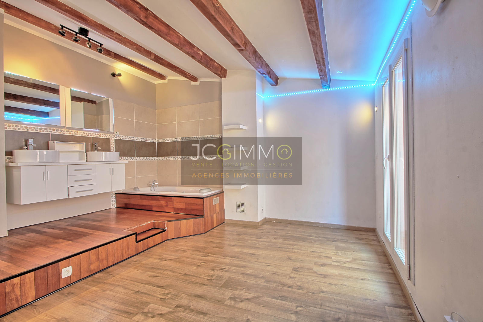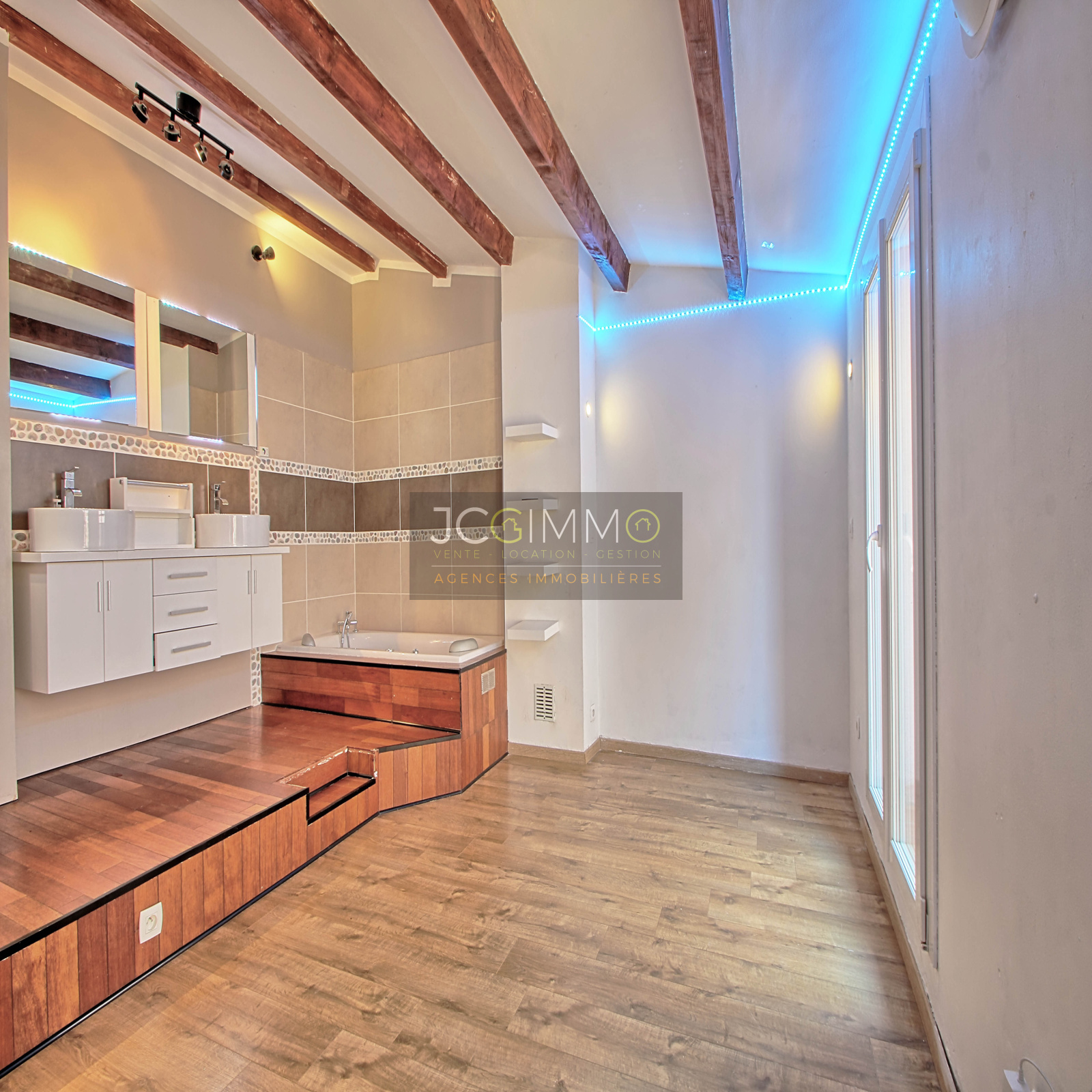 Cuers : Vous trouverez cette maison de village individuelle en rez-de-chaussée + 2 niveaux d'environ 75m² habitables T4 dans un secteur très calme, proche parking communaux et commodités ! Elle se compose, au rez-de-chaussée d'un séjour/cuisine ouverte avec cheminée insert et d'un sous escalier de rangement, à l'étage, 2 chambres, une salle de bains et un WC indépendant, au 2ème et dernier étage, une vaste suite parentale avec baignoire balnéo, wc et terrasse tropézienne. Double vitrage PVC, volets bois, tout à l'égout, eau de ville... Soyez les premiers à visiter !
