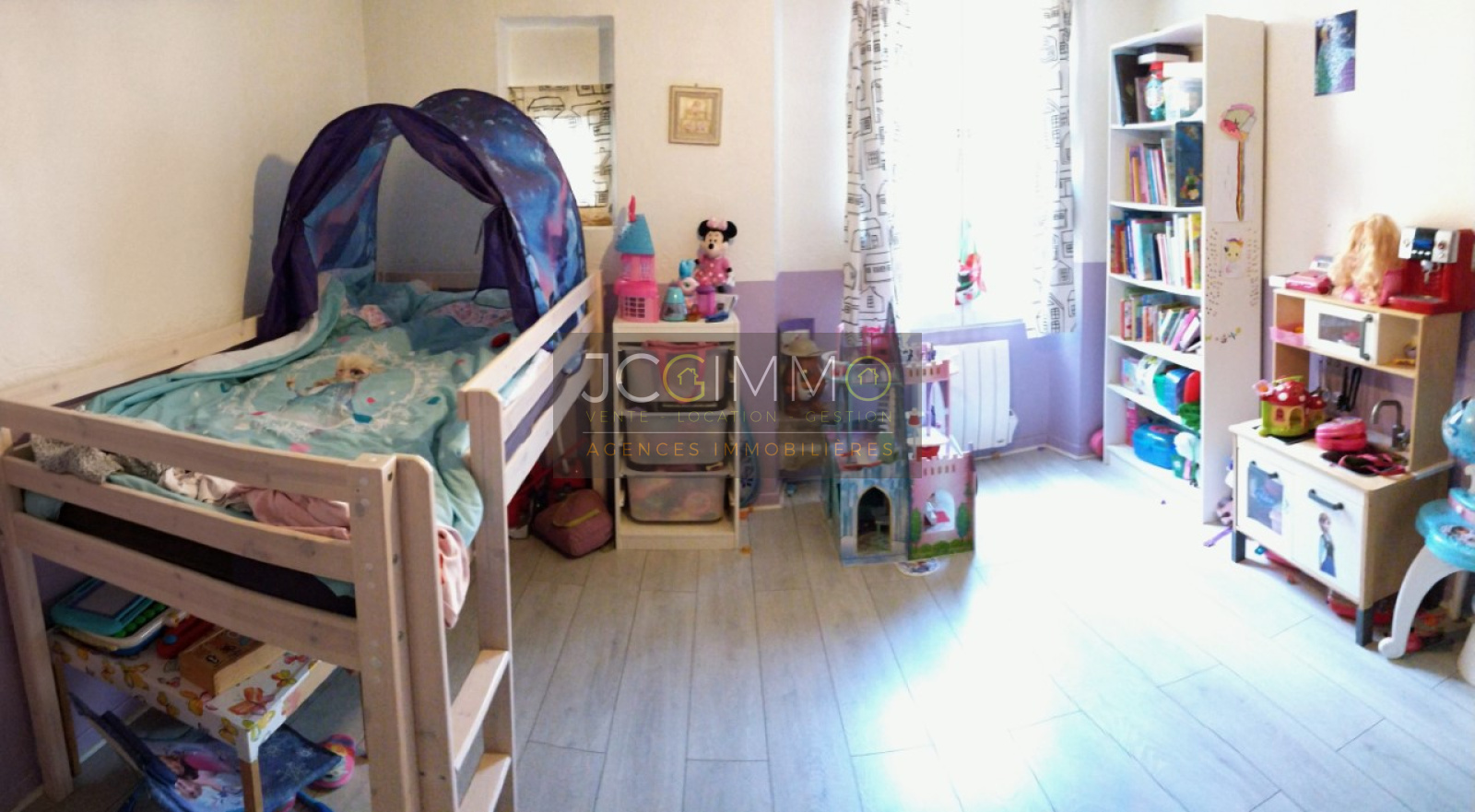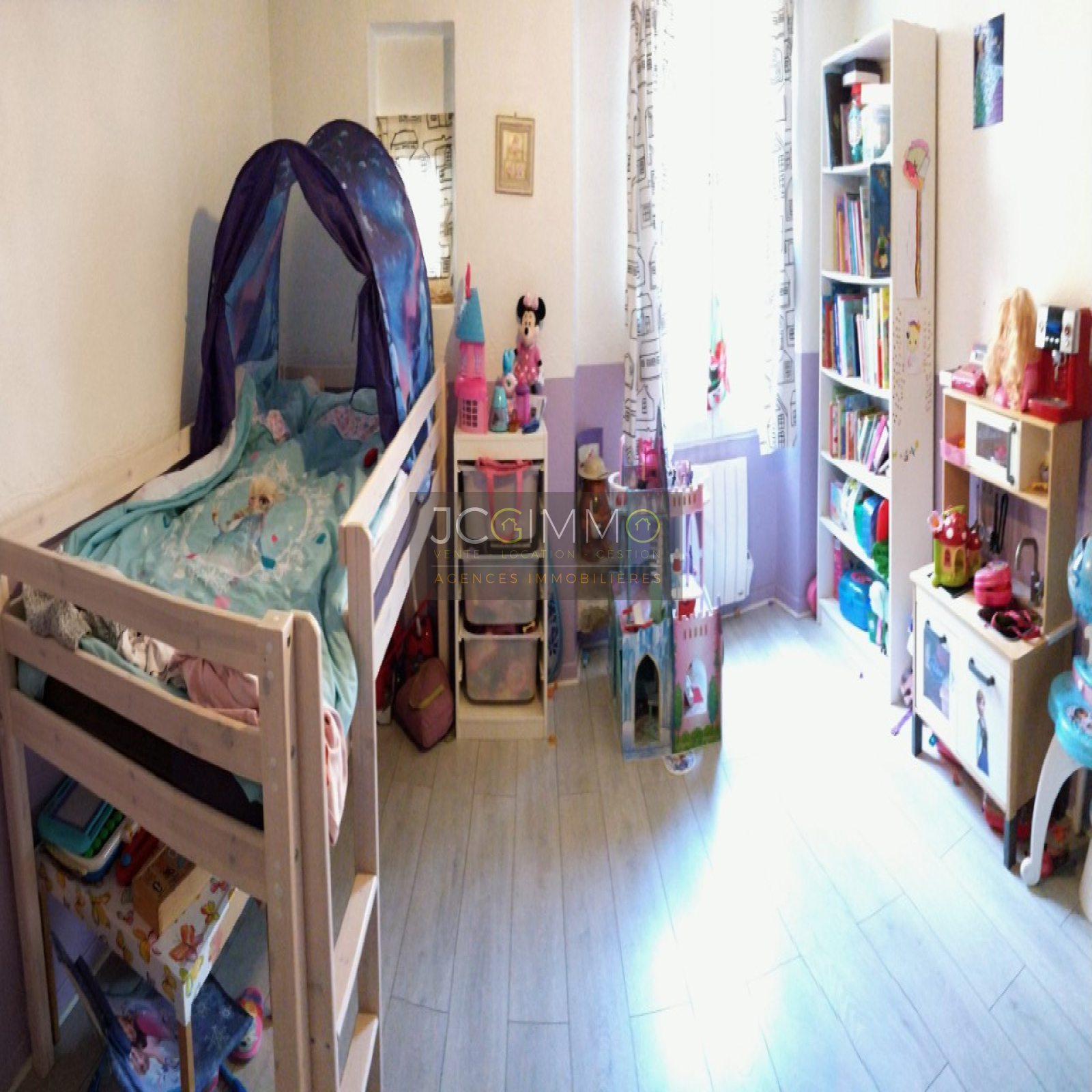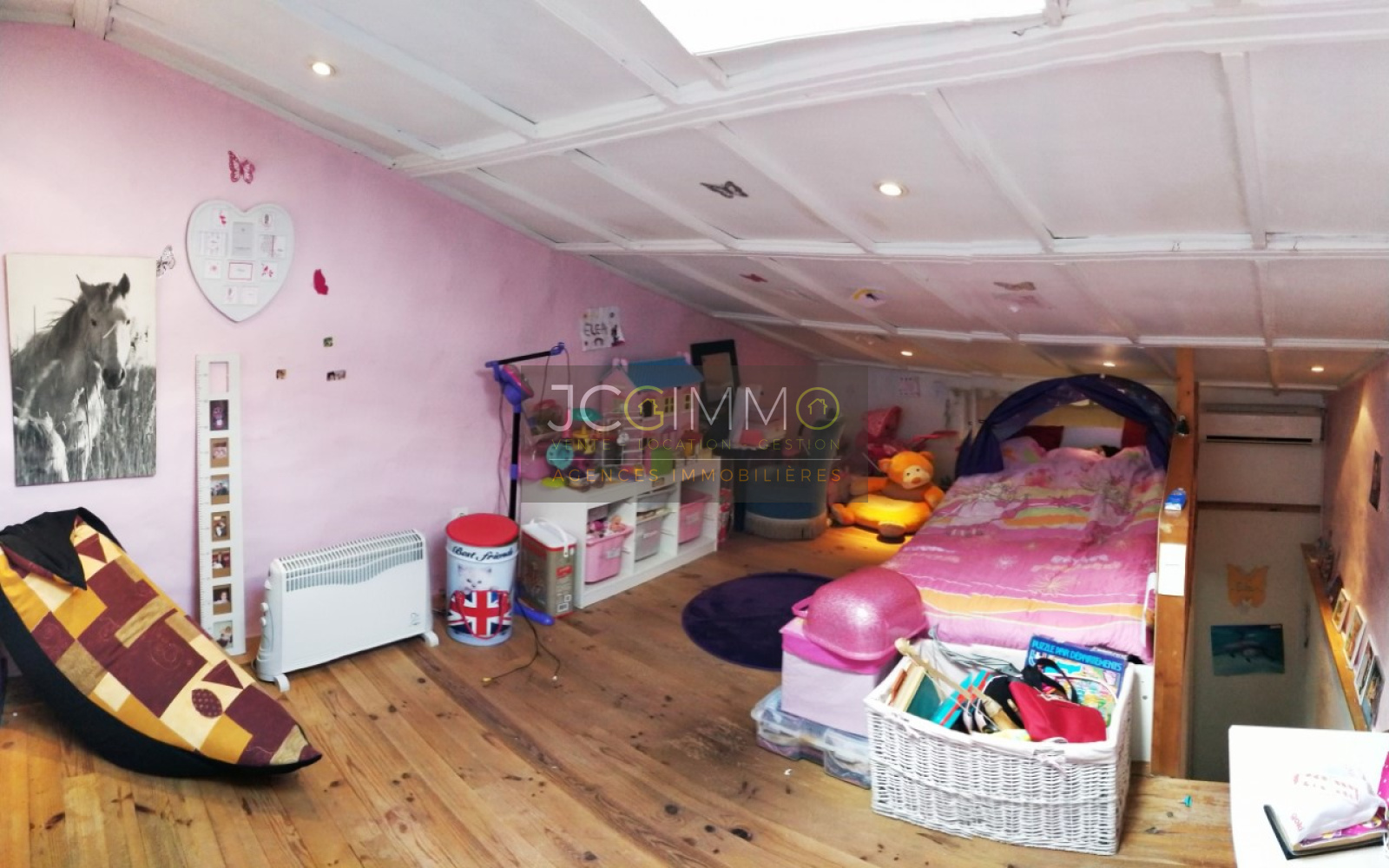 Elle se compose d'un salon/cuisine aménagée, 3 chambres dont une mansardée, de 2 salles d'eau, 2 WC.