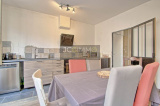 Au premier étage, une grande cuisine équipée, un salon avec terrasse, WC.