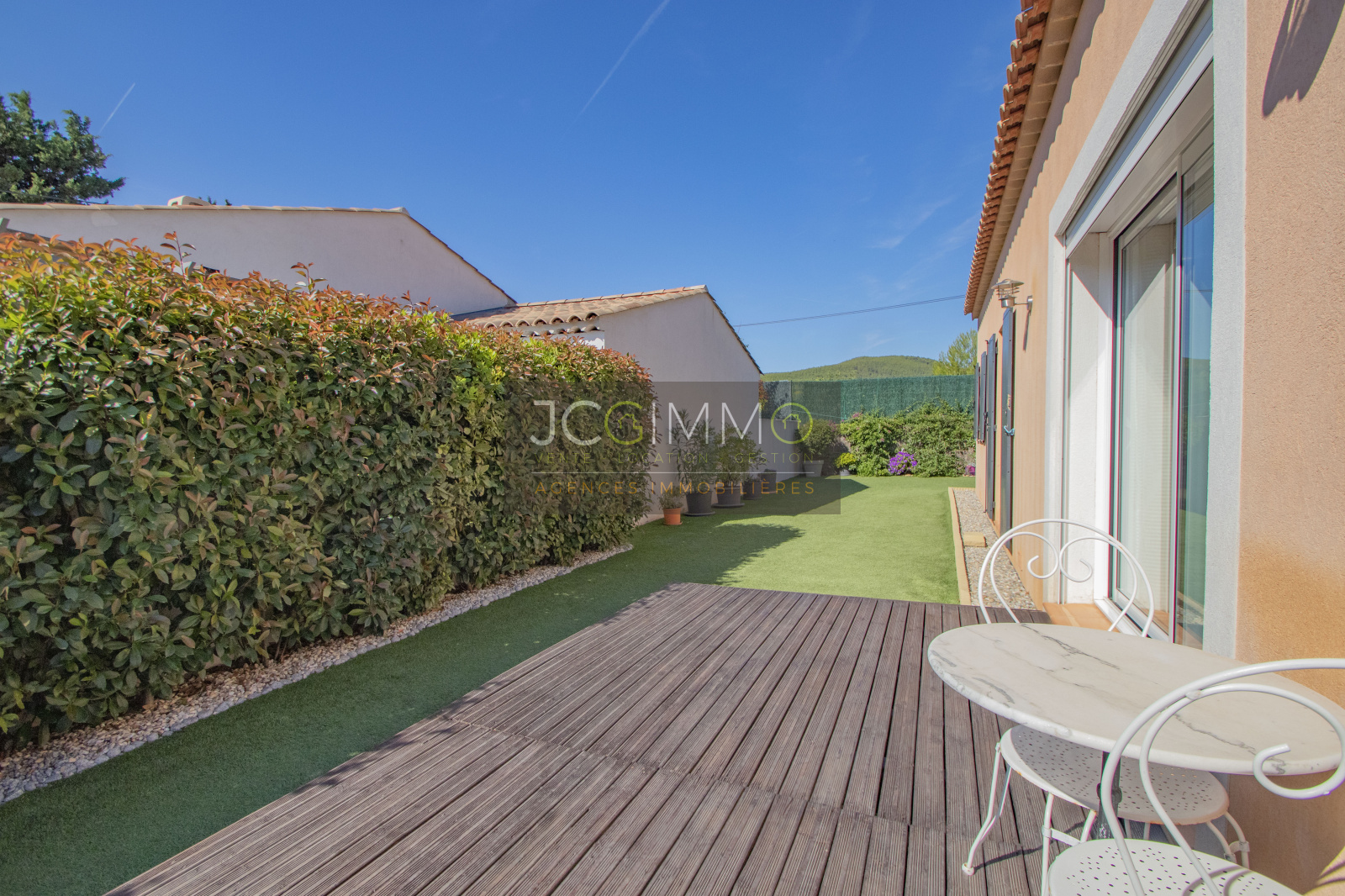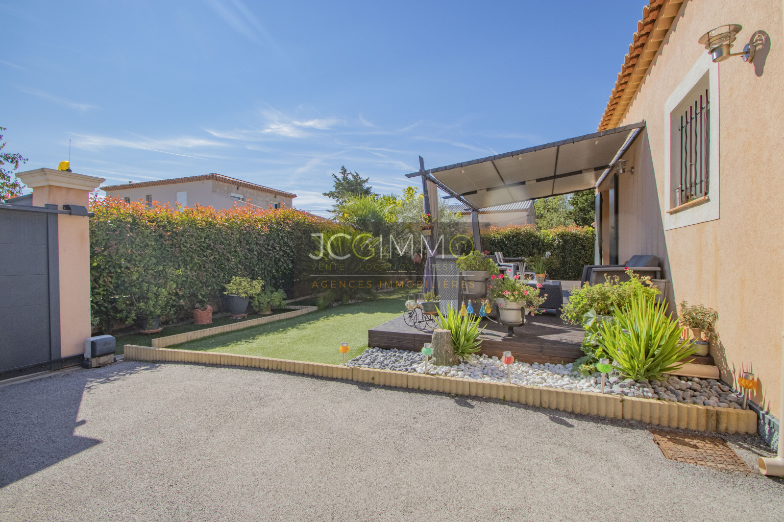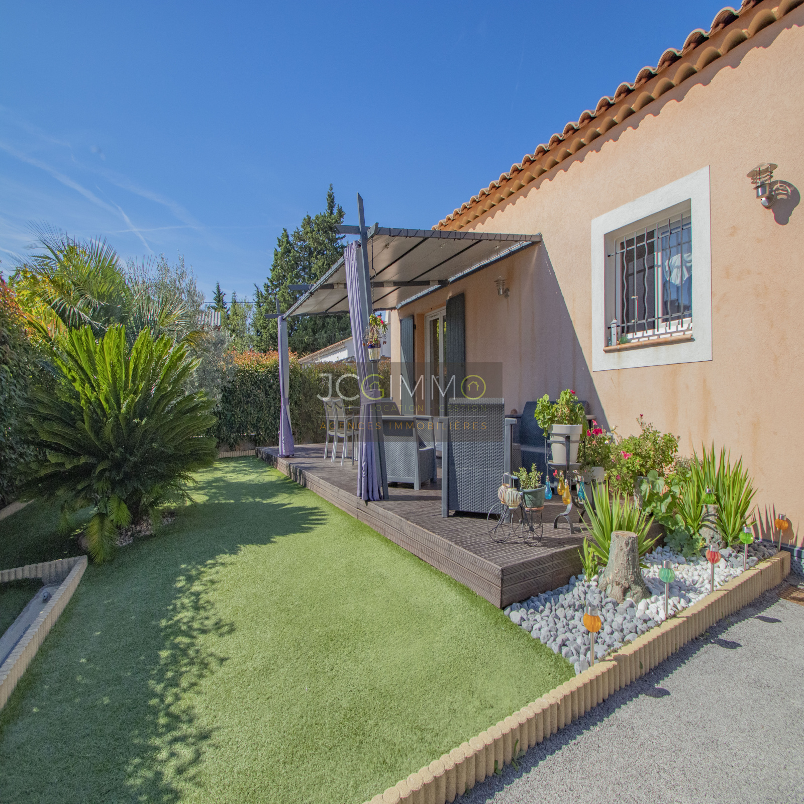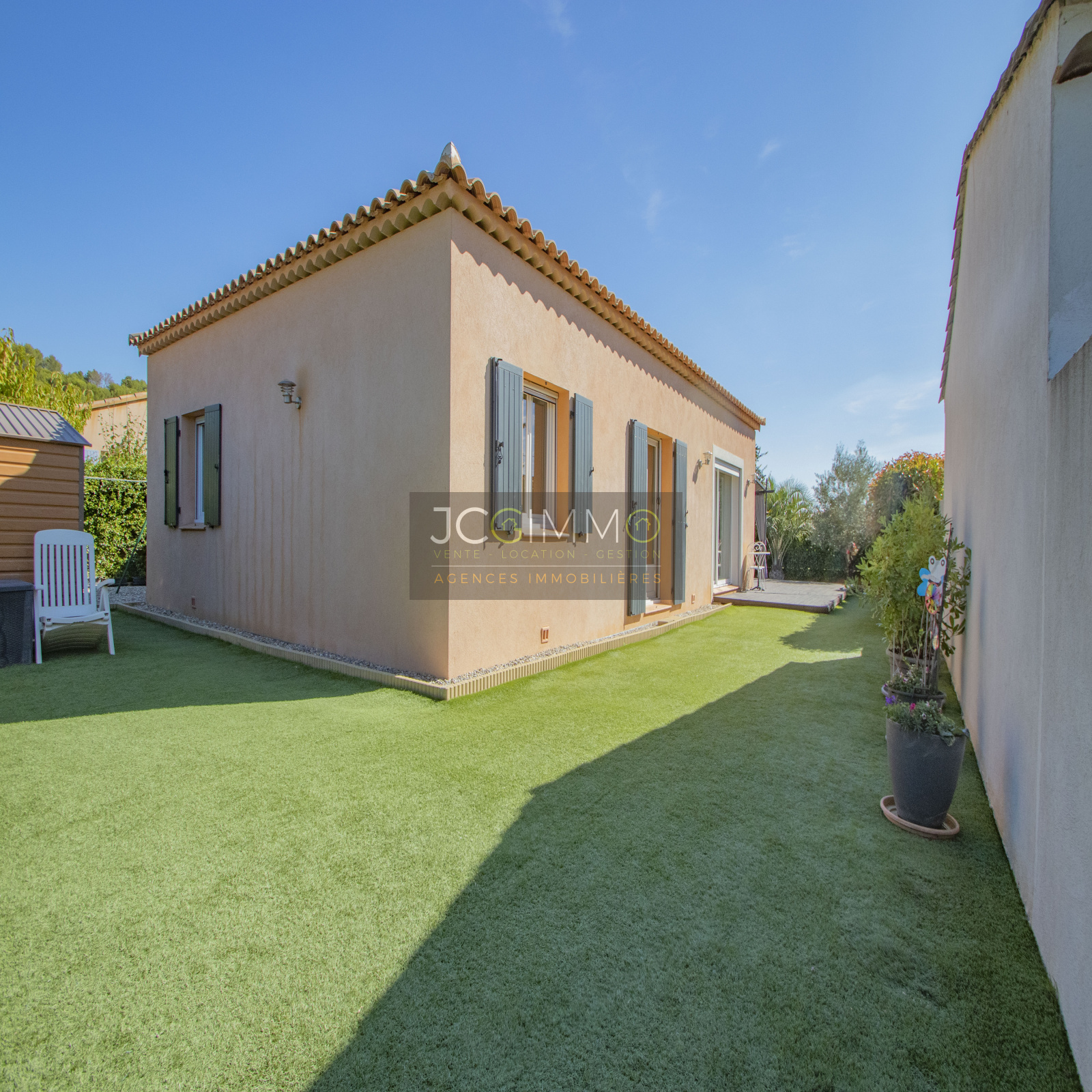 VENDU NOUVEAUTE: CUERS, dans un secteur CALME et recherché : exclusivement chez JCG IMMO. Nous vous présentons cette belle maison construite en 2014 de 90.5 m² de PLAIN PIED et son garage aménageable de 16.5 m², le tout sur un terrain très bien exploité de 425 m².