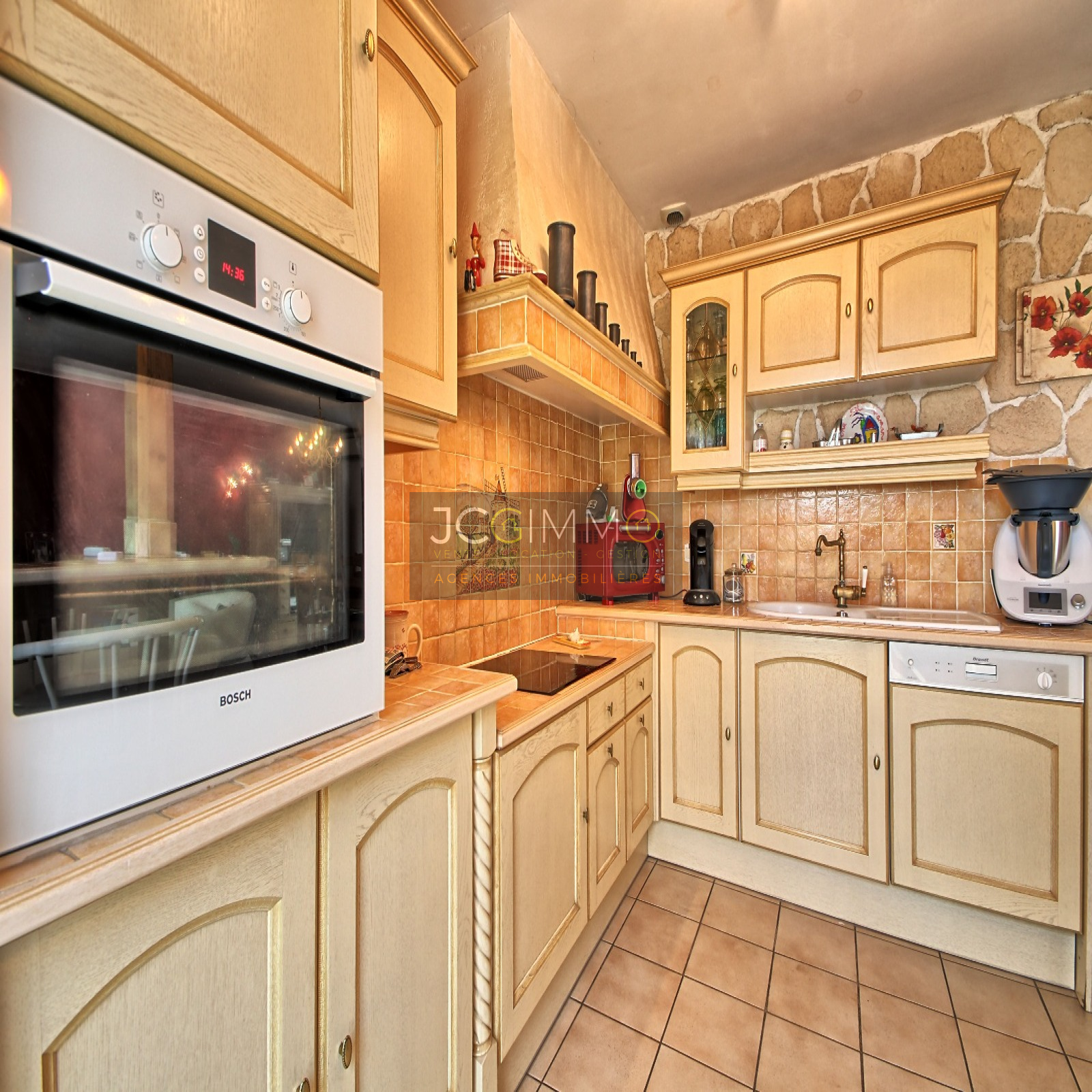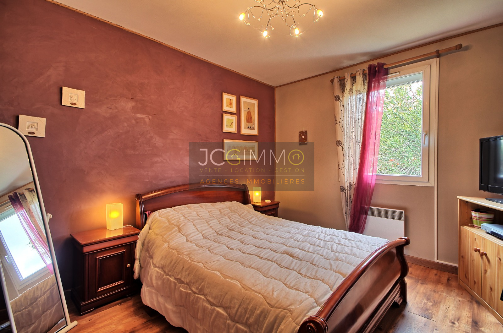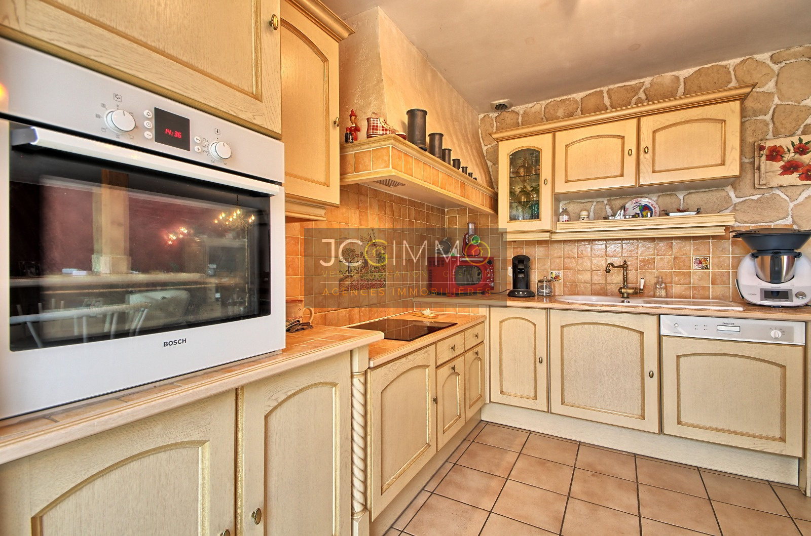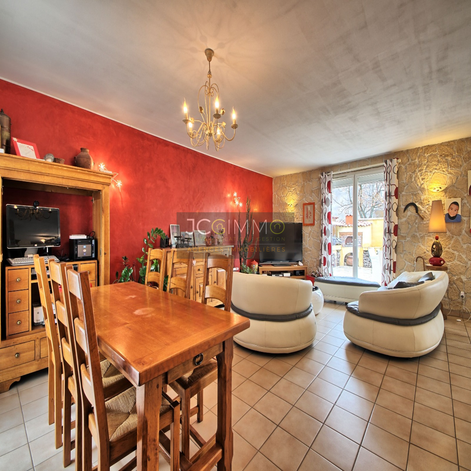 Cuers : dans un secteur résidentiel, agréable villa de plain pied d'environ 92m² hab T4 avec garage de 20m². Elle se compose d'un grand séjour/cuisine de 45m² PLEIN SUD donnant sur terrasse et jardin, 3 chambres, une salle de bain balnéo avec douche, double vasques et un WC indépendant avec lave main. A l'extérieur, un garage de 20m² avec espace buanderie, un cabanon de jardin, bel extérieur arboré avec arrosage automatique, terrasse avec store et espace barbecue / four à pizza. Panneaux photovoltaiques avec un rapport annuel d'environ 1800euros ! Belles prestations, double vitrage, climatisation, forage, adoucisseur d'eau, volets roulants... A visiter sans tarder !
