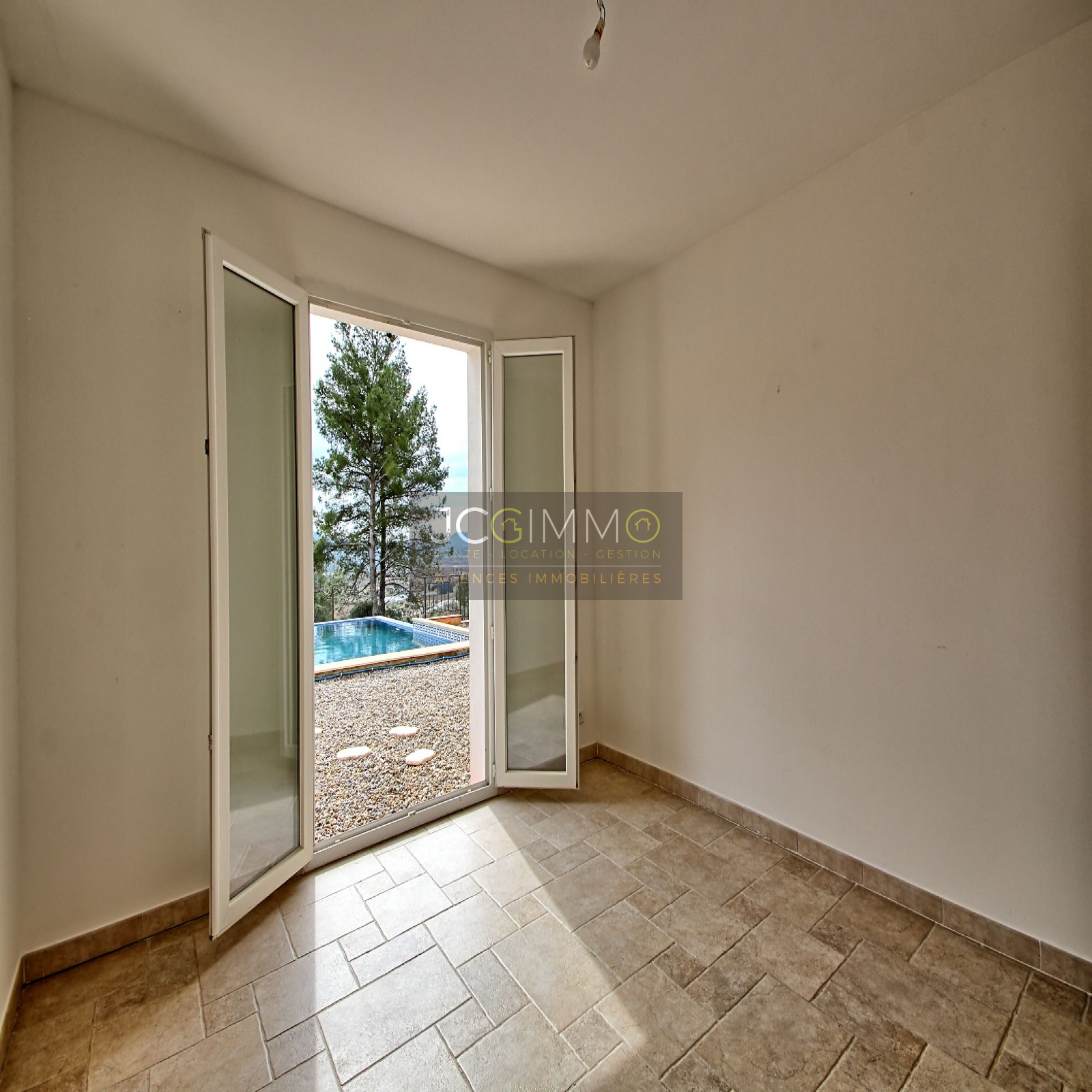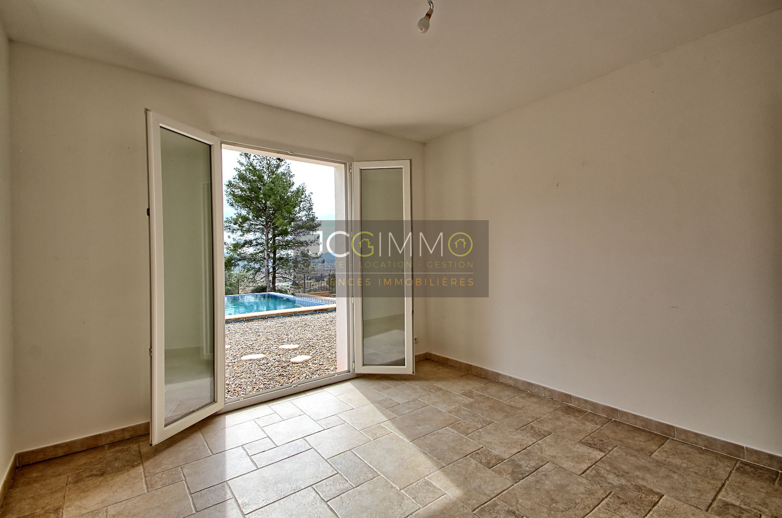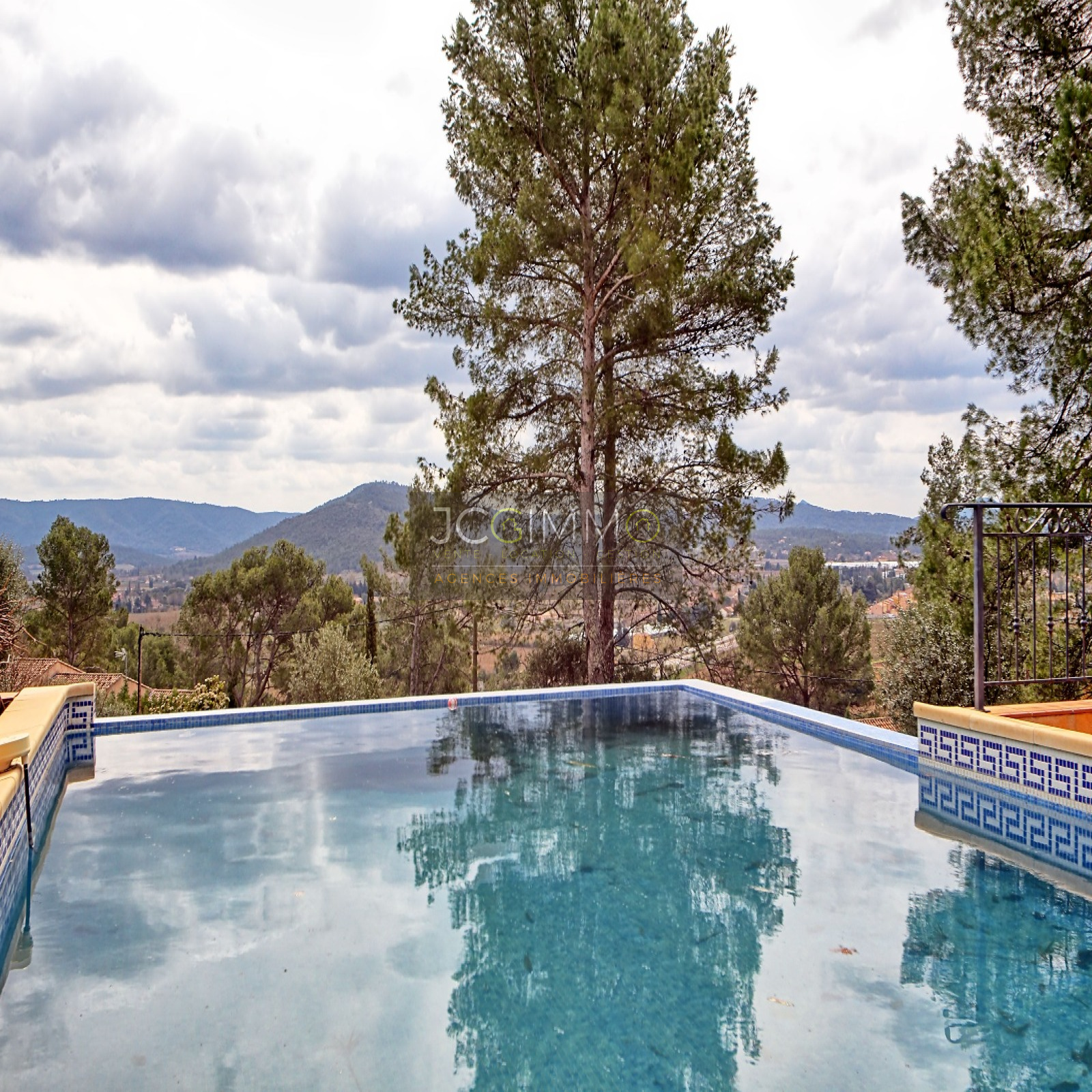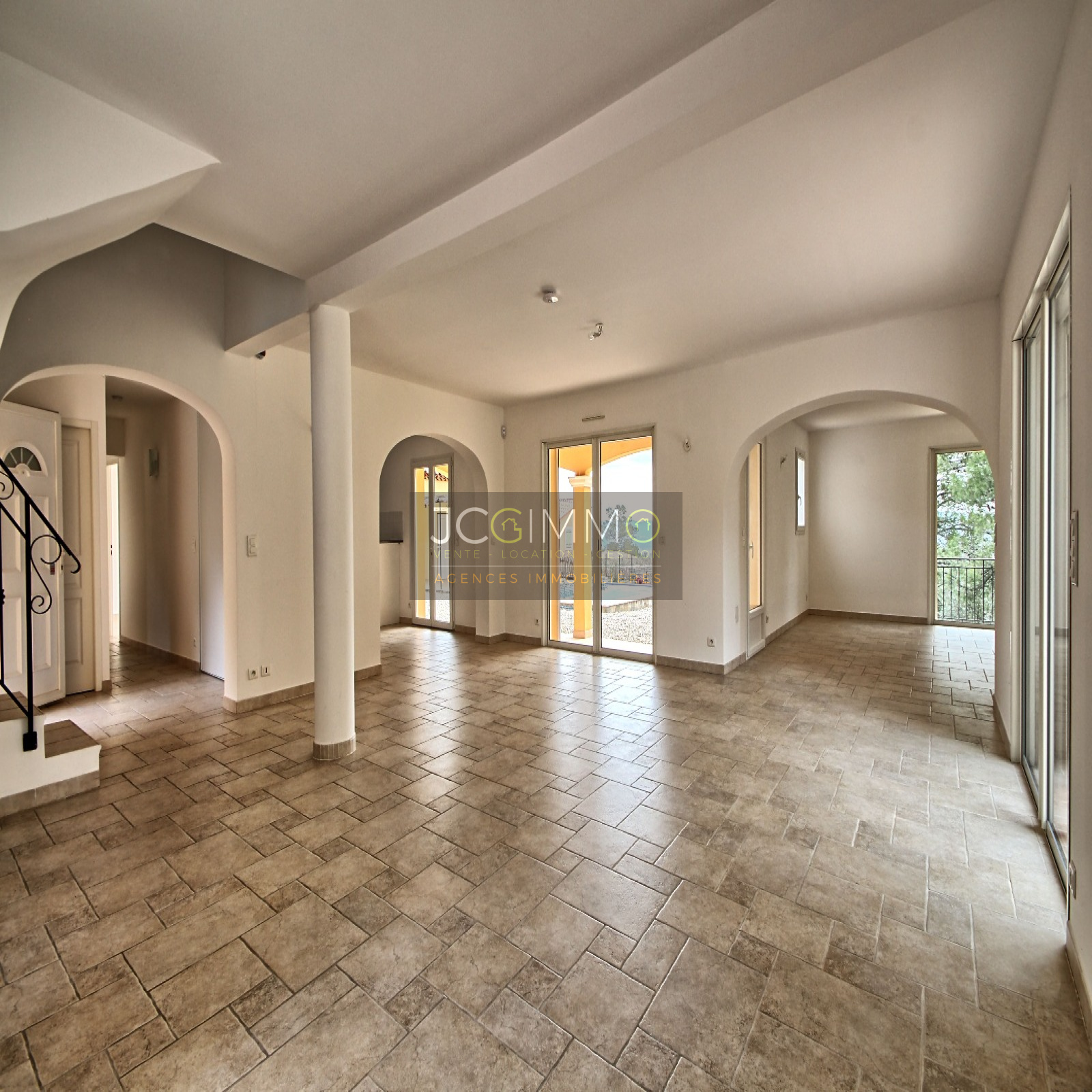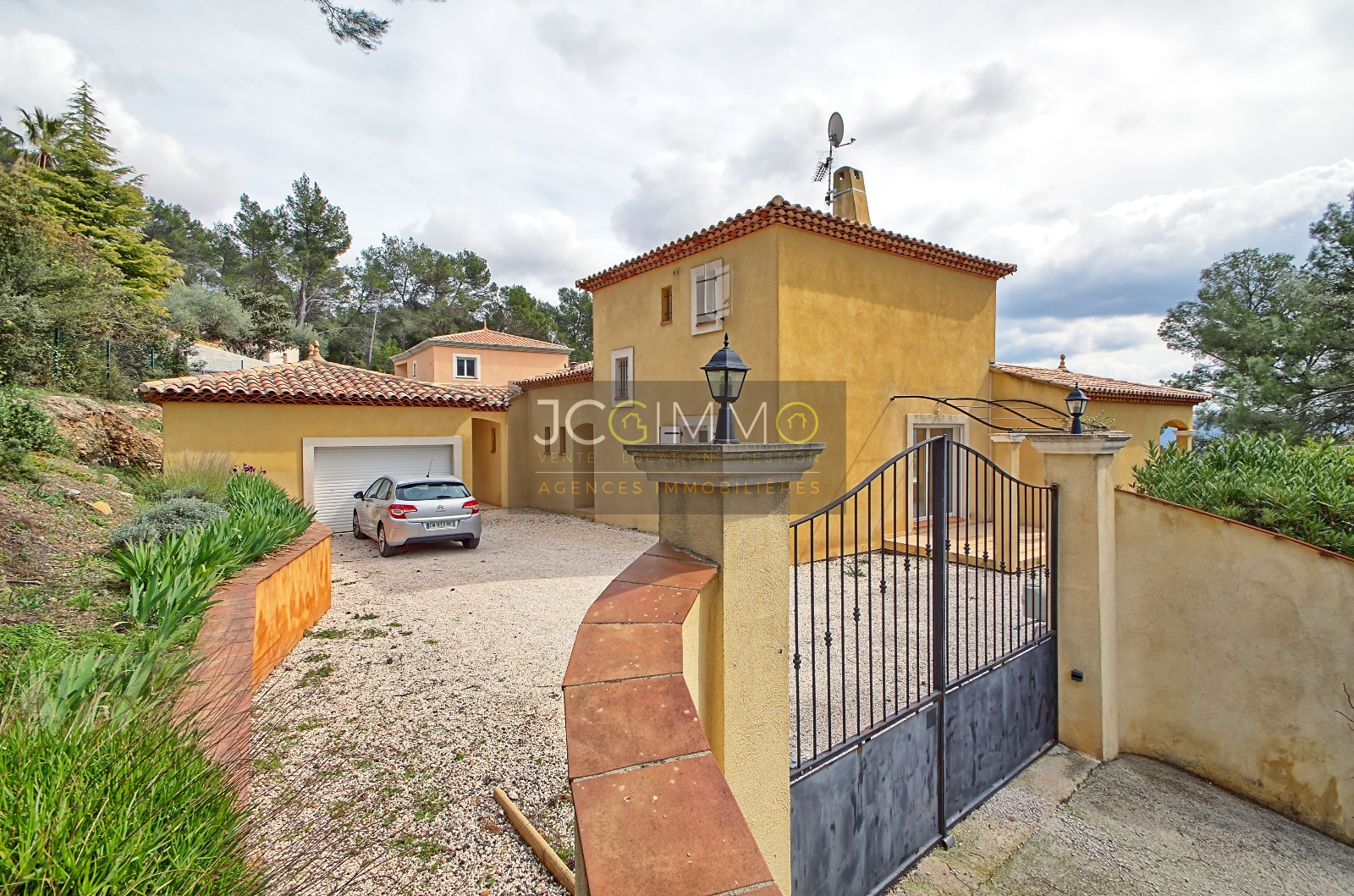 CUERS Secteur Résidentiel. ETAT NEUF. Villa individuelle 2007 T6/7 de 171m² habitables avec Piscine à débordement et Grand Garage sur un terrain clos de 2000m² env. avec portail motorisé. Vue Dominante, Dégagée et Imprenable. La Villa TRES LUMINEUSE orientée Sud-Est/Sud-Ouest comprend au RdChaussée : Hall d’entrée, Pièce de Vie avec cuisine US de 79m², cellier, WC suspendu séparé, 2 chambres dont une Suite Parentale (20m²) avec Dressing, Salle de Douches à l’italienne / WC intégré. A l’étage : 2 chambres, 1 WC suspendu, 1 salle de douches à l’italienne. A l’extérieur : 3 terrasses loggia, Piscine faïencée à débordement 8x5m, Pool house avec WC&Douches, Local Technique et Grand Garage 37 m² intégrant une cave naturelle. Belles Prestations : Construction de qualité exécutée dans la Grande Tradition, Nombreuses Baies à galandage motorisées, Volets PVC, Aspiration Centralisée, Chauffage GAZ par le sol. Terrasses et Sol intérieur intégralement carrelés. Assainissement Fosse Septique en conformité. Parking intérieur 5/6 voitures. AUCUN TRAVAUX A PREVOIR (ETAT NEUF)