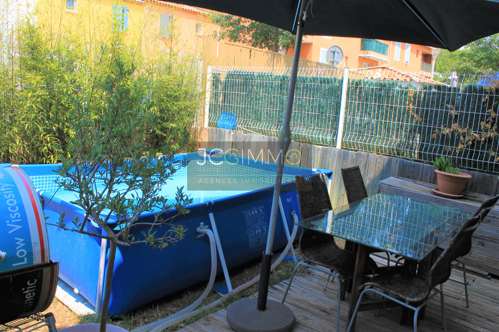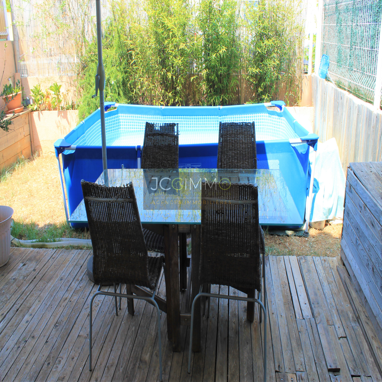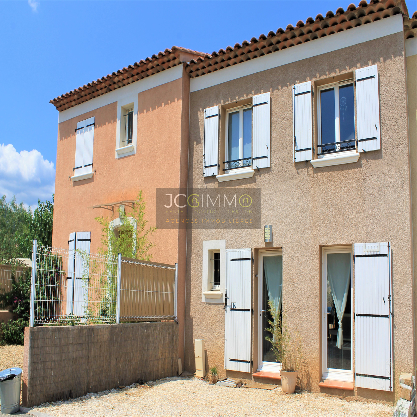 CUERS : Dans un lotissement, maison de 2014 de 80m² en R+1 avec jardin clos aménagé d'une terrasse en bois et d'une partie pelouse et piscine +2 places de parking. AU CALME
