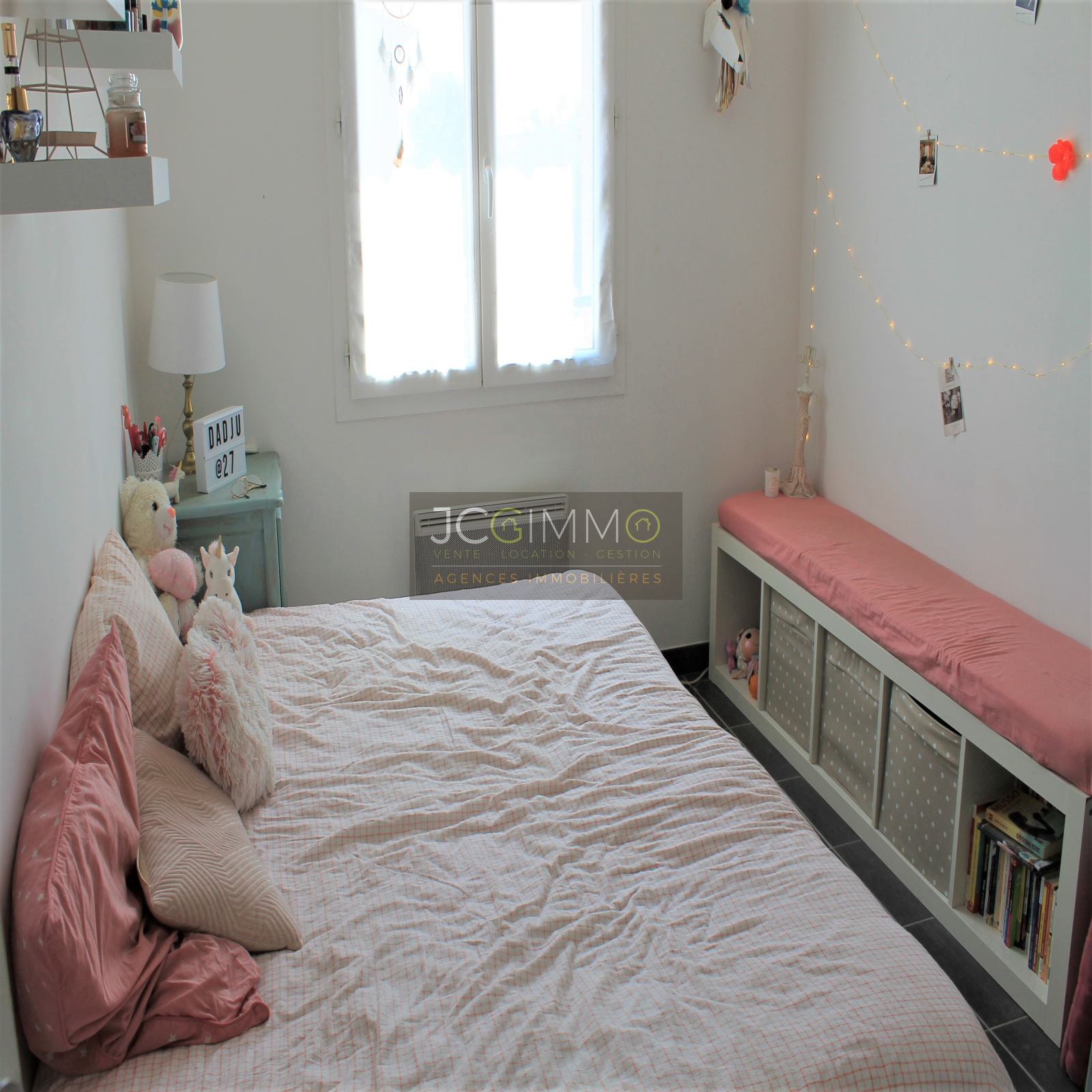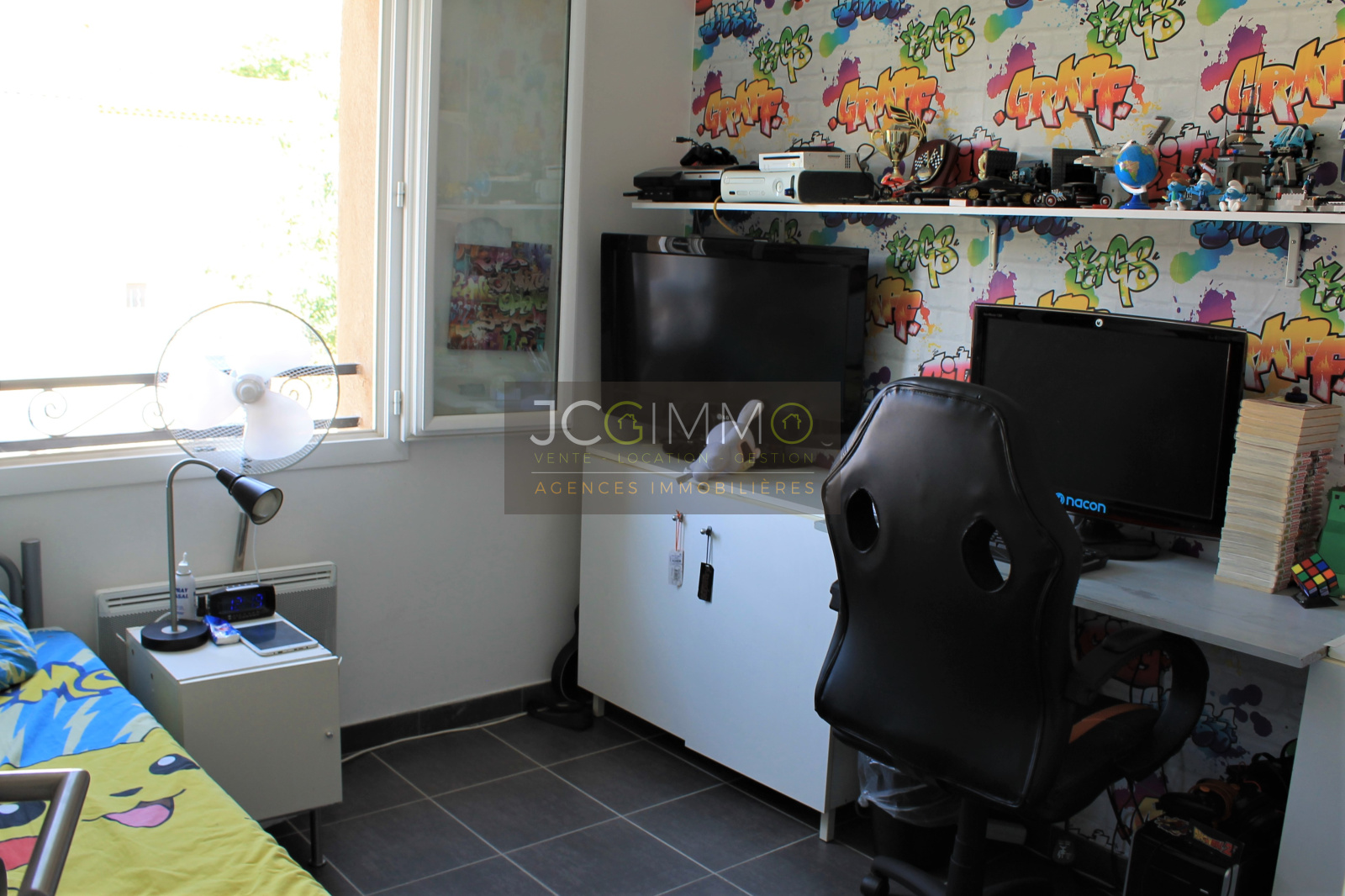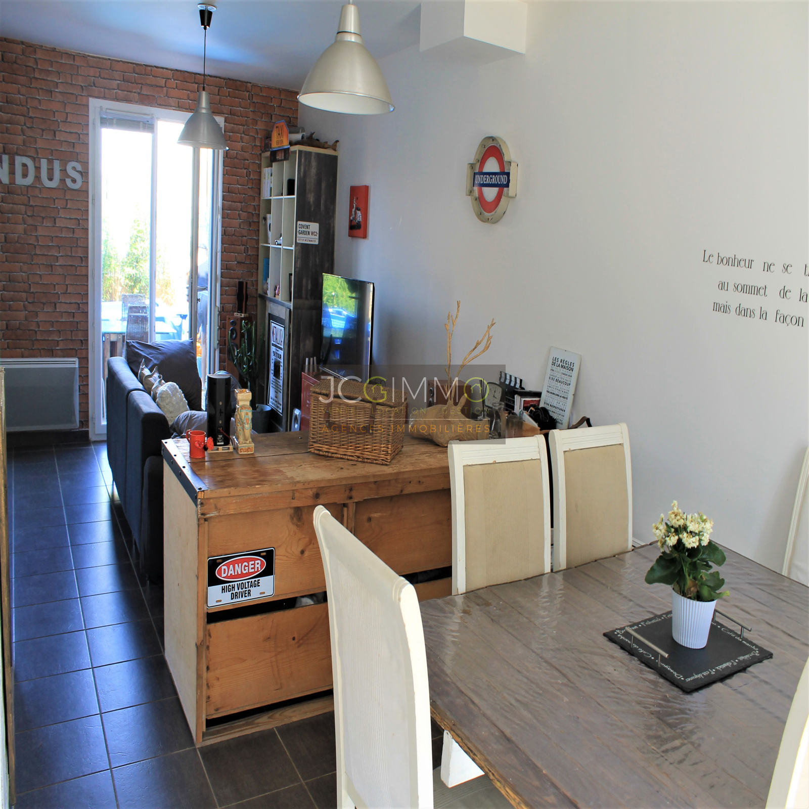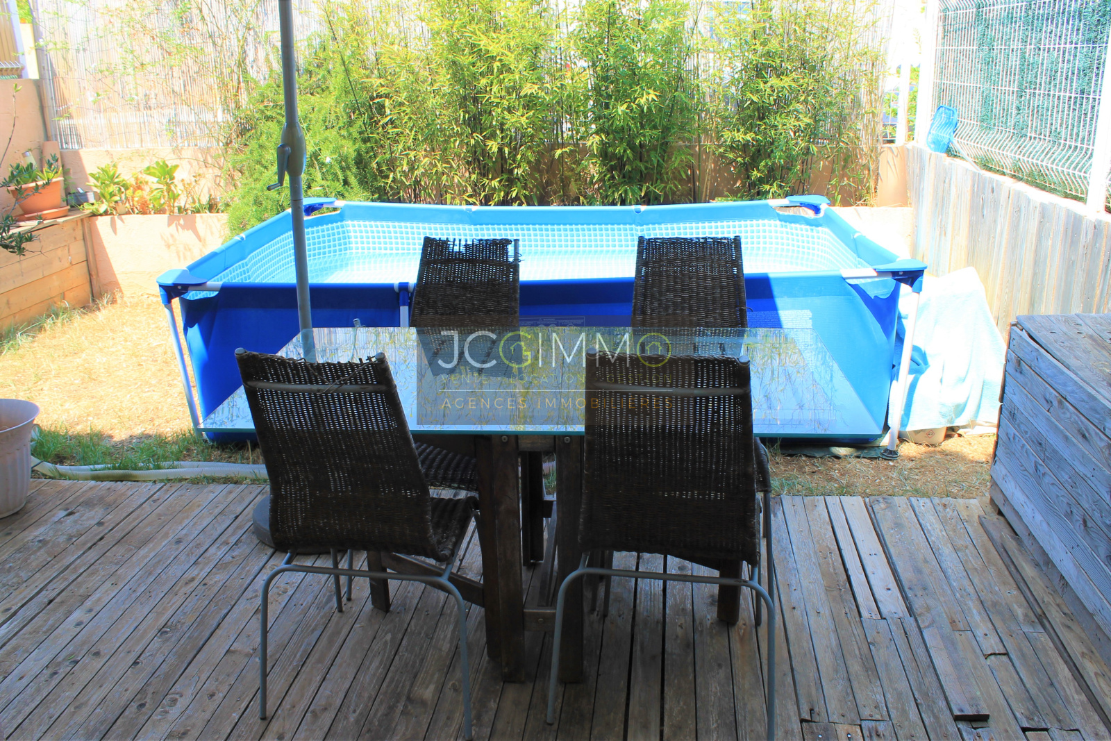 CUERS : Dans un lotissement, maison de 2014 de 80m² en R+1 avec jardin clos aménagé d'une terrasse en bois et d'une partie pelouse et piscine +2 places de parking. AU CALME
