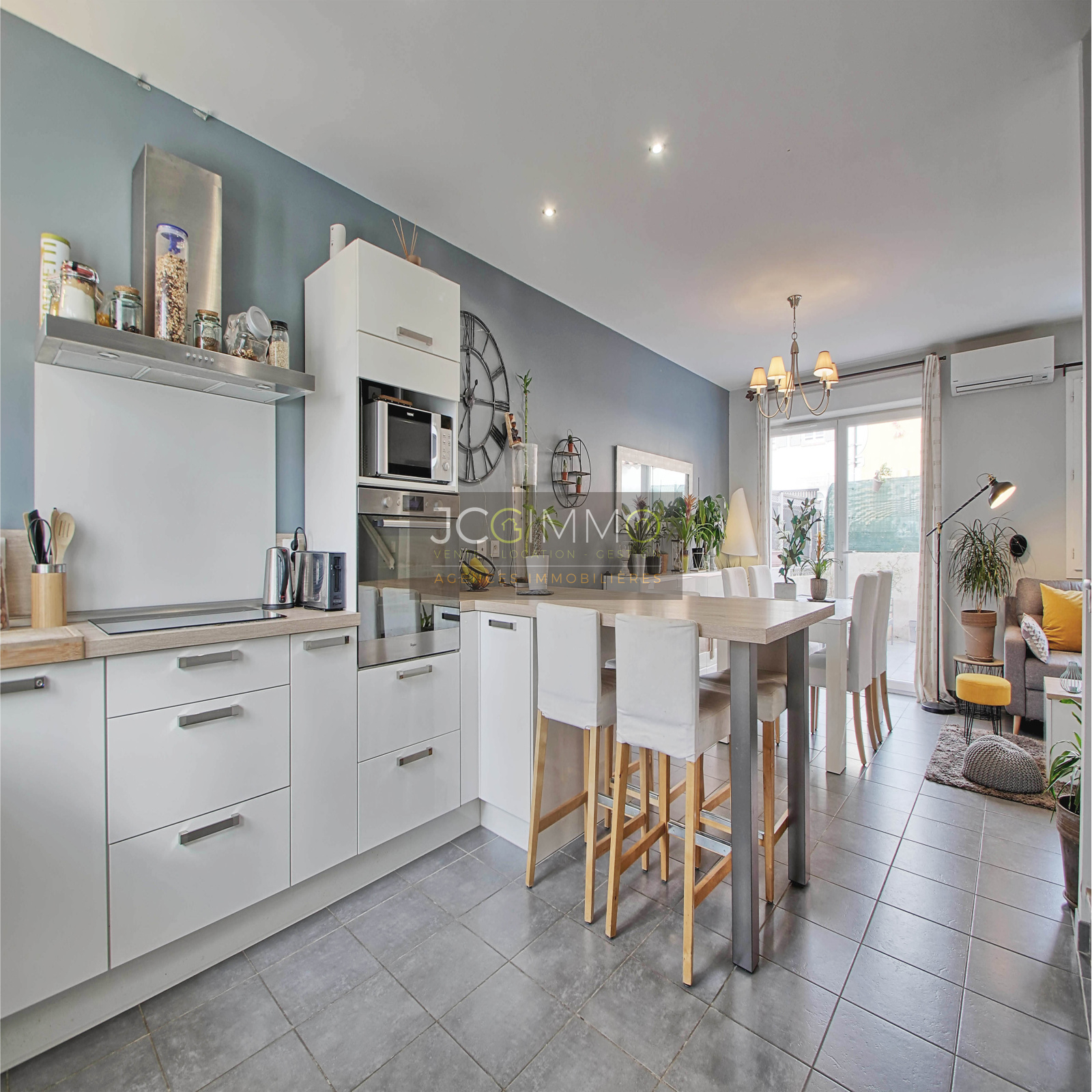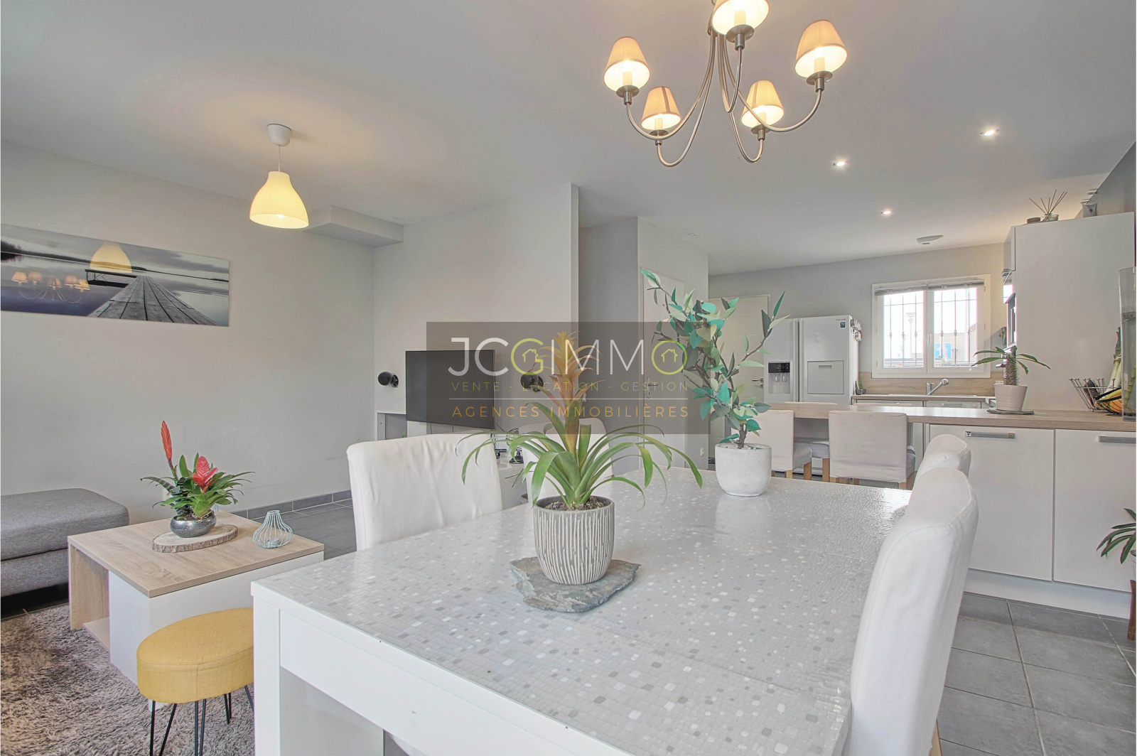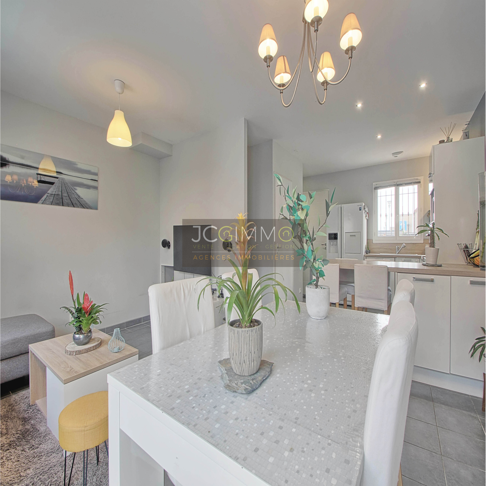 La maison se compose au RDC d'un espace de vie séjour / cuisine aménagée équipée US de 32m², WC. A l'étage une salle d'eau avec douche à l'italienne / wc intégrés et 3 chambres.