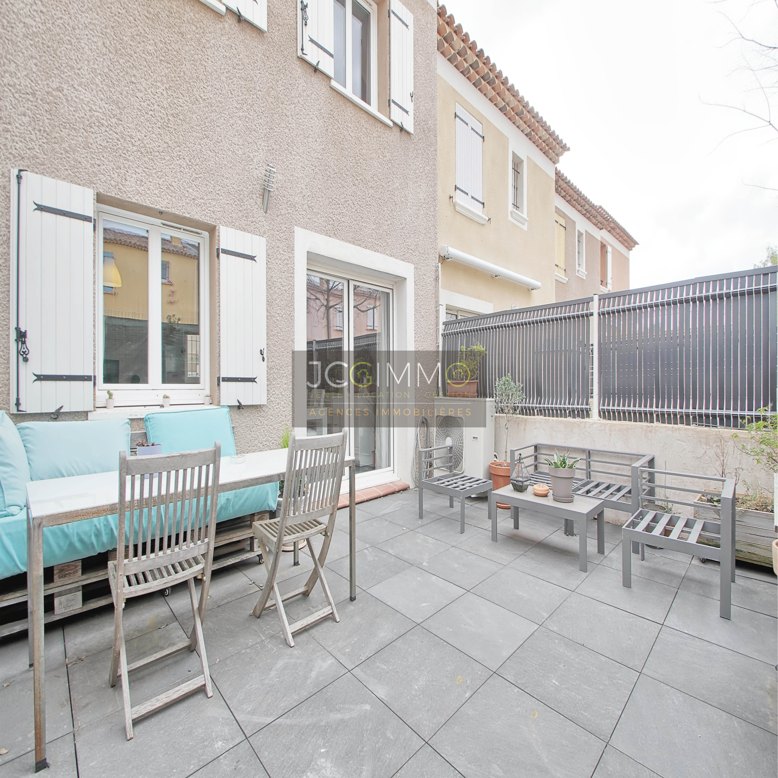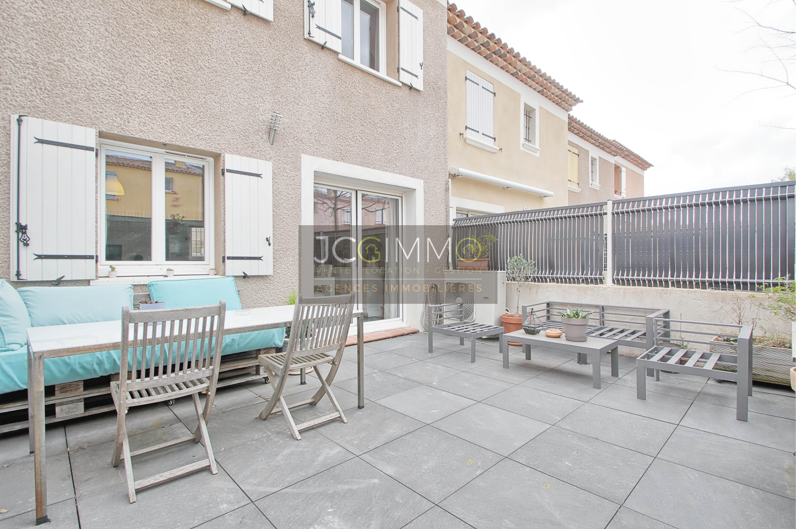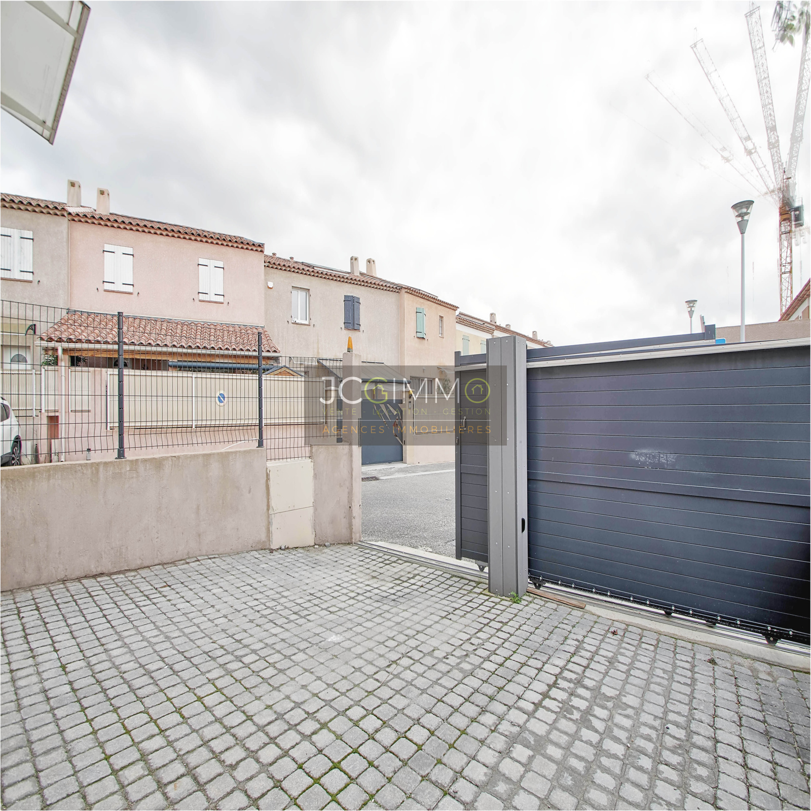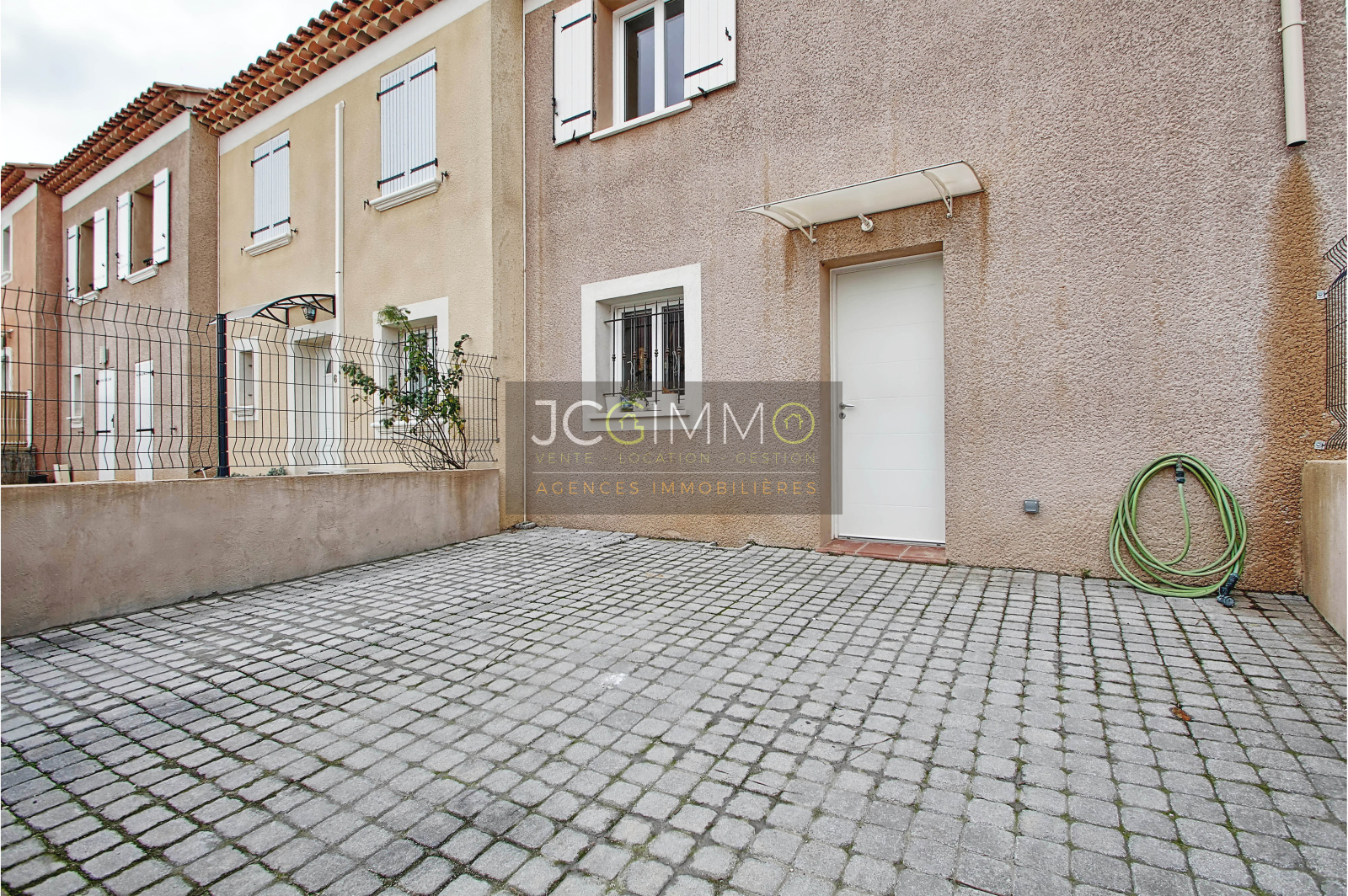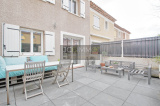 CUERS NORD : Dans un lotissement sécurisé du secteur le plus recherché de Cuers, maison mitoyenne seulement d'un côté (rare) de 2014 de 75m² en R 1 avec jardinet clos servant de stationnement avec portail automatique d'un côté et grande terrasse avec salon d'été de l'autre côté de la maison (surface totale de l'extérieur 60m²).