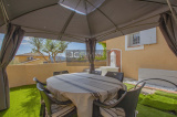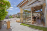 A l'EXTERIEUR, un joli terrain aménagé proposant un bel espace plat devant la maison avec une superbe vue, une terrasse et un coin pergola. Stationnements privatifs devant le portail et stationnement à l'intéreiur du terrain. Terrain clôturé et piscinable.