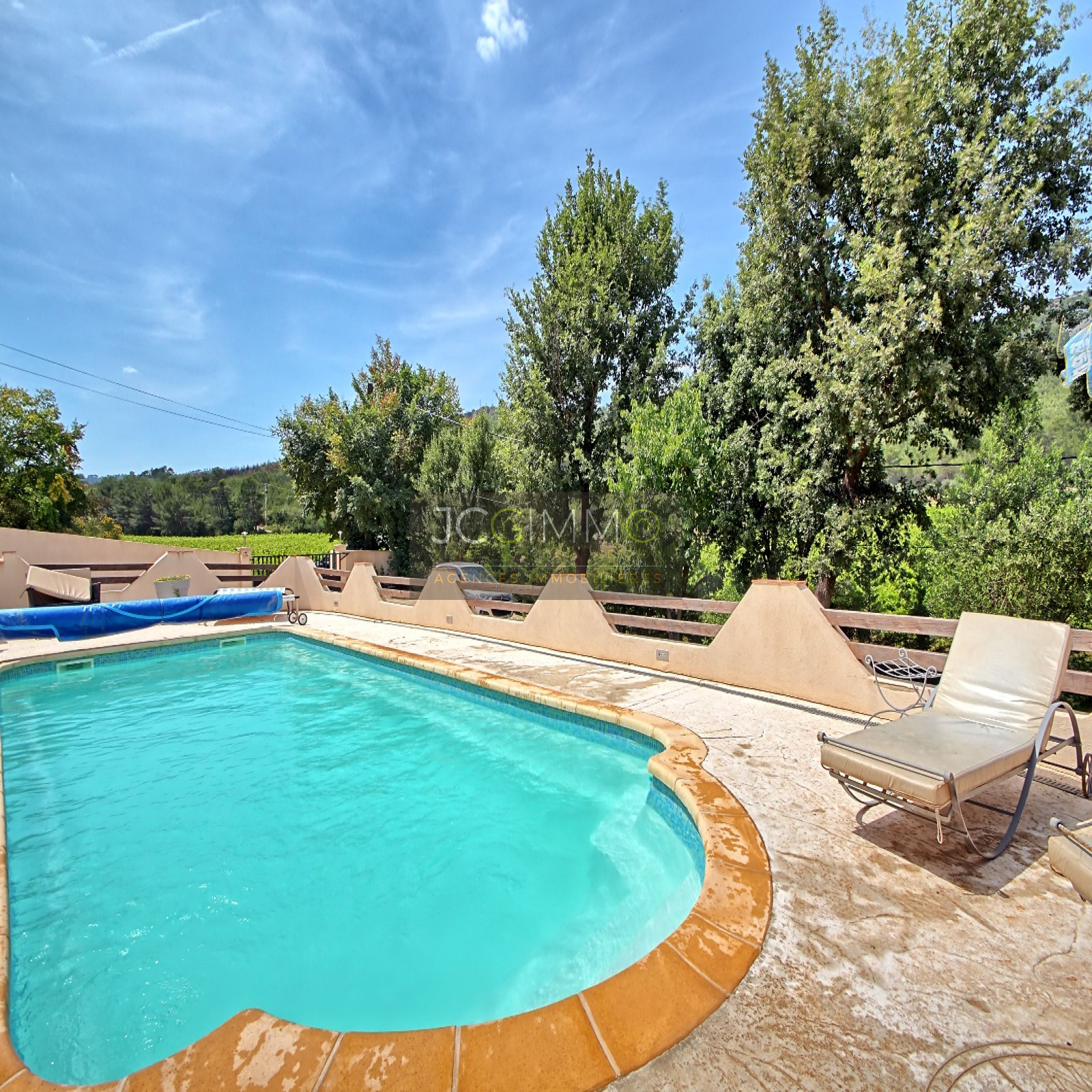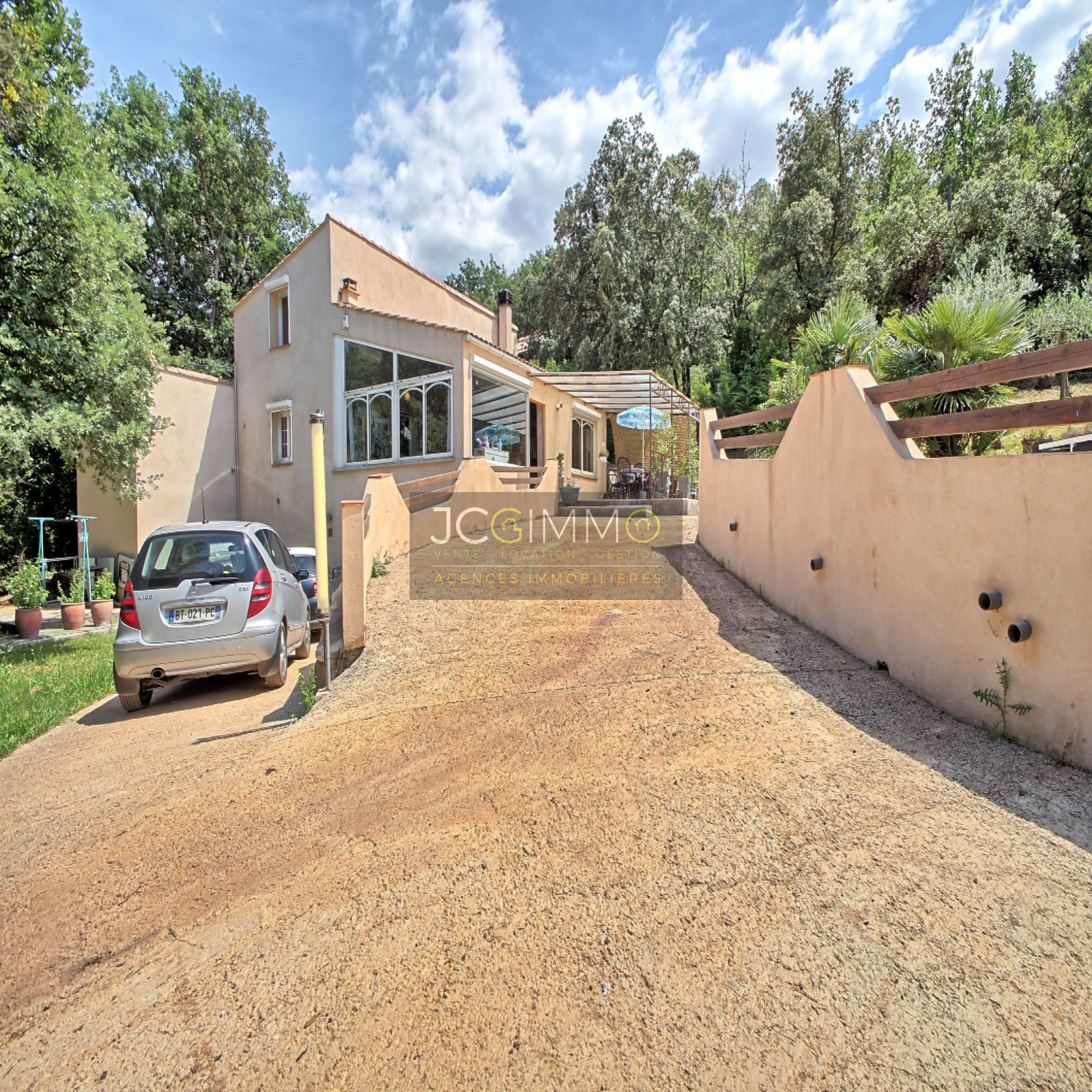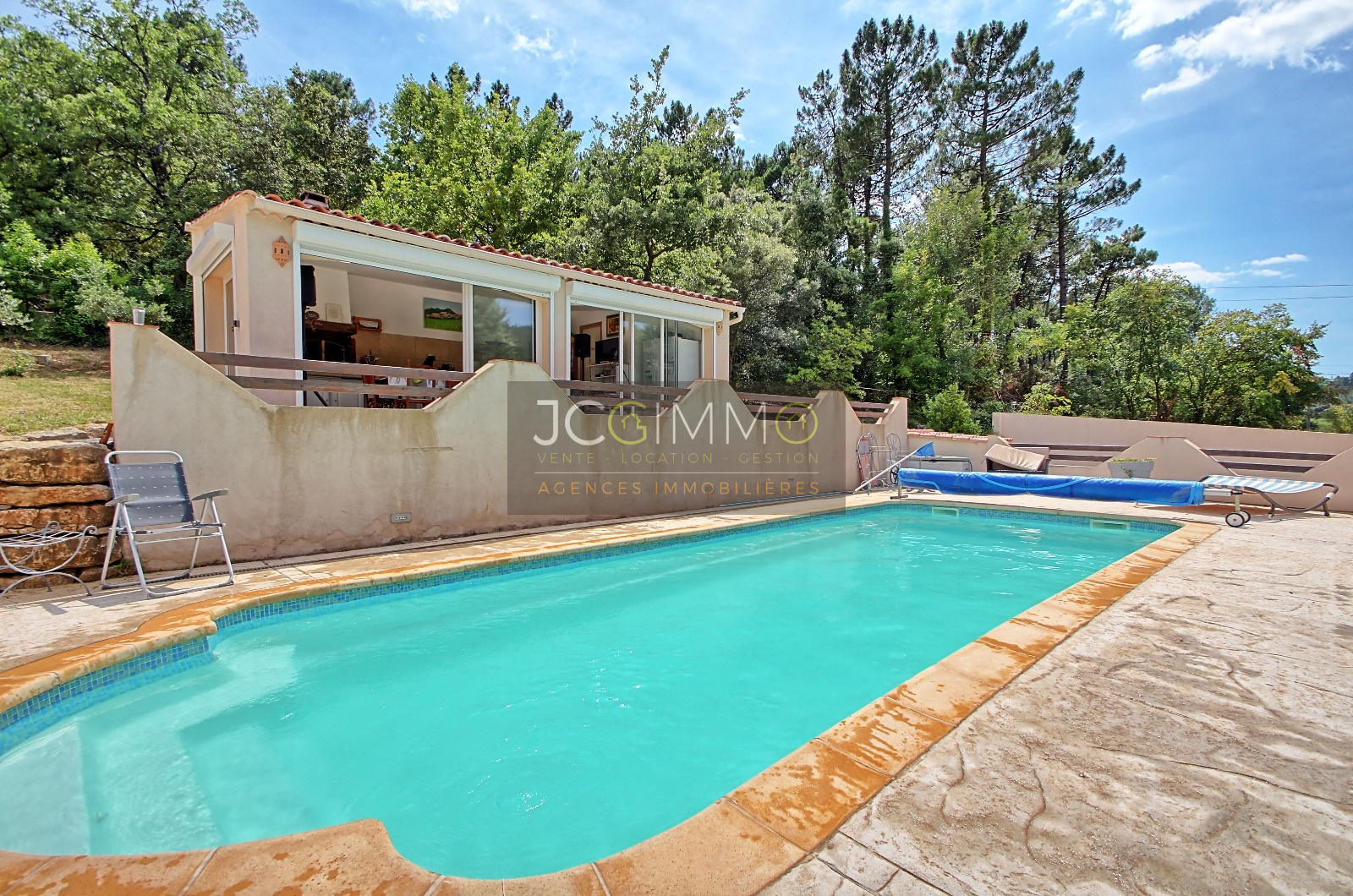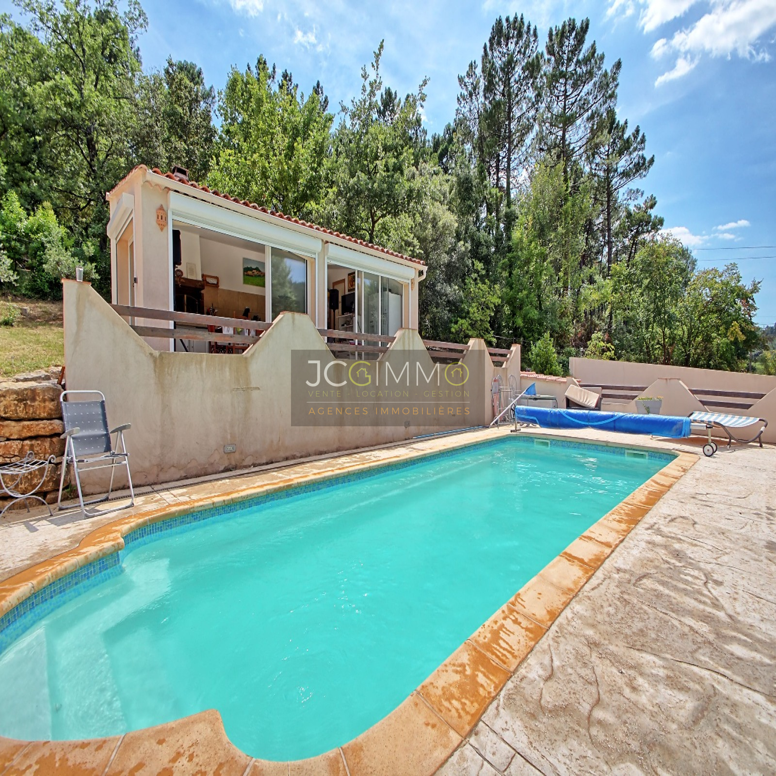 FORCALQUEIRET : Rare à la vente, au calme absolu dans un cadre naturel, villa T4 de 130m² hab sur un terrain de 2017m². Elle se compose au RDC d'un vaste salon lumineux avec belle hauteur sous plafond et cheminée insert, d'une cuisine équipée, d'une chambre de PLAIN PIED, d'une salle d'eau avec double douches à l'italienne et un WC ! A l'étage, de deux grandes chambres avec placards. Sous sol de 50m² avec atelier, garage (cuisine d'été) de 25m² et piscine avec belle plage exposée PLEIN SUD. A decouvrir !
