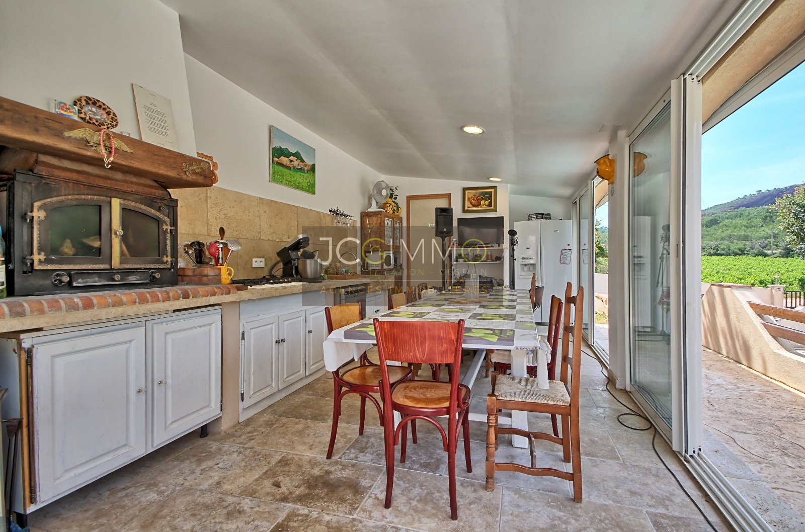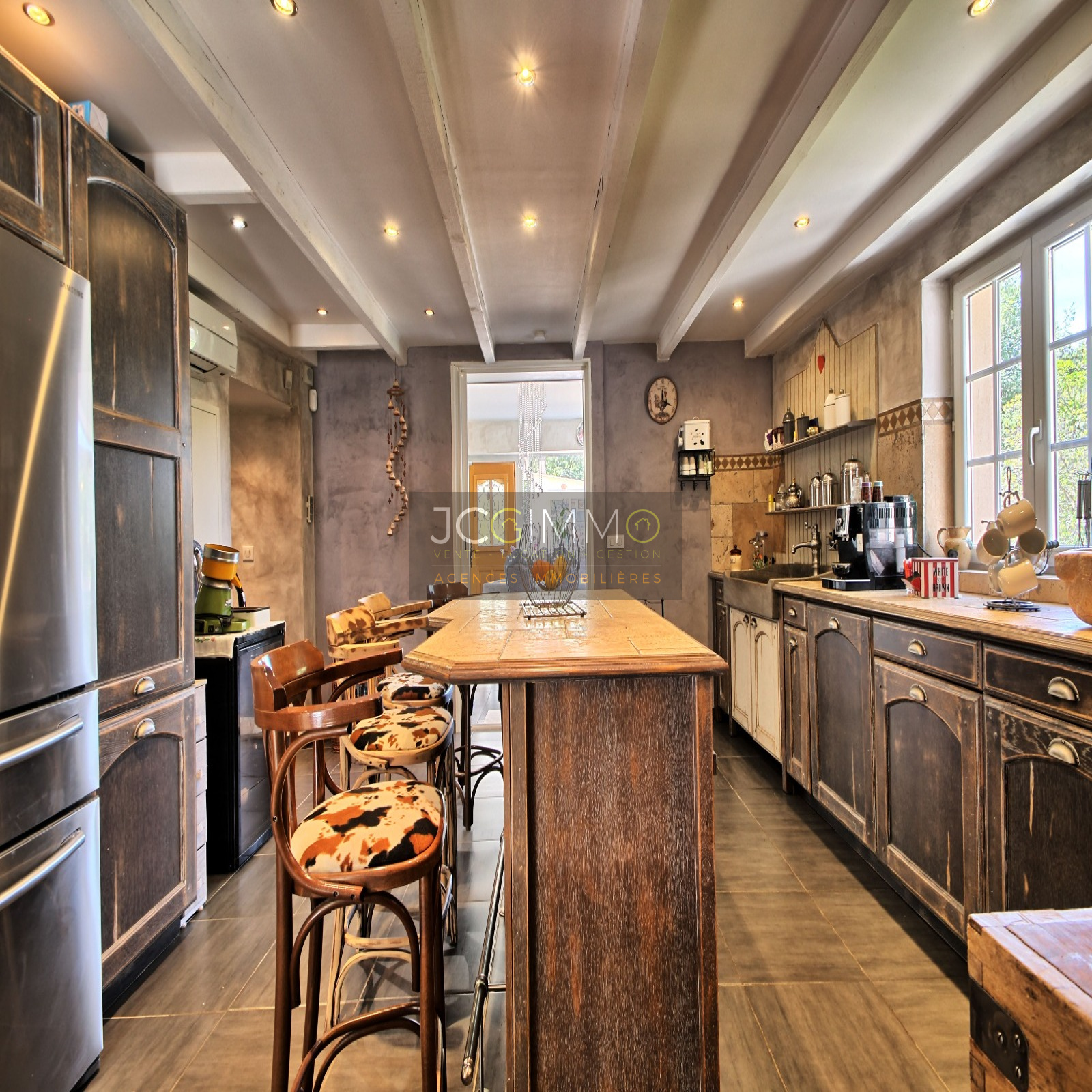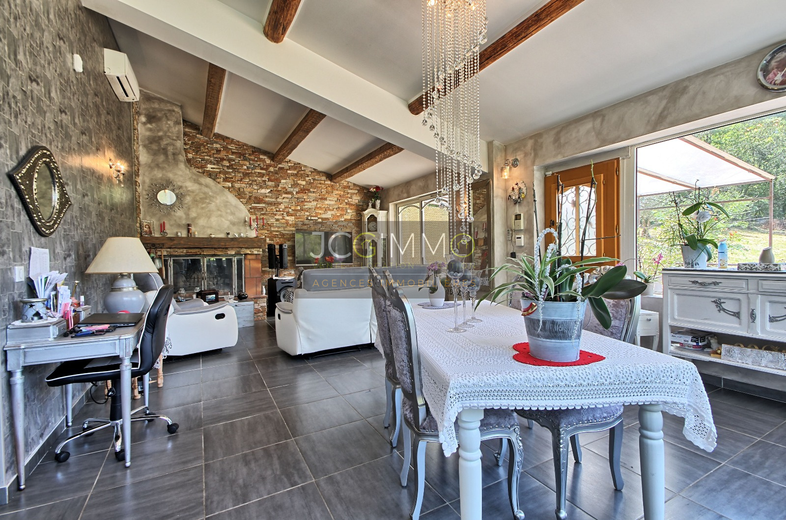FORCALQUEIRET : Rare à la vente, au calme absolu dans un cadre naturel, villa T4 de 130m² hab sur un terrain de 2017m². Elle se compose au RDC d'un vaste salon lumineux avec belle hauteur sous plafond et cheminée insert, d'une cuisine équipée, d'une chambre de PLAIN PIED, d'une salle d'eau avec double douches à l'italienne et un WC ! A l'étage, de deux grandes chambres avec placards. Sous sol de 50m² avec atelier, garage (cuisine d'été) de 25m² et piscine avec belle plage exposée PLEIN SUD. A decouvrir !