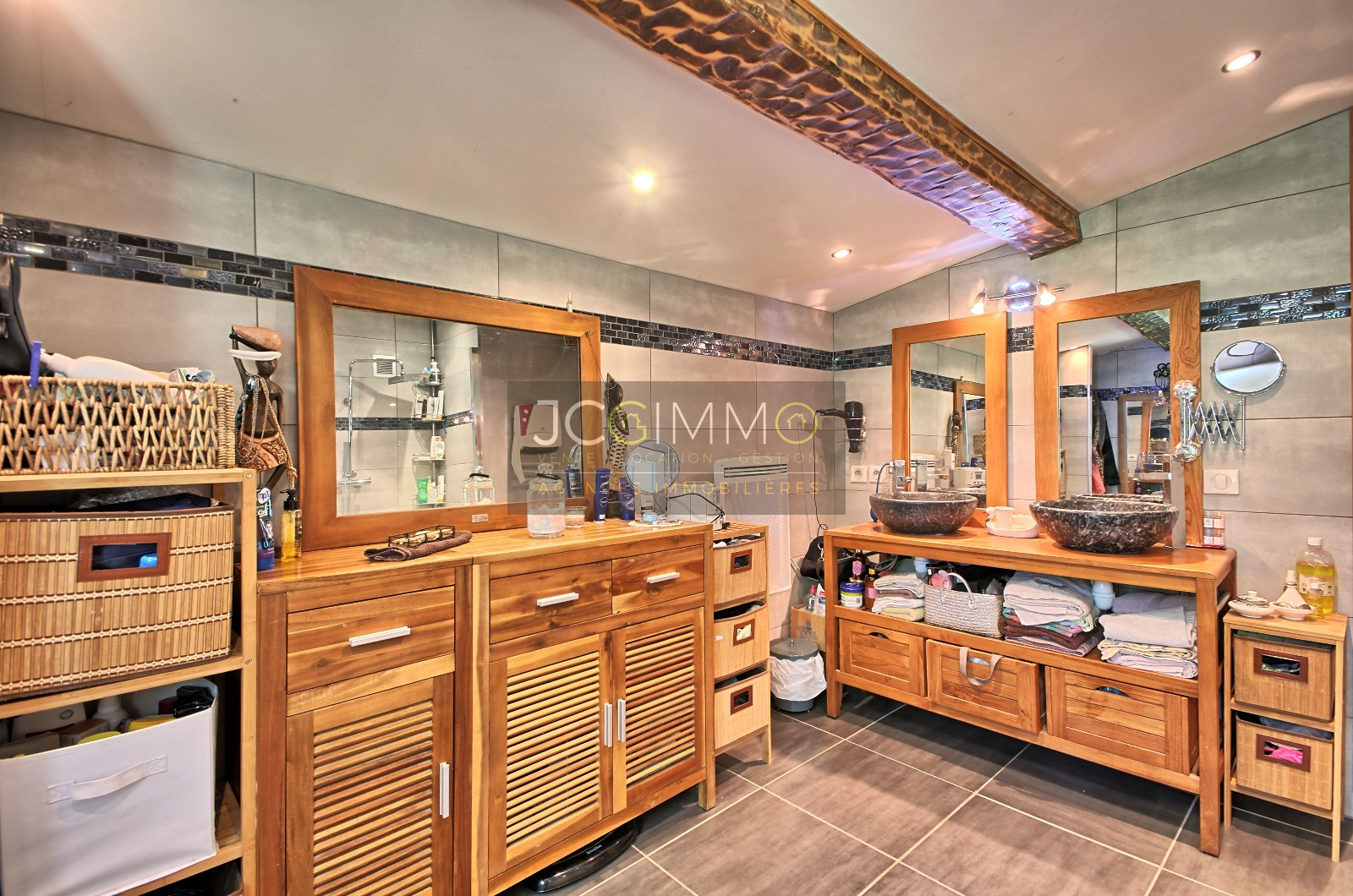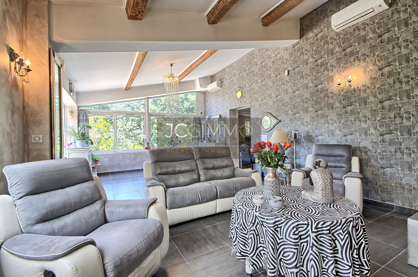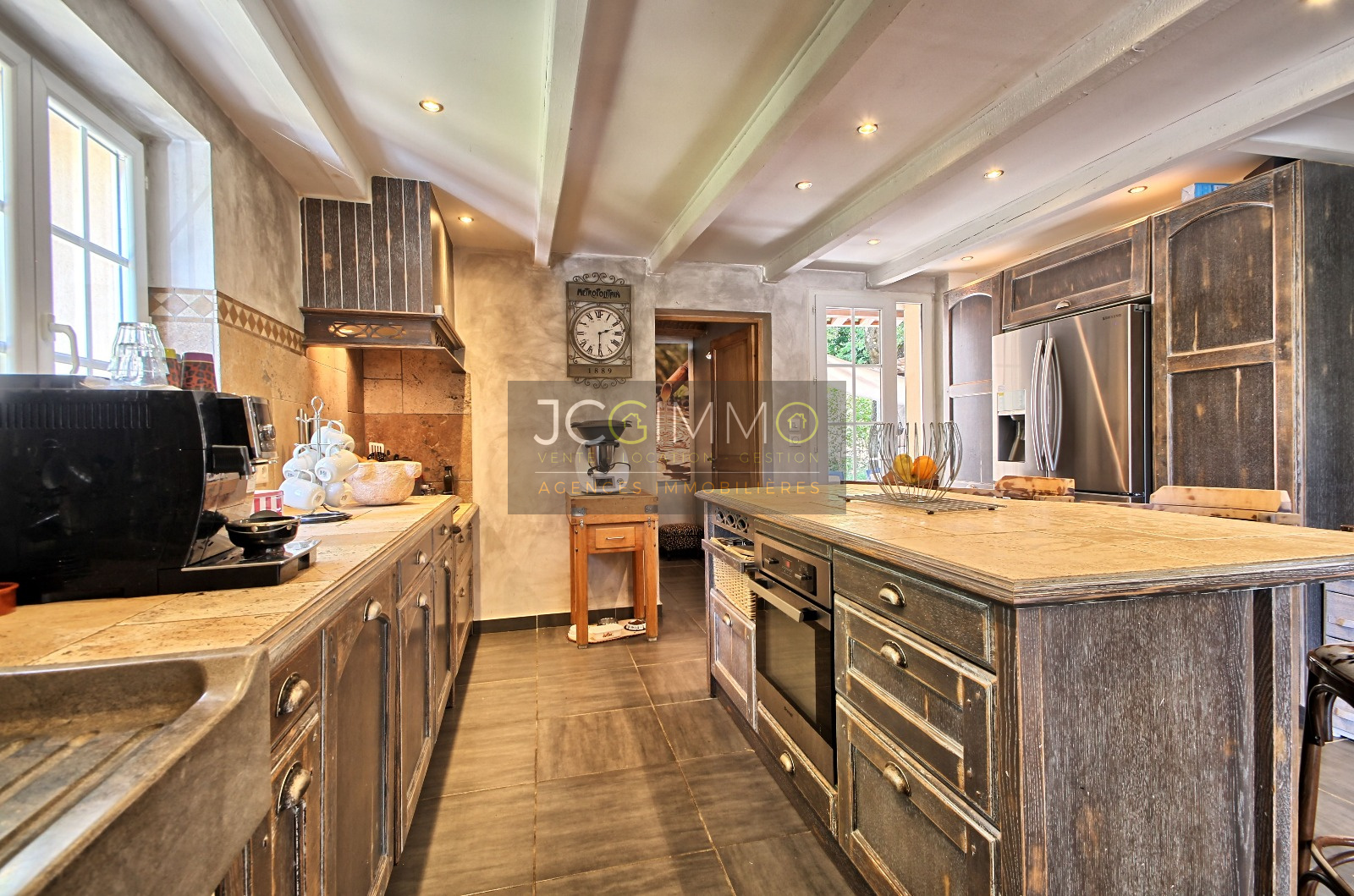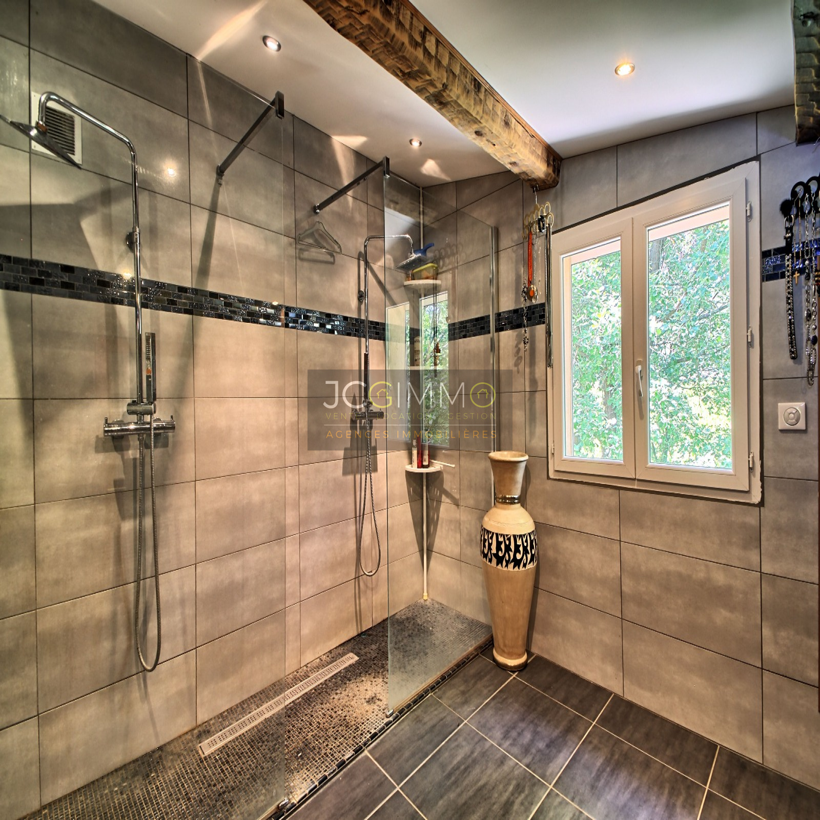 FORCALQUEIRET : Rare à la vente, au calme absolu dans un cadre naturel, villa T4 de 130m² hab sur un terrain de 2017m². Elle se compose au RDC d'un vaste salon lumineux avec belle hauteur sous plafond et cheminée insert, d'une cuisine équipée, d'une chambre de PLAIN PIED, d'une salle d'eau avec double douches à l'italienne et un WC ! A l'étage, de deux grandes chambres avec placards. Sous sol de 50m² avec atelier, garage (cuisine d'été) de 25m² et piscine avec belle plage exposée PLEIN SUD. A decouvrir !