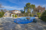 A l'extérieur : Une vaste terrasse avec cuisine d'été orientée sud. Une piscine traditionnelle 8X4 avec pompe à chaleur, un garage indépendant, un abris voiture et un portail électrique. Le terrain fait 1650m² plat et clos.