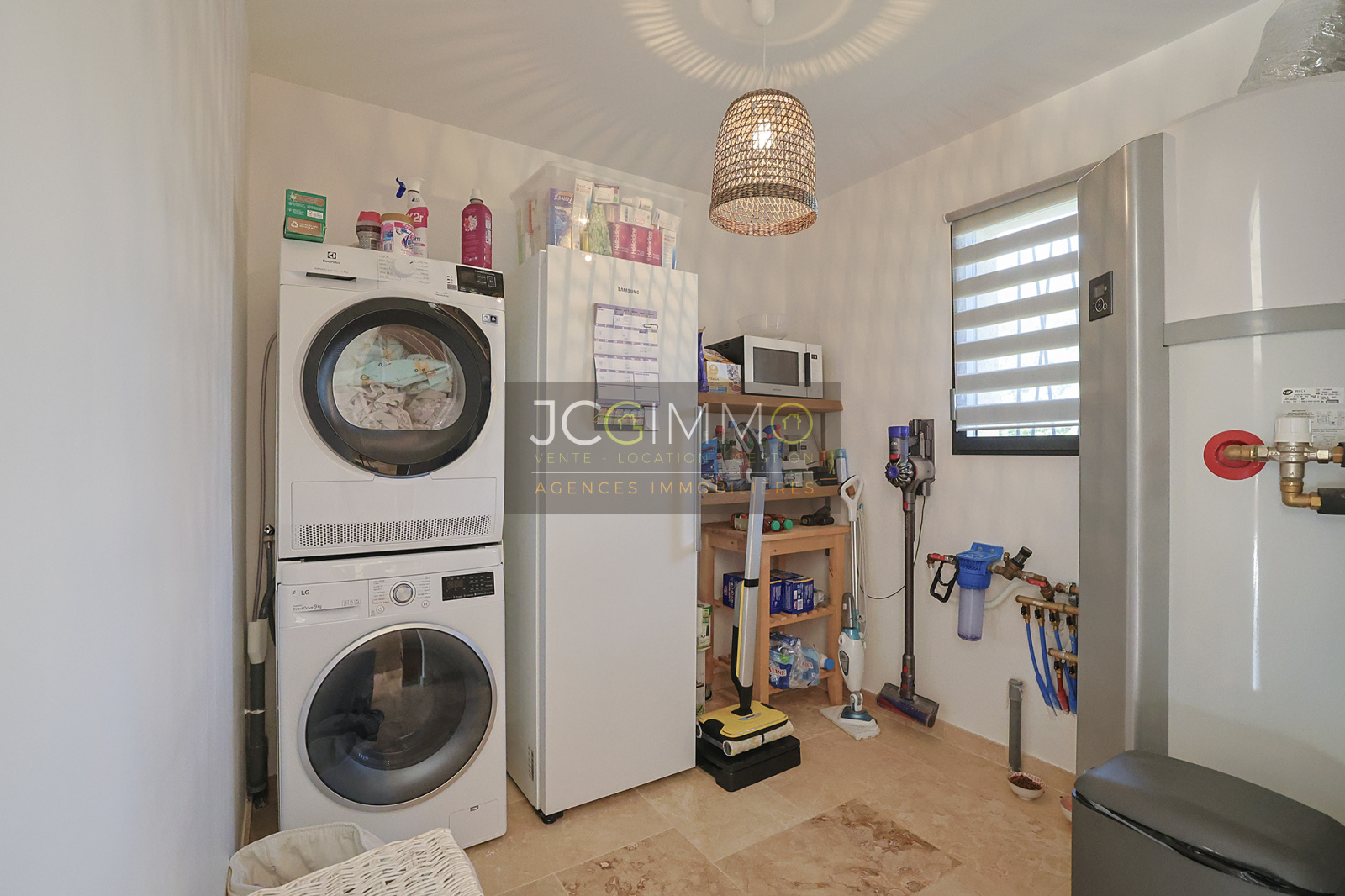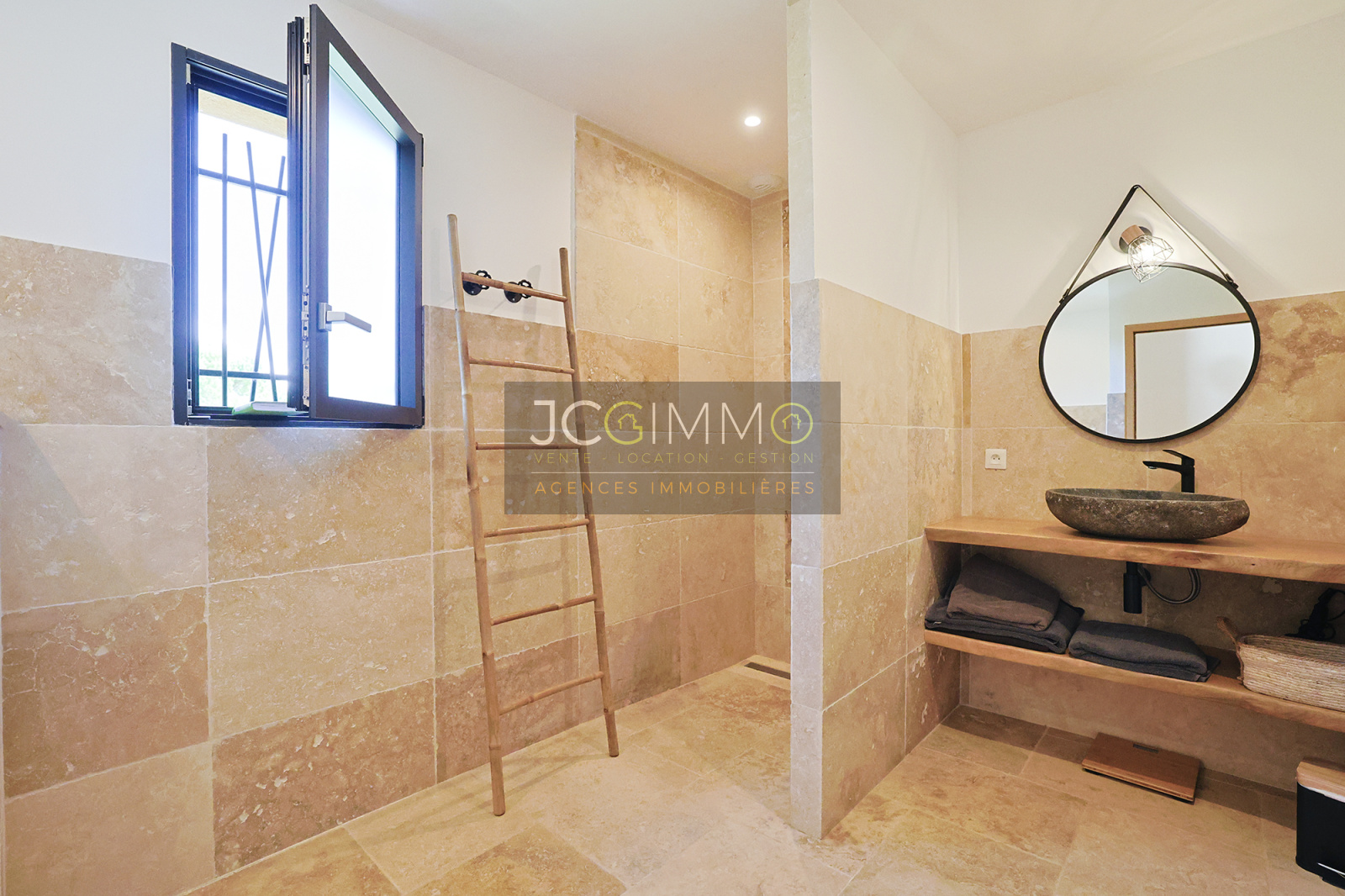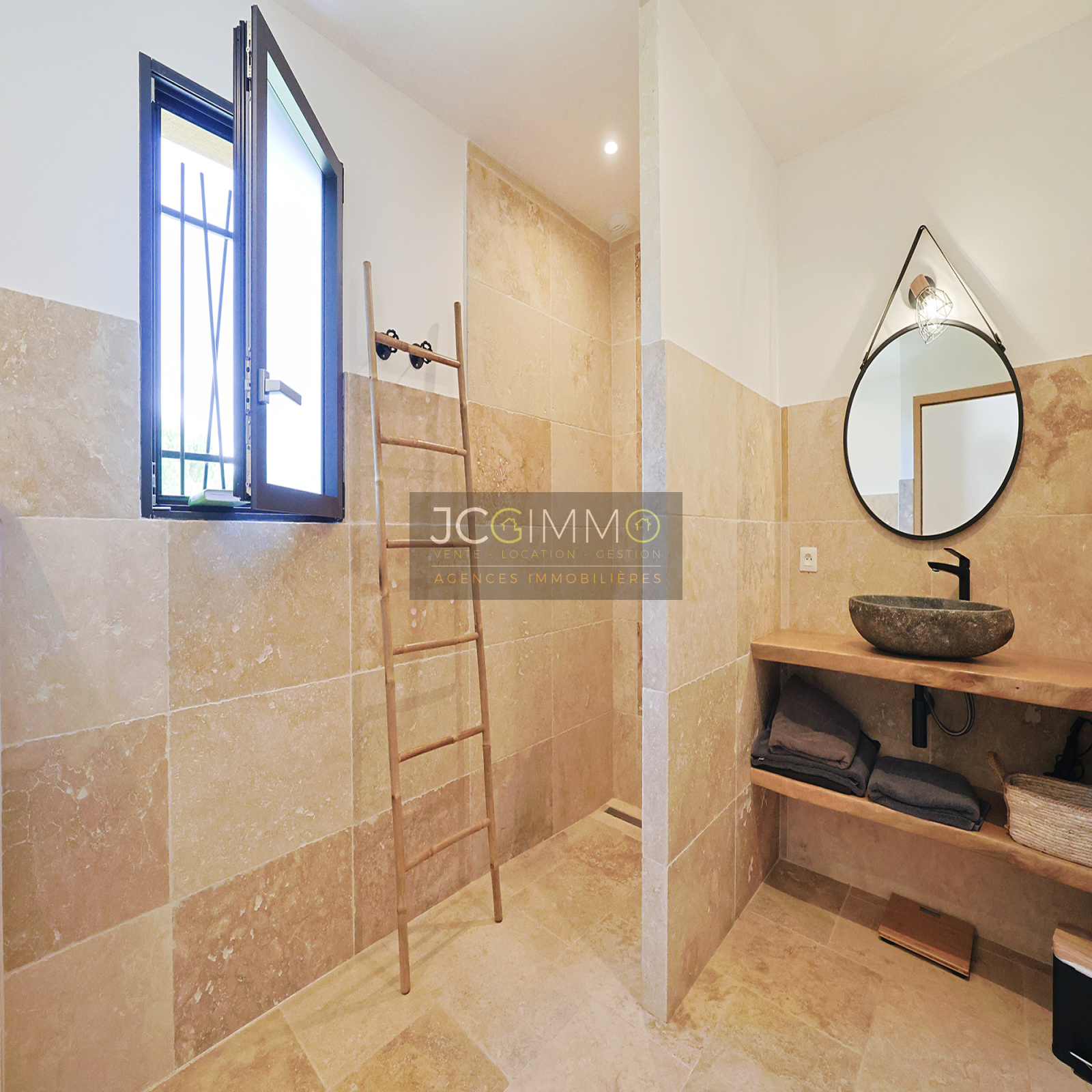 La villa possède des finitions irréprochables ainsi que tout le confort moderne : l’impression qu’intérieur et extérieur ne font qu'un, Volets motorisés, les huisseries en ALU double vitrage, Climatisation réversible, RT 2012, entièrement de plain pied, …