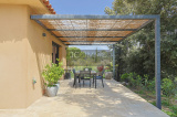 Vous y découvrirez une large terrasse en travertin, idéale pour organiser de bons barbecues en famille/entre amis.