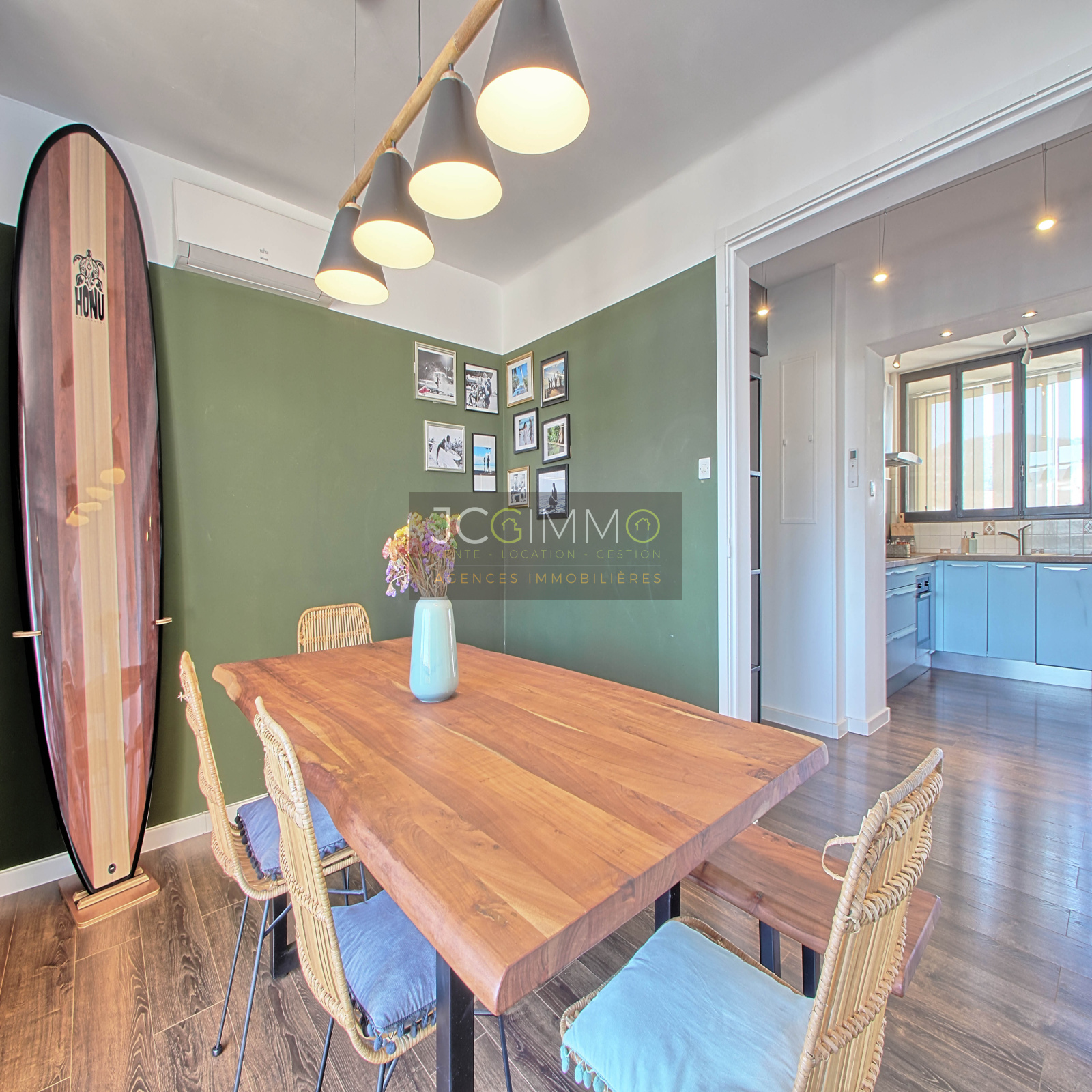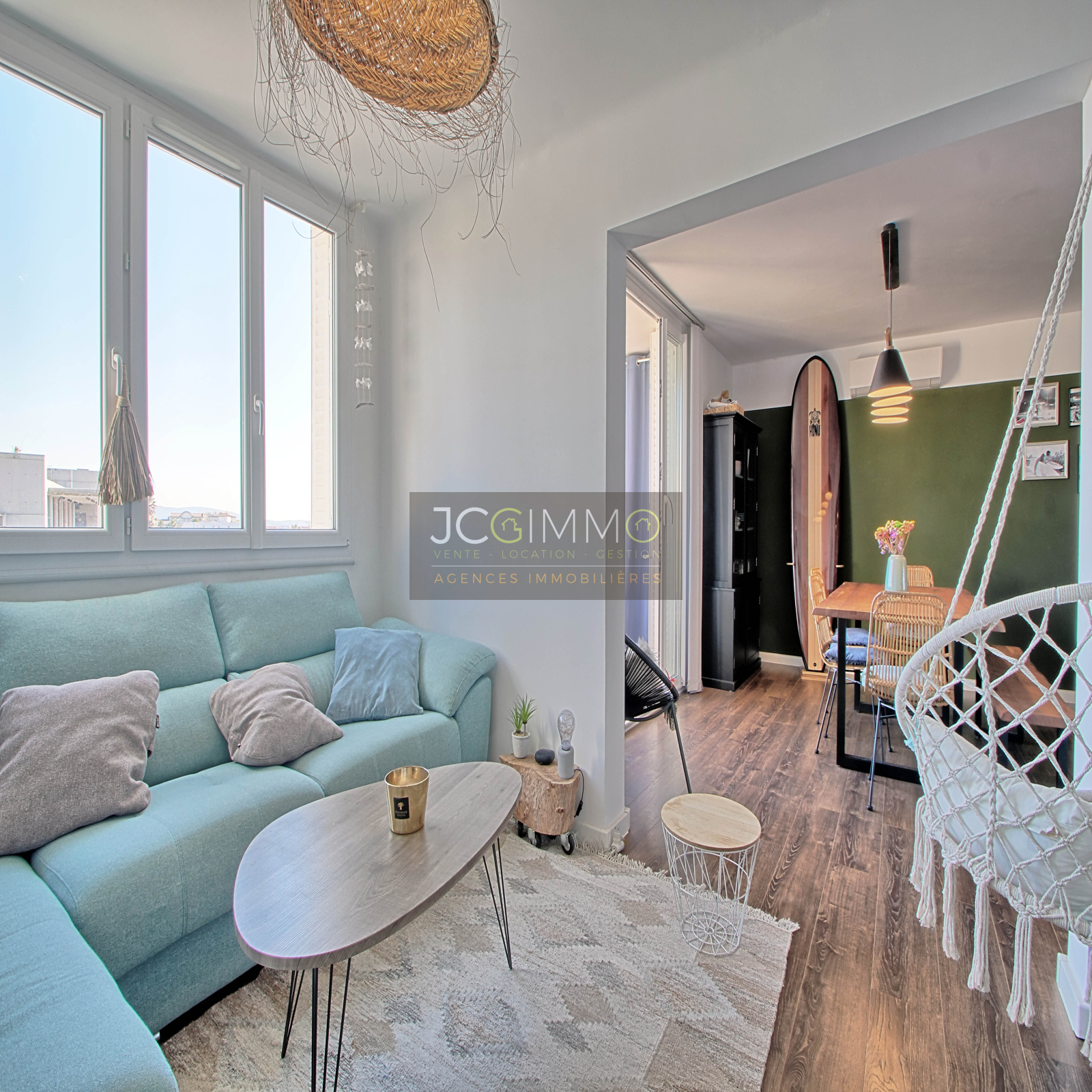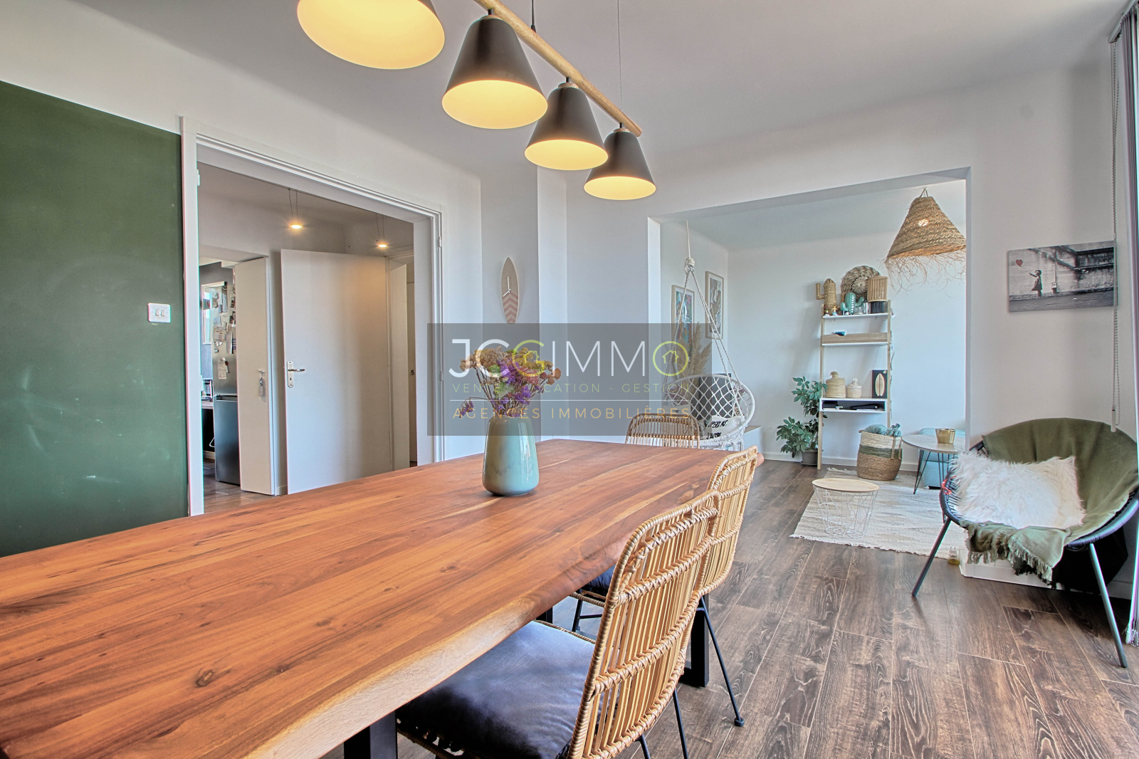 Il se compose, d'une vaste entrée, une salle à manger donnant sur un balcon avec vue dégagée à l'EST, un espace salon pouvant être retransformé en 3ème chambre, une cuisine toute équipée donnant sur une loggia à l'OUEST actuellement utilisé en espace buanderie (très pratique), 2 chambres de 11m² chacune, une salle d'eau et un WC indépendant. Il est au 4ème étage sur 4 de l'immeuble. Absence d'ascenseur. Il est entièrement rénové avec goût. L'appartement est très lumineux et vendu avec une cave idéal pour le stockage. Il est vraiment possible de "poser ses valises" AUCUN TRAVAUX À PREVOIR.