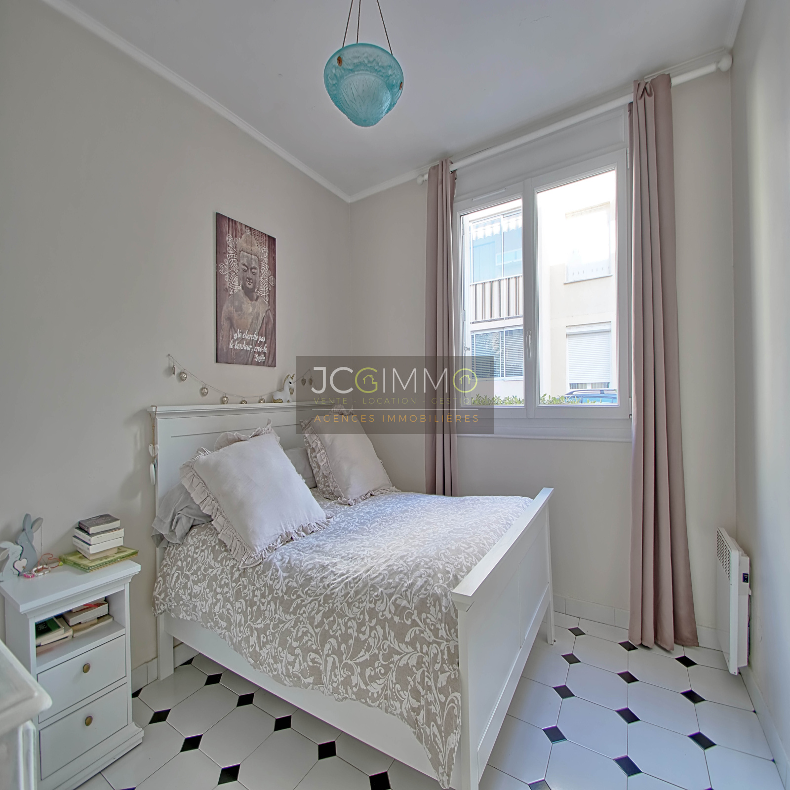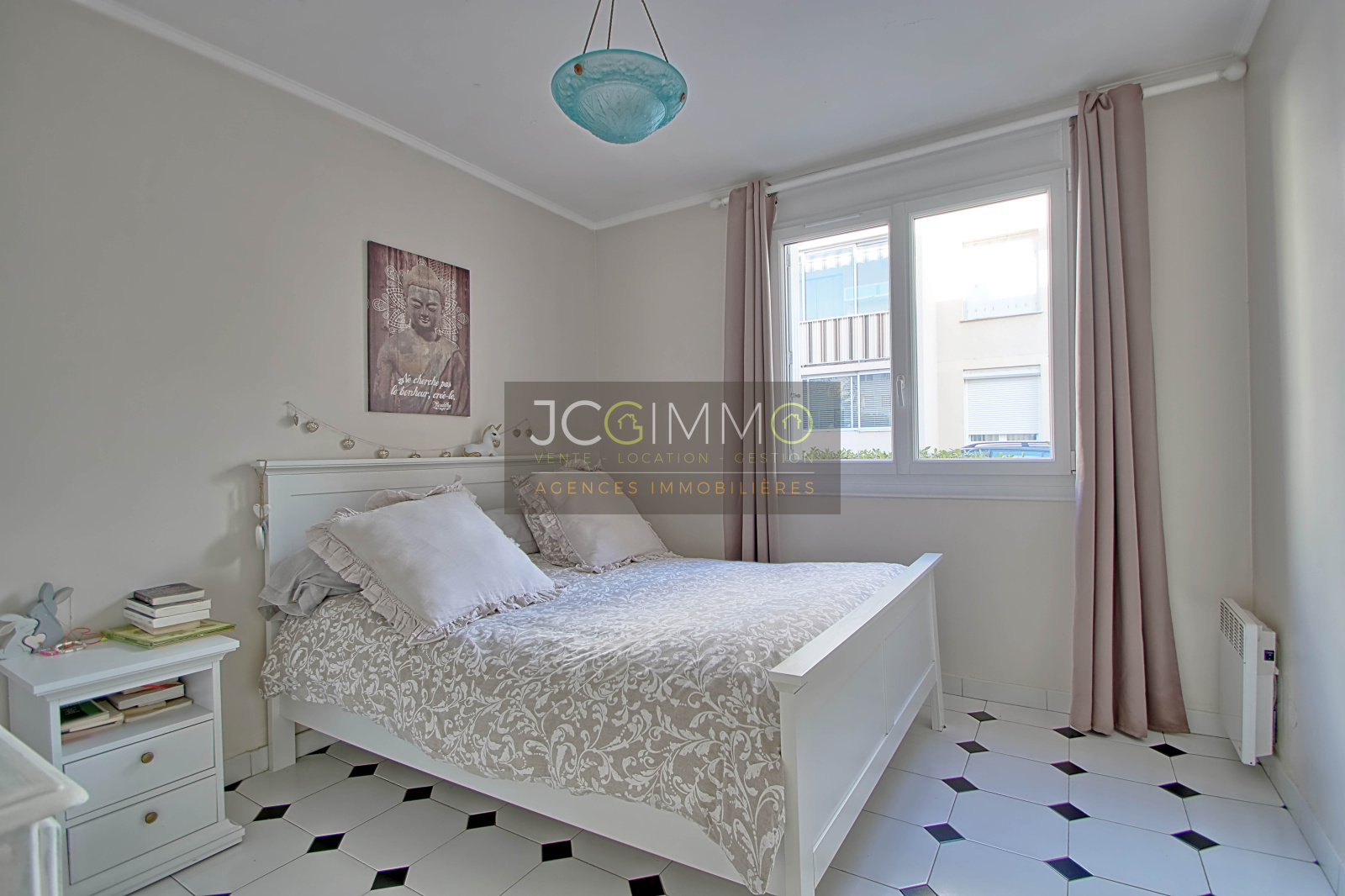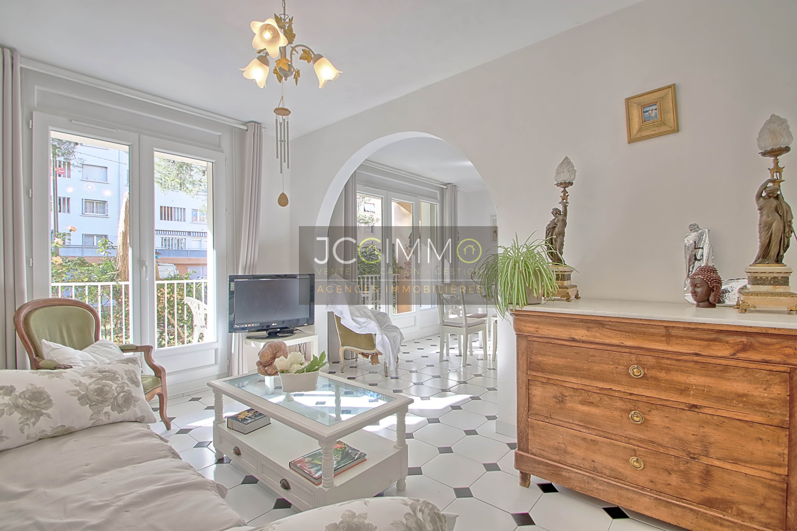 L'appartement se compose d'un salon/séjour en L de 32 m² bénéficiant d'une terrasse ( possibilité d'y mettre une petite table ), d'une cuisine séparée très pratique (pouvant etre ouverte sur le salon), de 2 chambres avec rangement, une salle de bains avec double vasques, un WC indépendant. Il bénéficie également d'une loggia. Appartement très lumineux grâce à ses grandes ouvertures et son côté traversant EST/OUEST. Huisseries en double vitrage.
