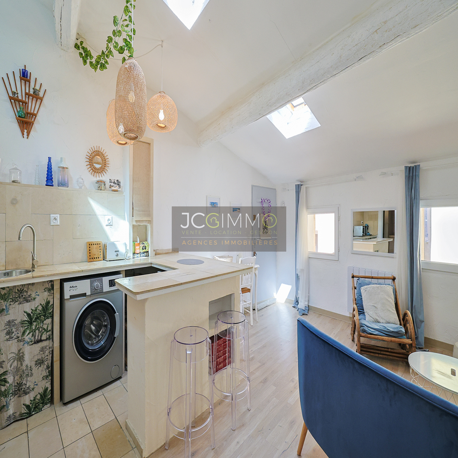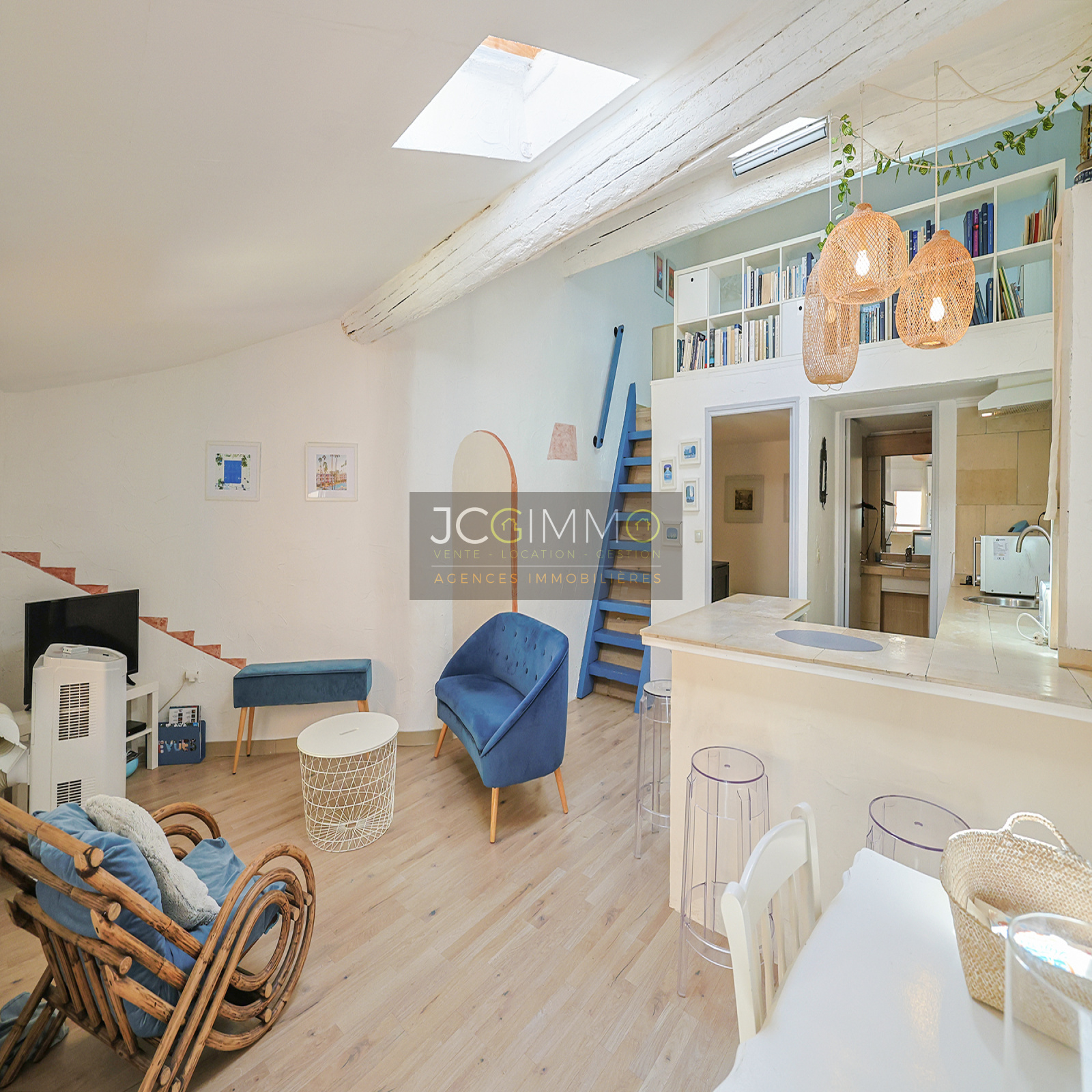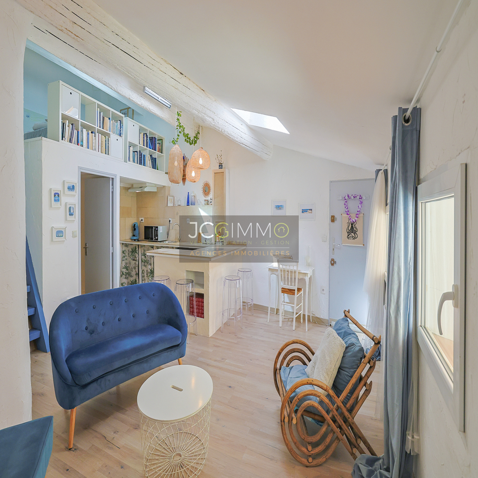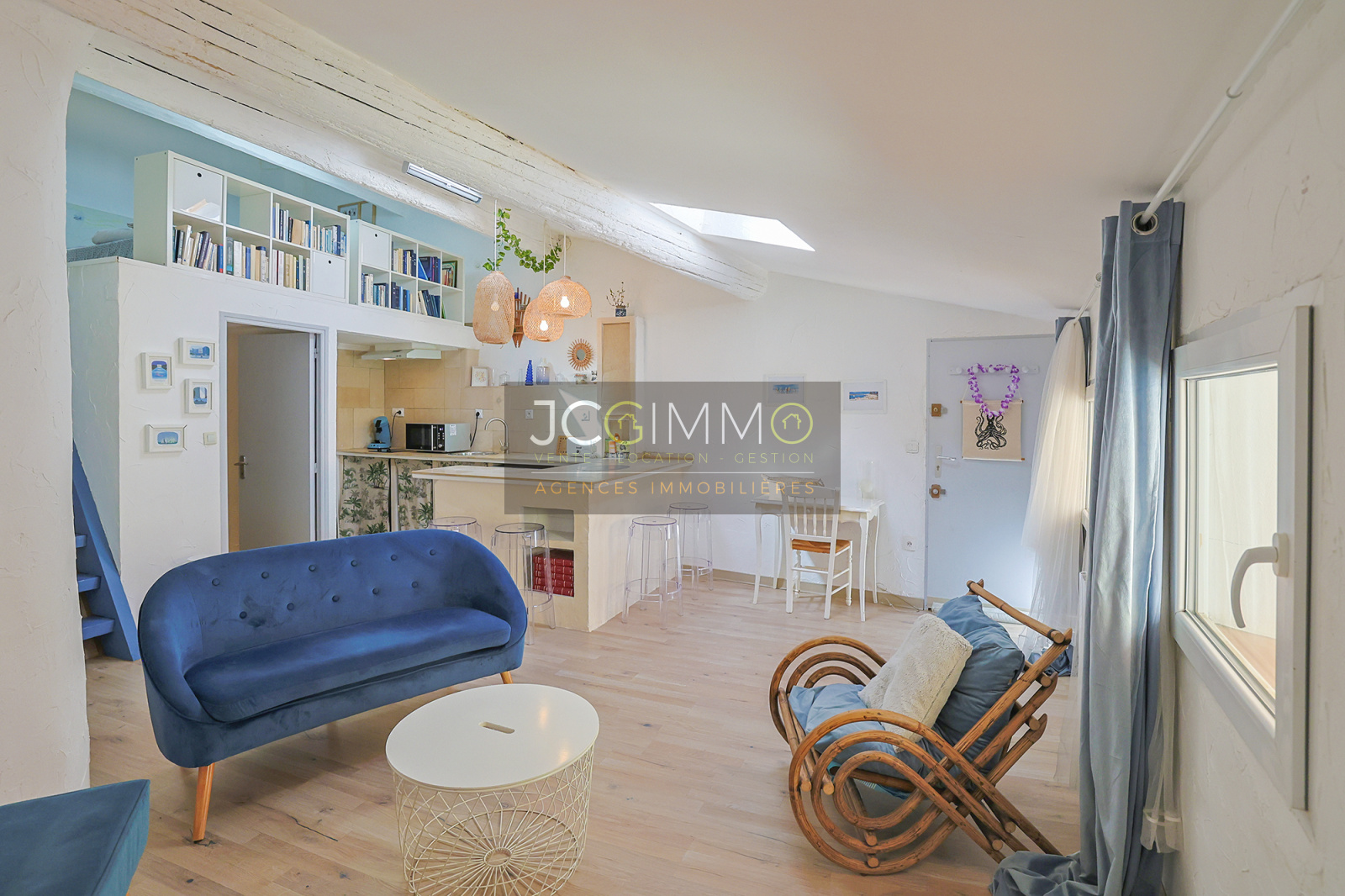 HYERES :Au calme. Lumineux appartement de 45 m² avec 1 bureauet 1 chambre en mezzanine. Vendu Meublé.
