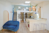 L’espace se compose d’une pièce de vie lumineuse (23m²) avec une cuisine ouverte ; une petite pièce aveugle 7m² (pouvant servir de dressing, petite chambre ou bureau) ; une salle d’eau avec revêtement en marbre. La mezzanine de 12m² où vous trouverez la chambre principale, surplombe le séjour. Totalisant 45 m² (38,16 m² en loi carrez).