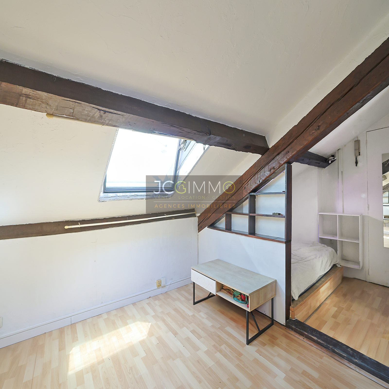Caractérisé par sa surface bien agencée, ce studio mansardé offre plusieurs espaces de vie confortables et fonctionnels, une salle d'eau séparée avec un receveur et une vasque, un coin nuit isolé et un séjour/cuisine. Le studio mesure 14,55m² loi carrez, mais offre au sol plus de 18m² supplémentaires (h< 1.80m).