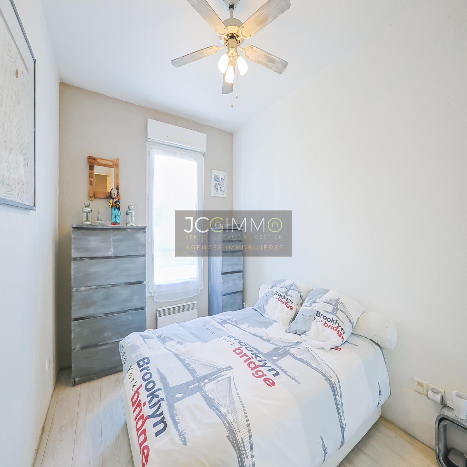 - de deux chambres confortables de tailles identiques (11m²), avec placards intégrés,