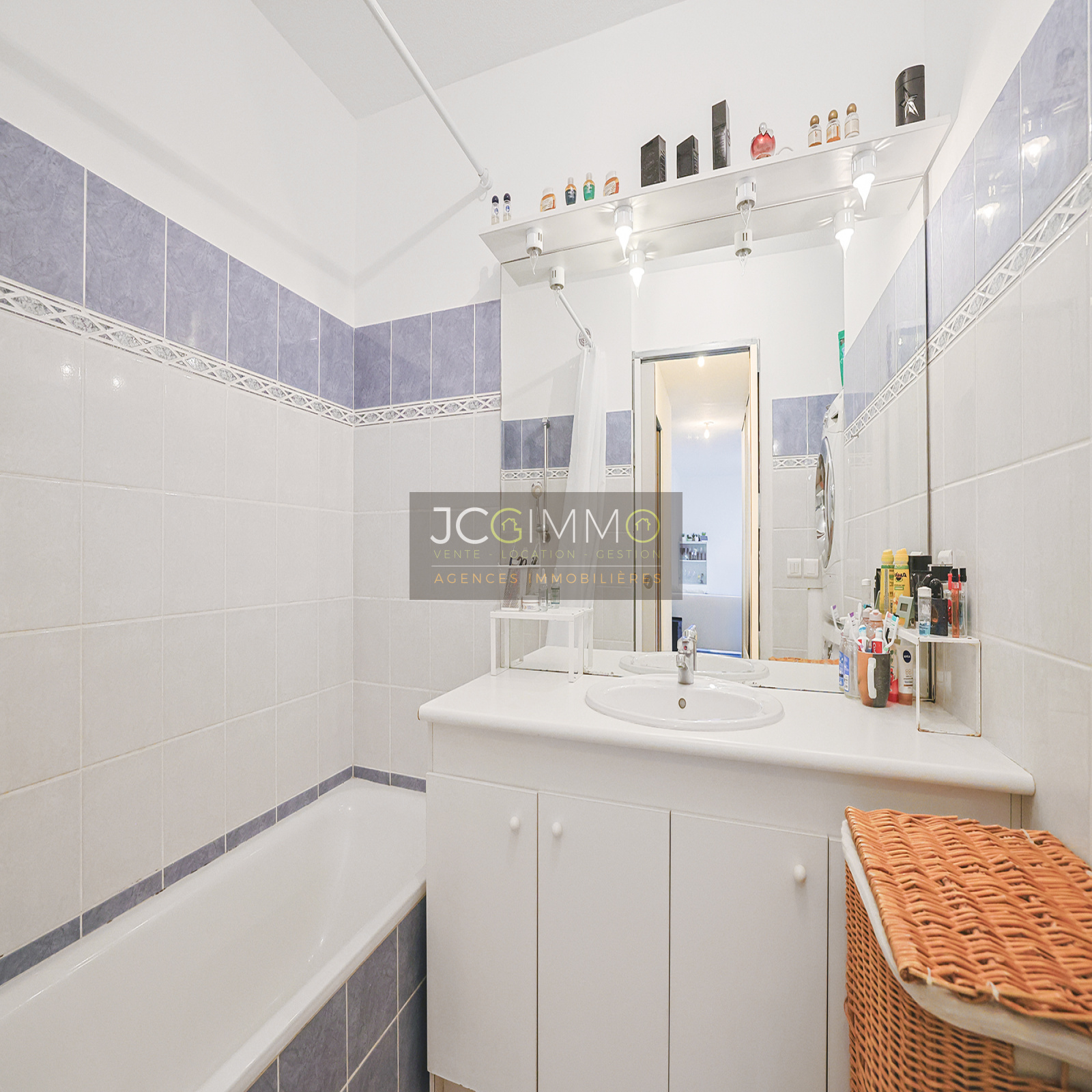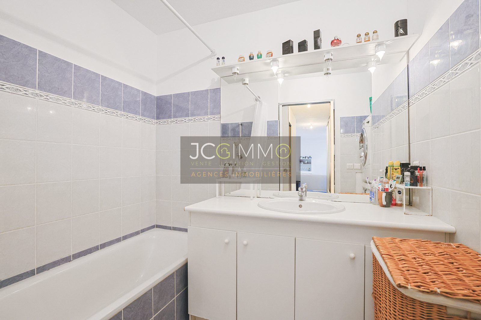- d’une salle de bains équipée (baignoire, vasque, carrelage et faience), avec un espace pour les machines.