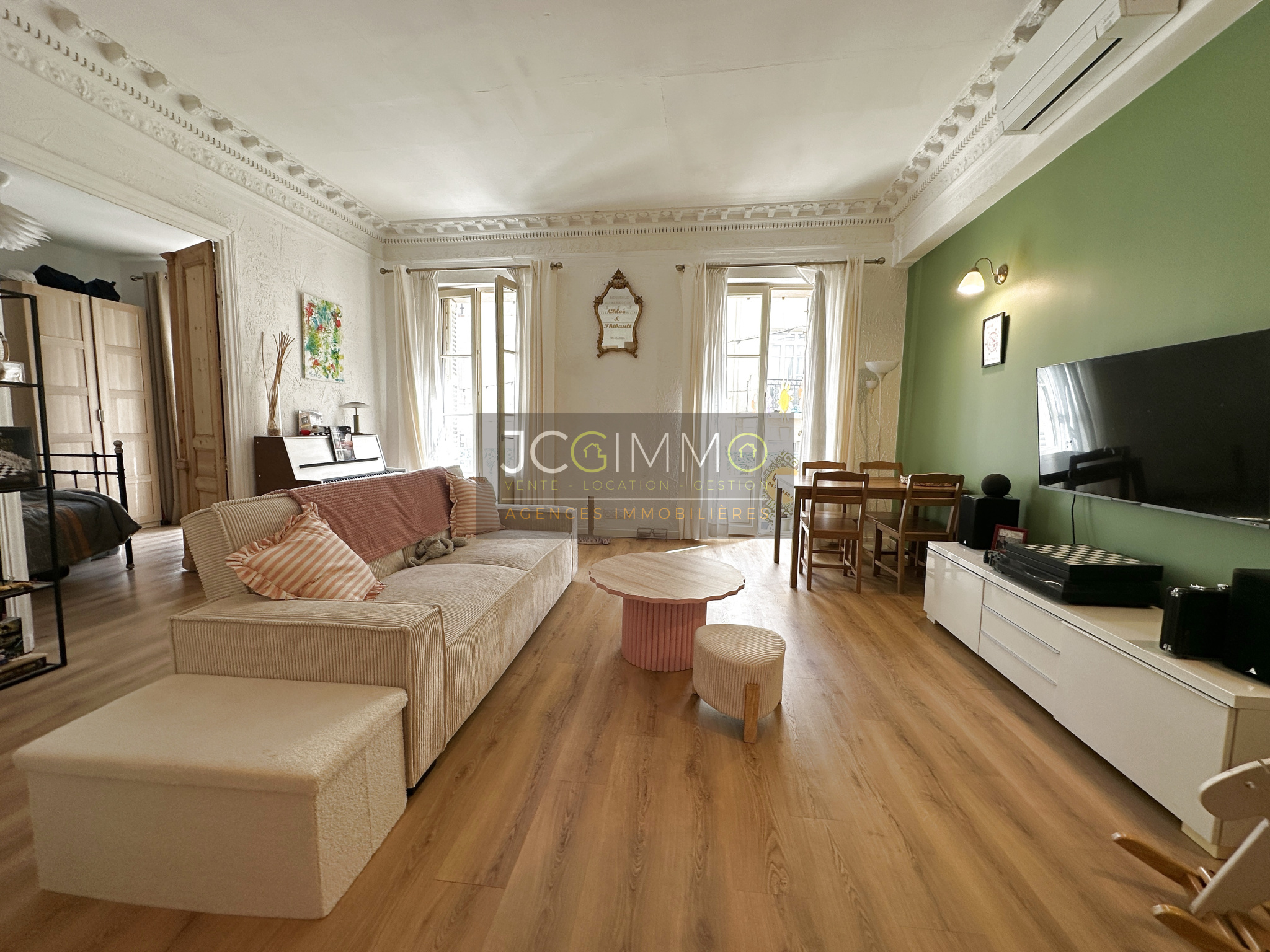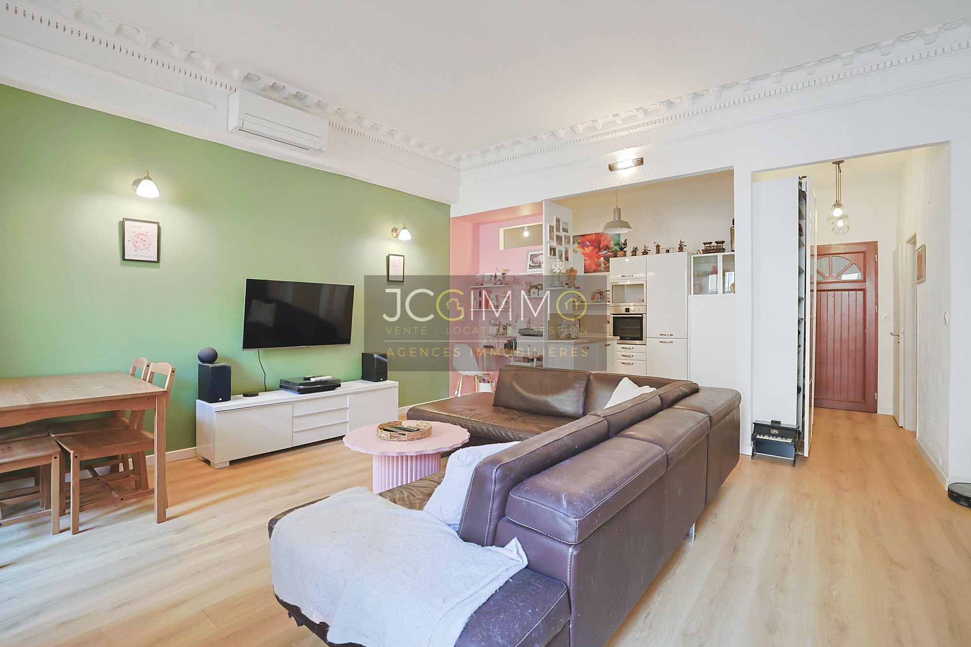Cet appartement T3 très lumineux de plus de 66m², est composé d'une très grande pièce à vivre avec une hauteur sous plafond de 3,20 mètres, de 2 chambres, une SDB, un WC indépendant, et de 3 petits balconnets.