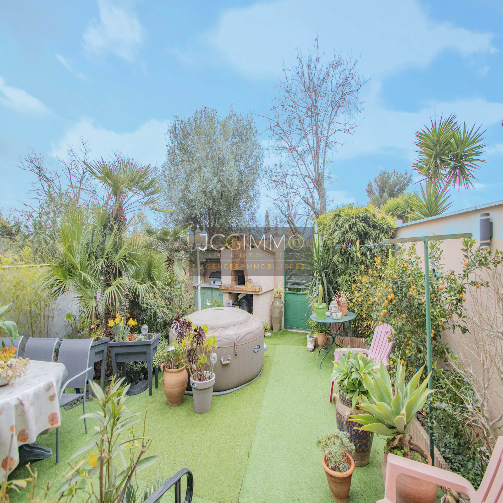 A l'extérieur, vous profiterez d'un jardin exposé SUD aménagé comprenant une jolie cuisine d'été. Un portillon présent dans le jardin vous donnera accès un un jardin appartenant à la copropriété.