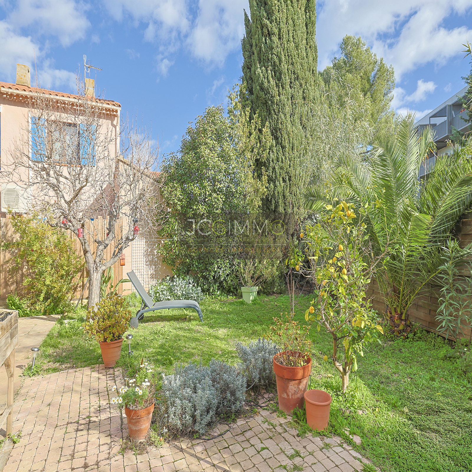 La maison dispose d’un jardin privatif de 122 m² exposé sud est, de deux places de stationnement privées et d’un stationnement facile au sein du lotissement.