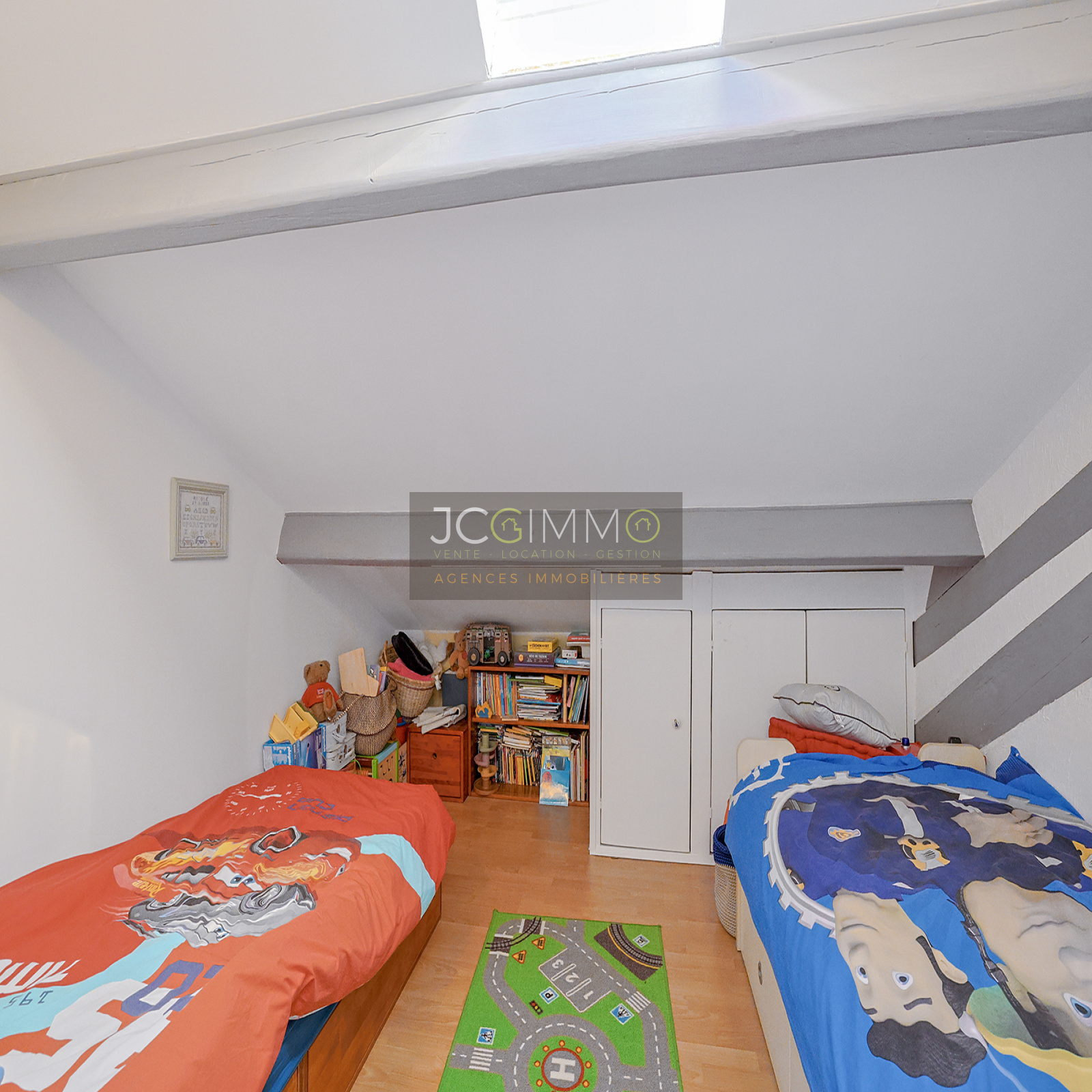 Au deuxième étage mansardé : 2 chambres, un coin bureau et un WC indépendant.