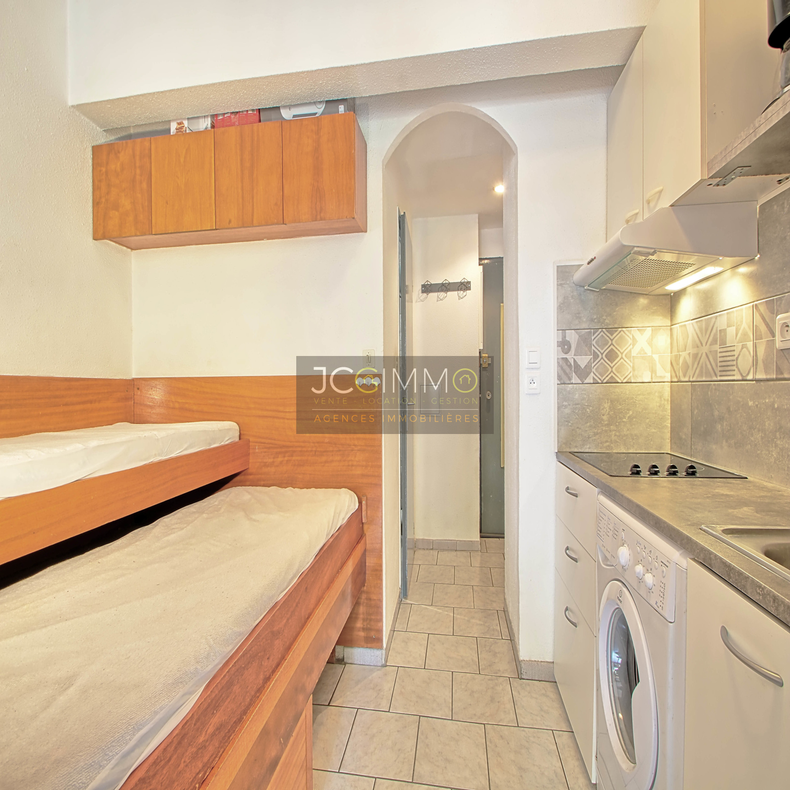 Il se compose d'un agréable séjour pouvant accueillir 4 couchages, avec sa kitchinette très pratique, une salle d'eau avec douche et WC.