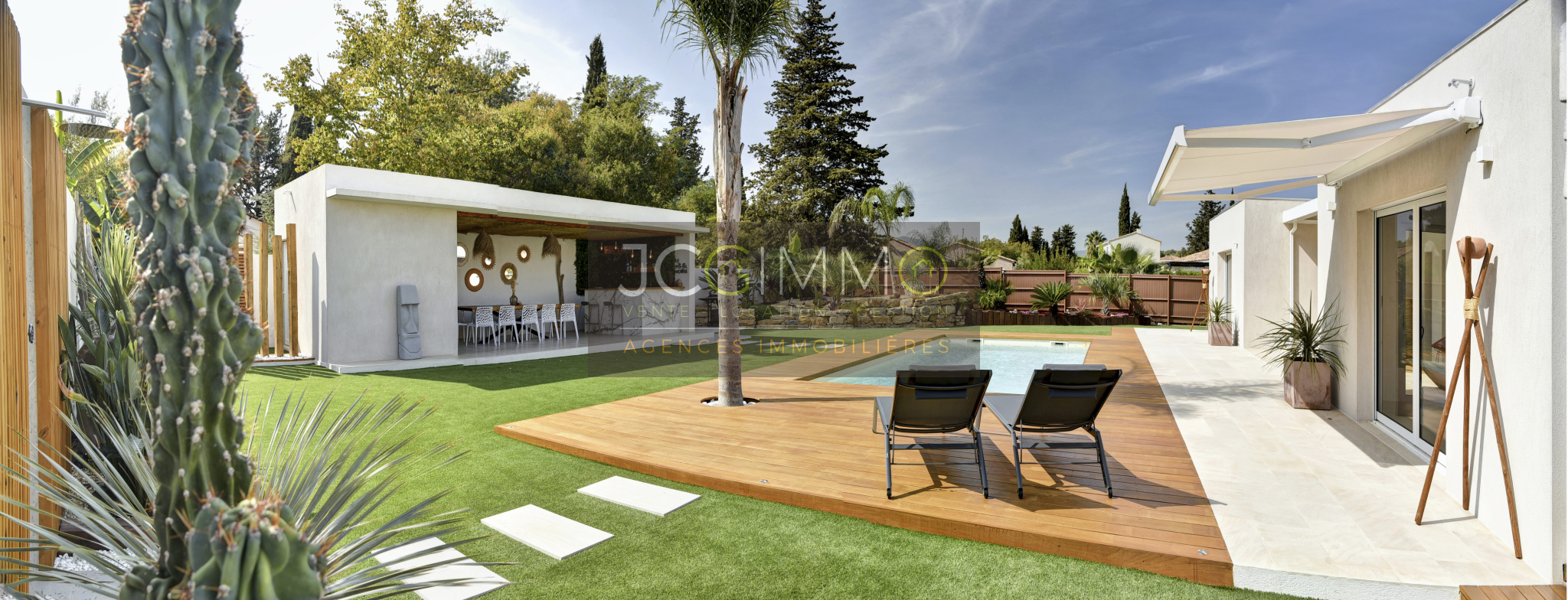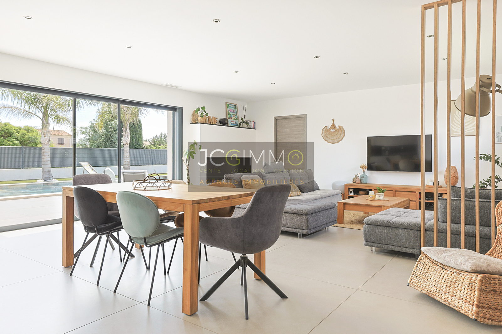 Située dans un secteur recherché, la construction de cette villa contemporaine a été achevée en 2020, avec les dernières normes de construction et d’isolation. D'un niveau de finition remarquable, elle offre une généreuse surface habitable de 200m² dont un garage de 27m², bâtie sur un terrain entièrement aménagé de 850m², agrémenté d'une formidable piscine, d’une terrasse avec pergola, et d’une cuisine d’été.