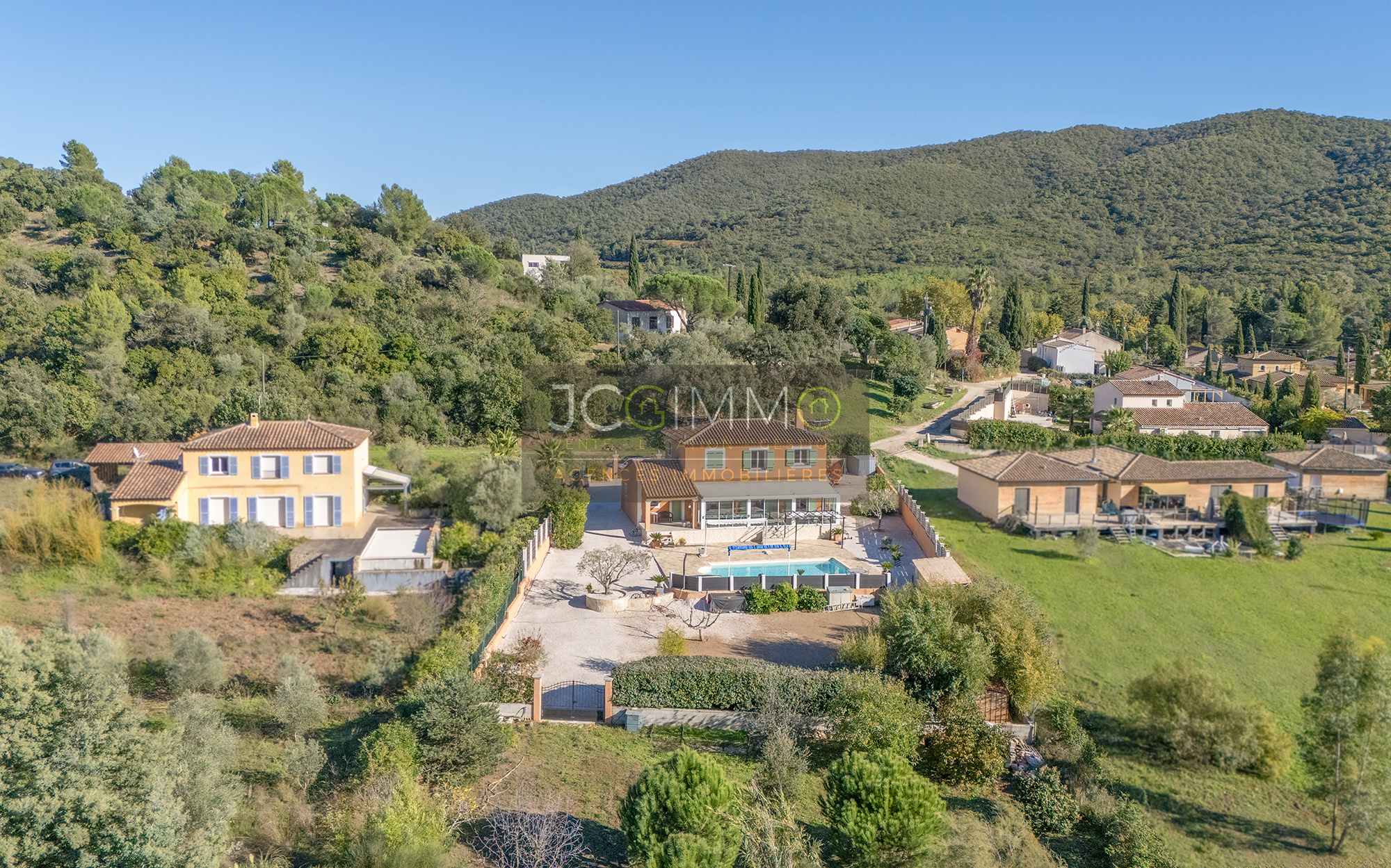 Elle offre une vue splendide sur le Massif des Maures et un accès direct à la piscine. - Une grande piscine au sel, facile d'entretien