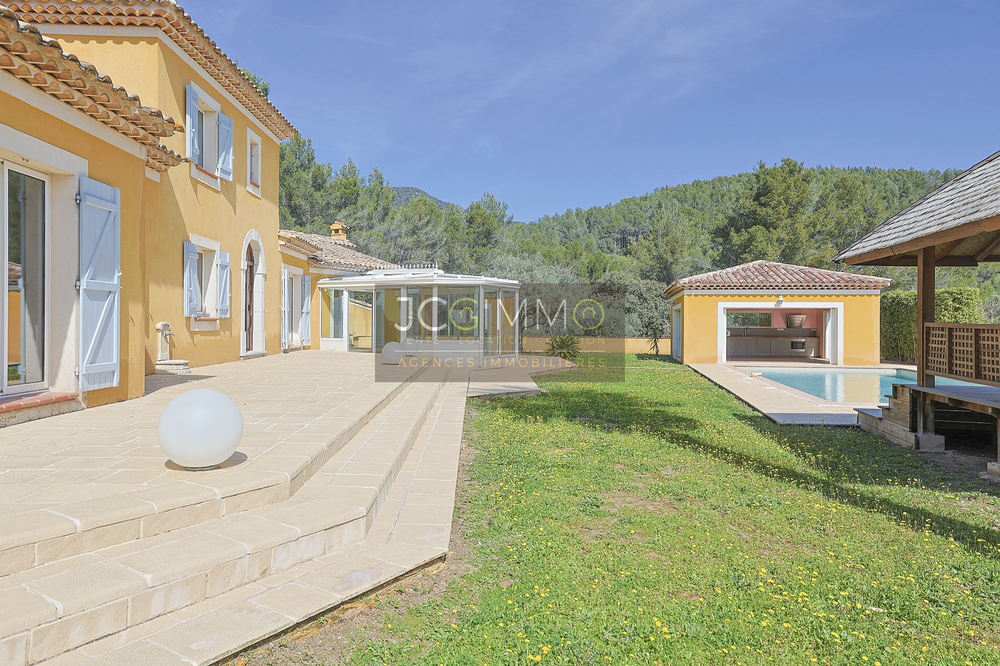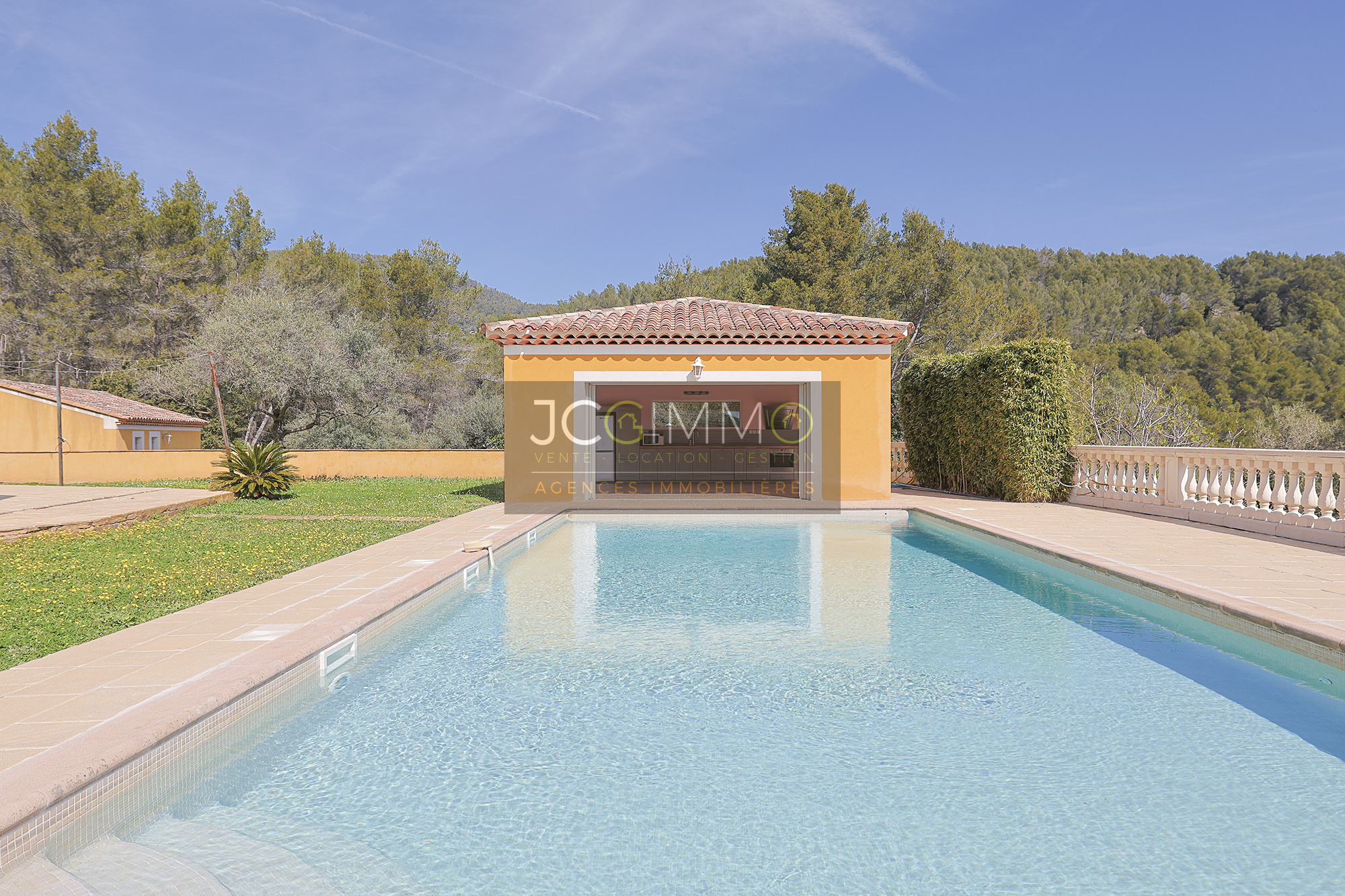 Localisation: Cette villa est située sur la commune de La Farlède, à 20 minutes du bord de mer, de l’aéroport de Hyères et de la Gare TGV de Toulon.