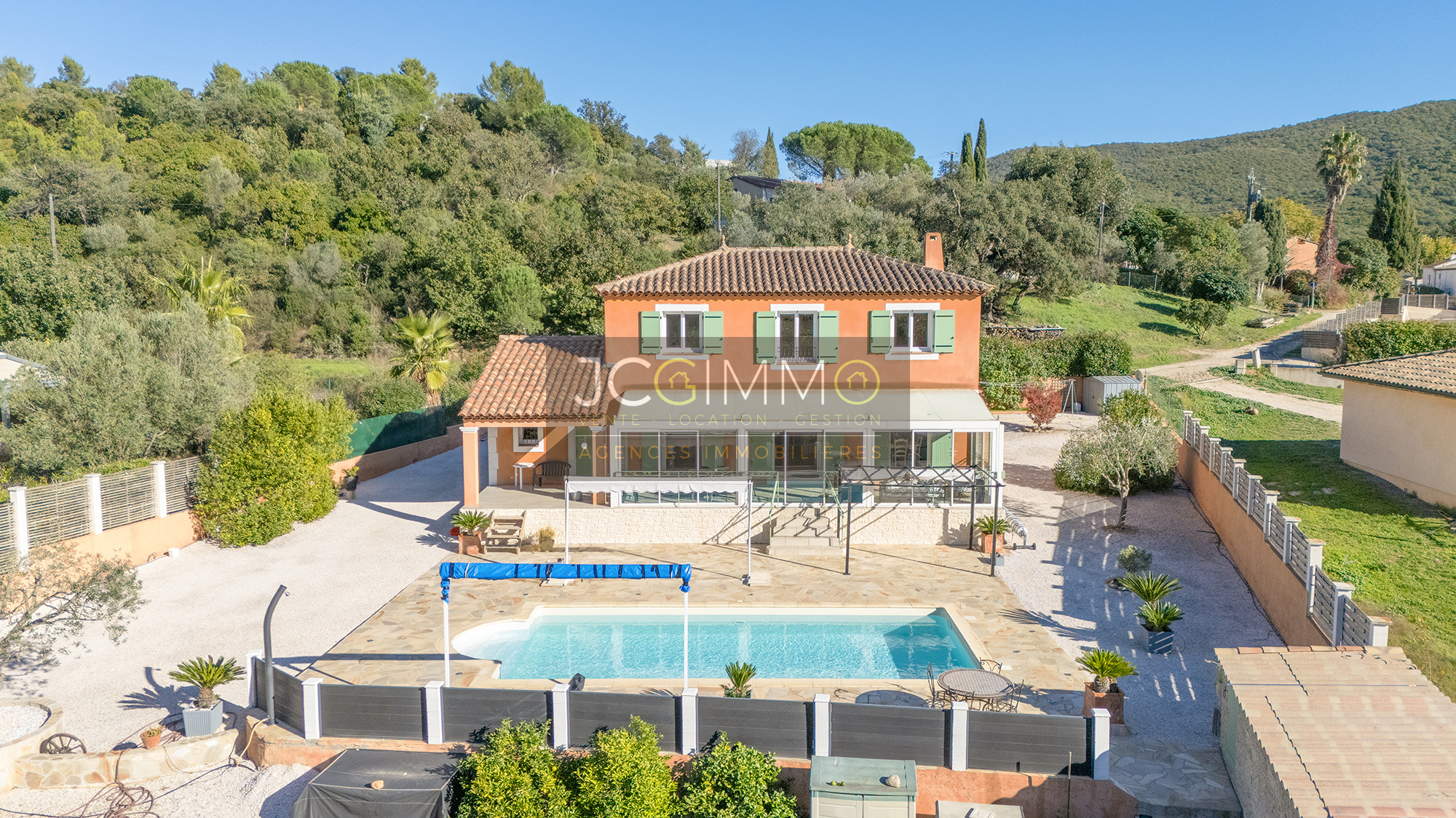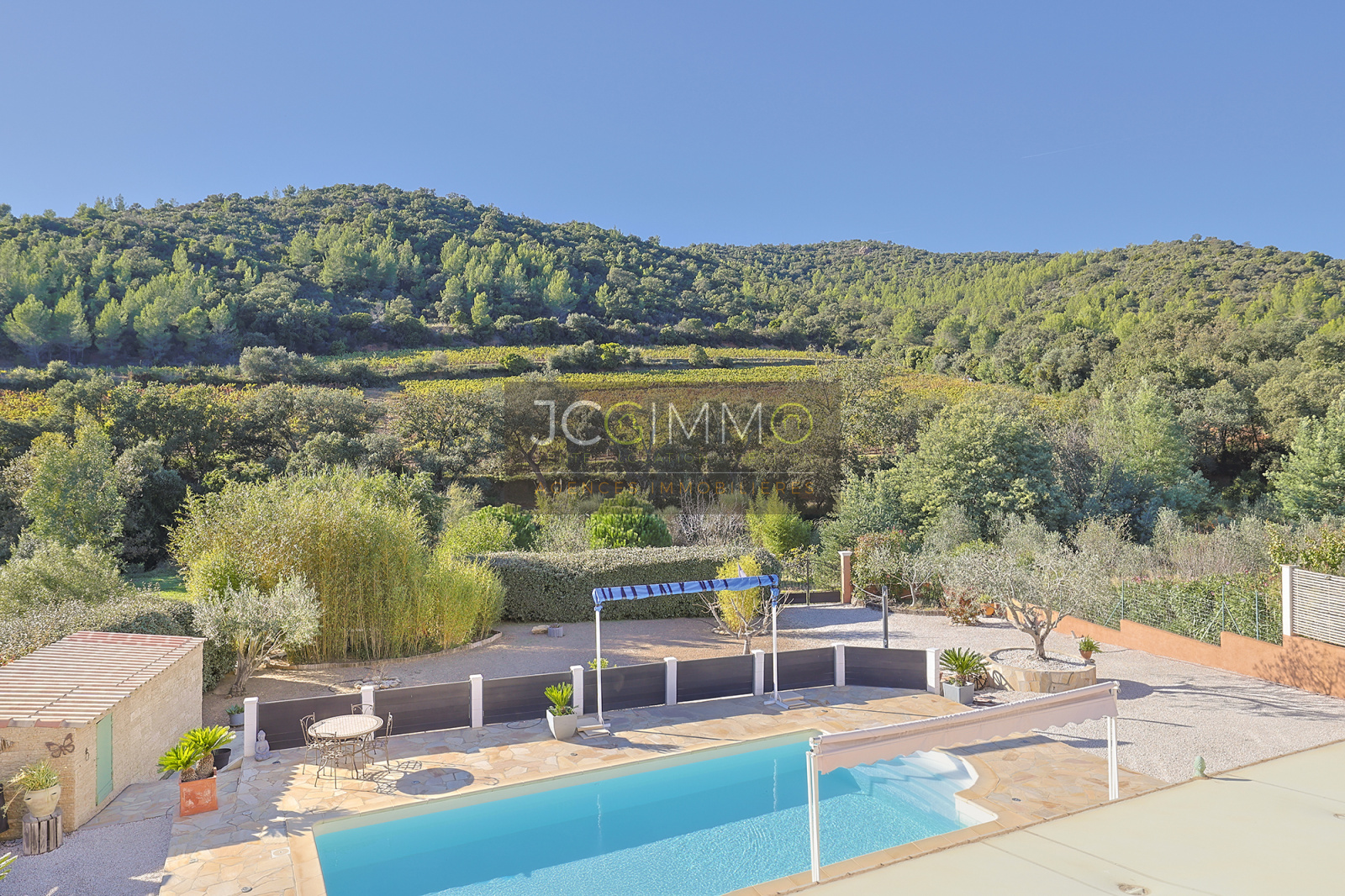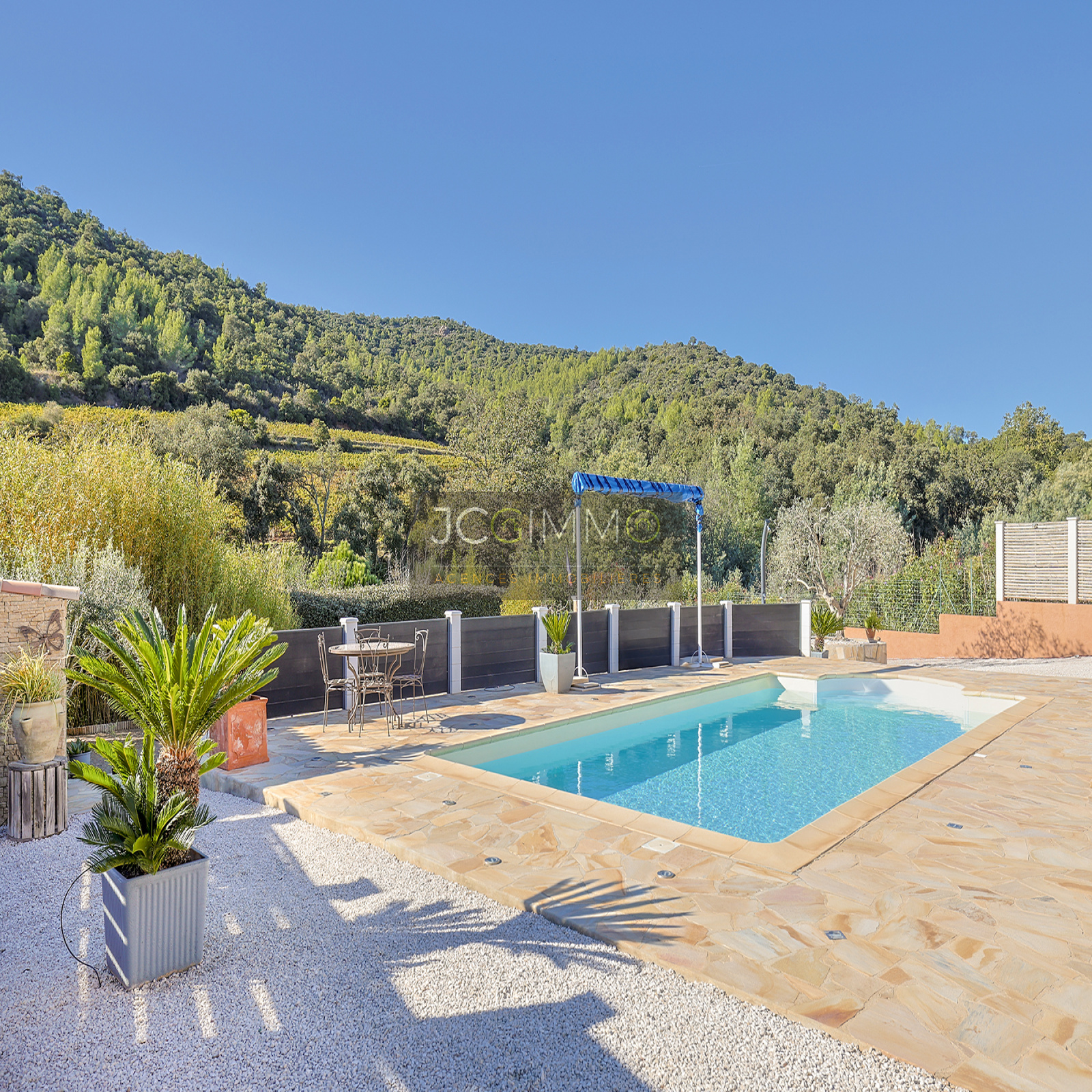Elle offre une vue splendide sur le Massif des Maures et un accès direct à la piscine. - Une grande piscine au sel, facile d'entretien