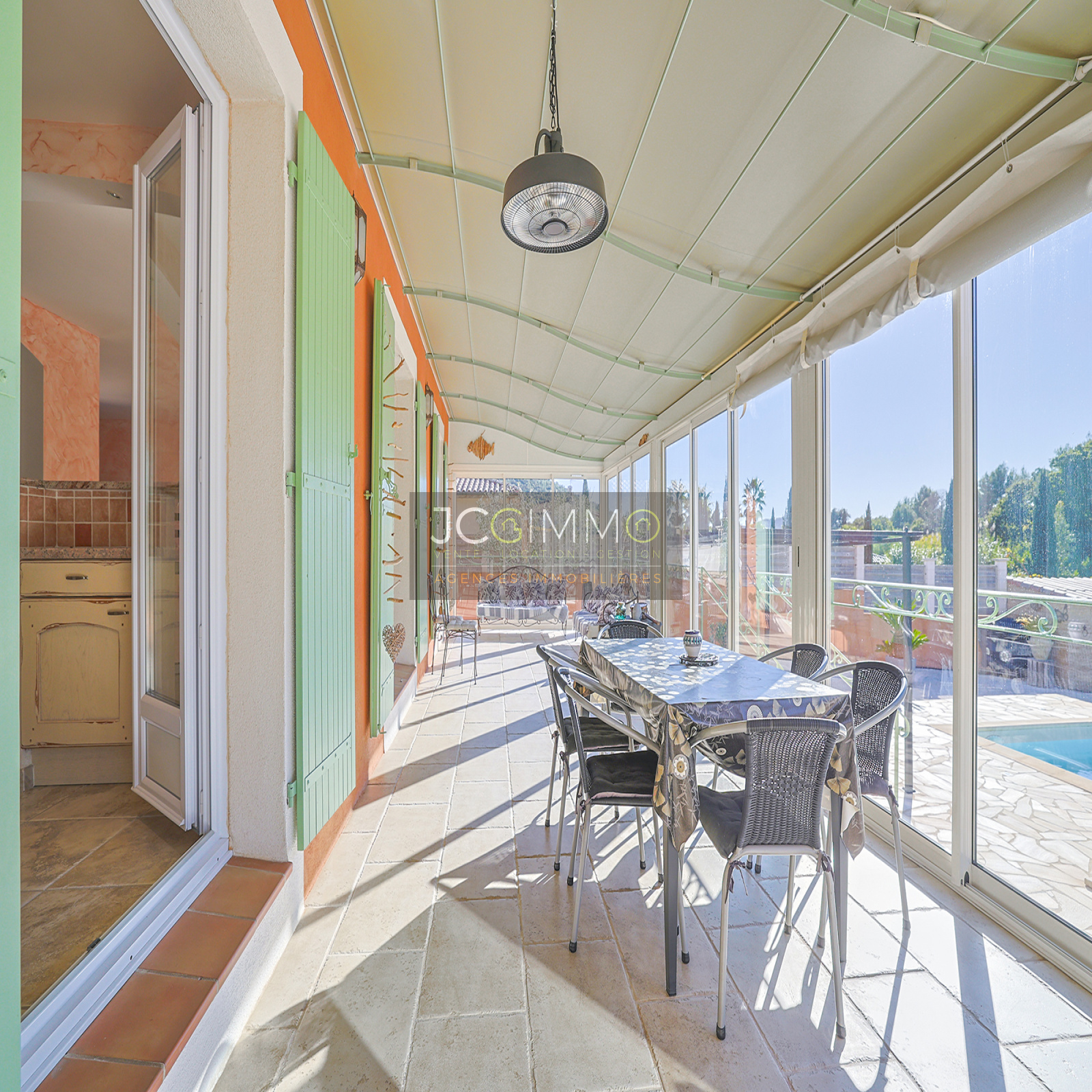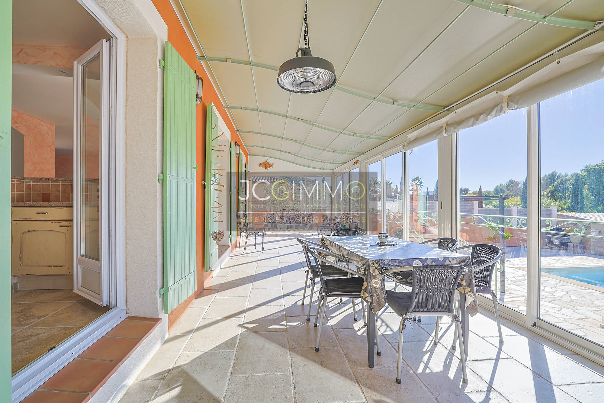 Entre véranda baignée de lumière, vue sur les collines, cuisine d’été et calme absolu, elle réunit tous les atouts d’une vie paisible à Hyères.