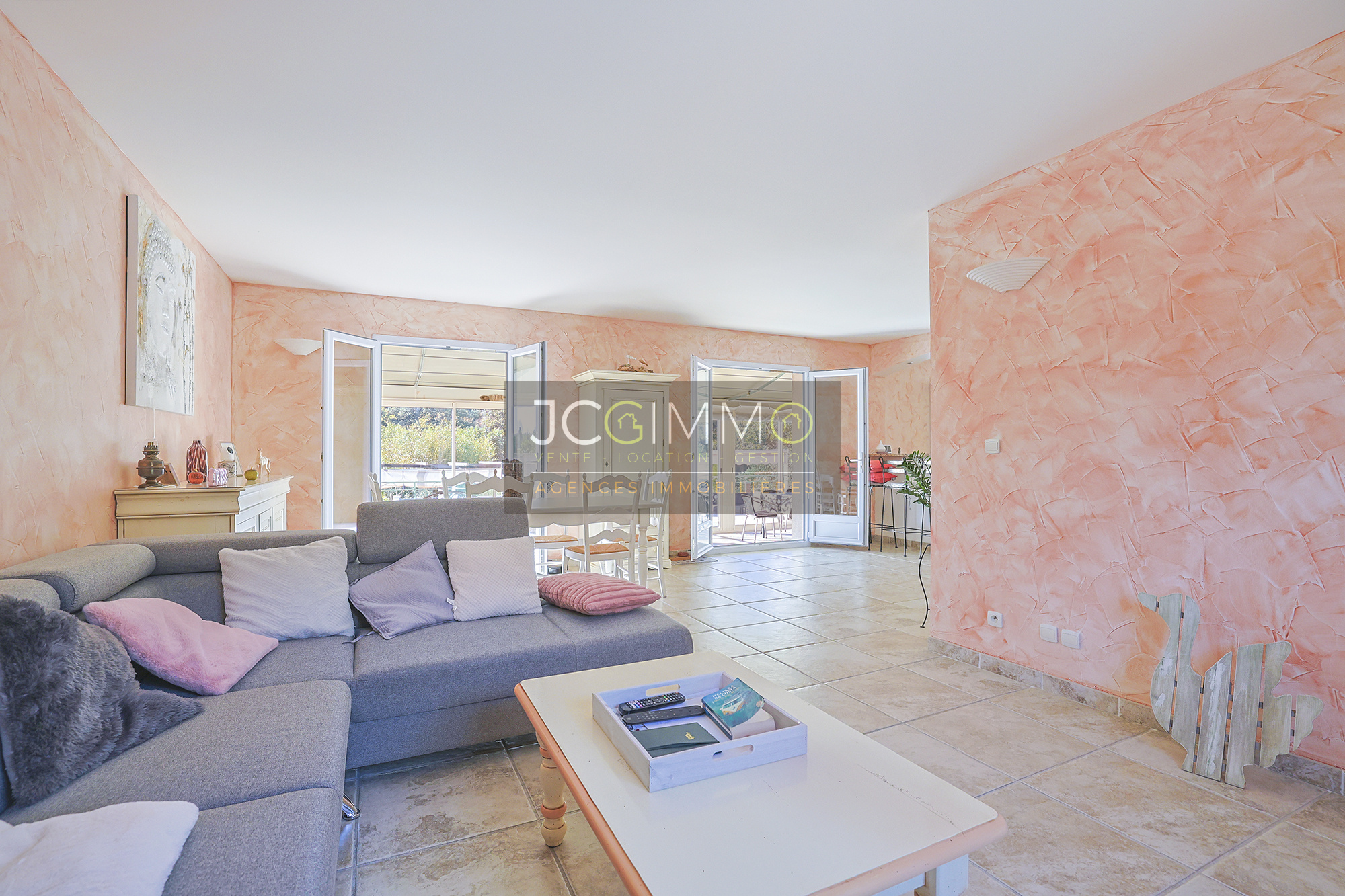 Dès l'entrée on découvre une belle pièce de vie lumineuse grâce à l'exposition Ouest