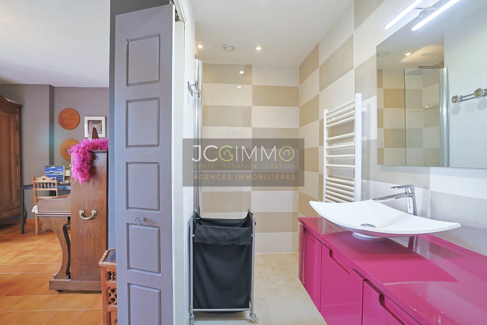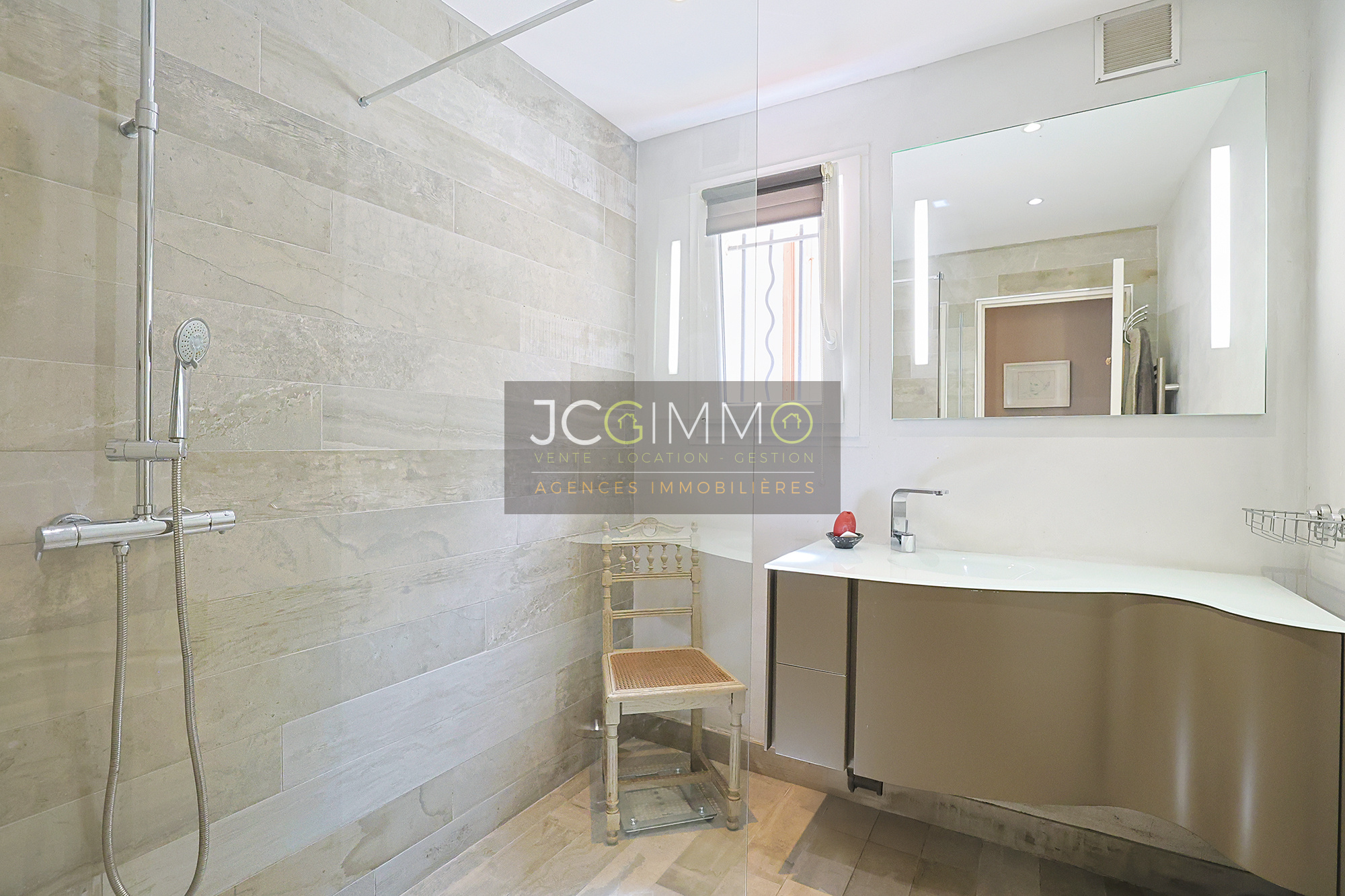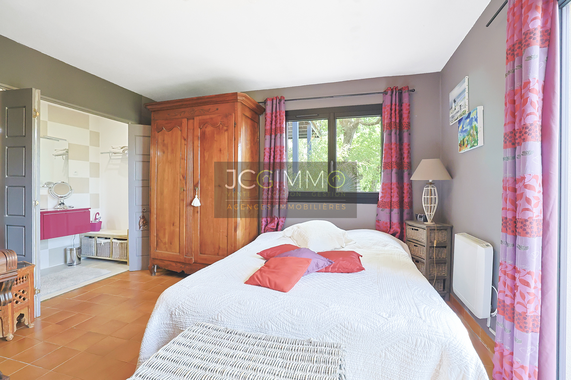 Une entrée, une suite parentale avec sa salle d’eau donnant sur un espace extérieur, une deuxième chambre, une buanderie, un WC, un cellier et un accès direct à son garage d’environ 20m².