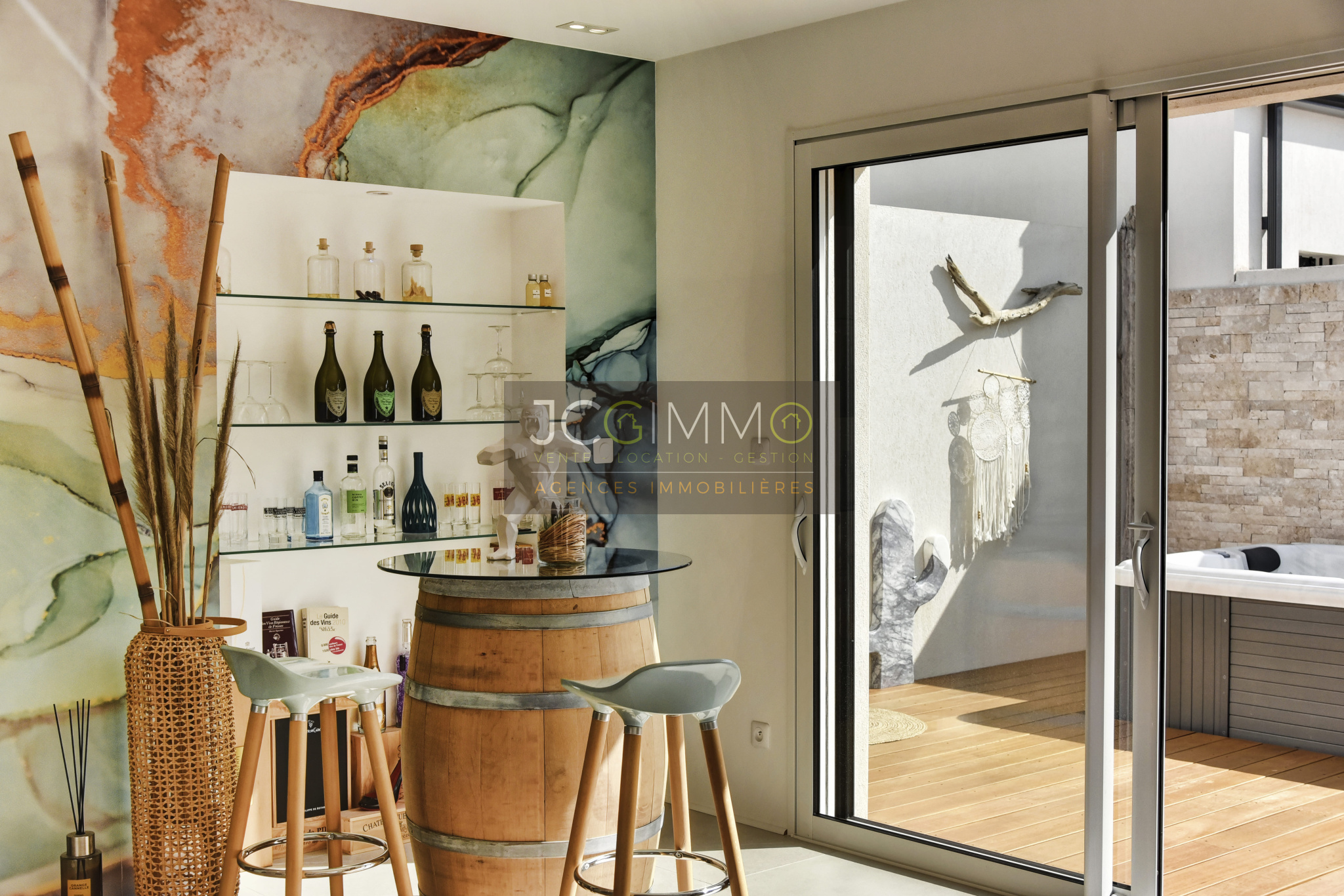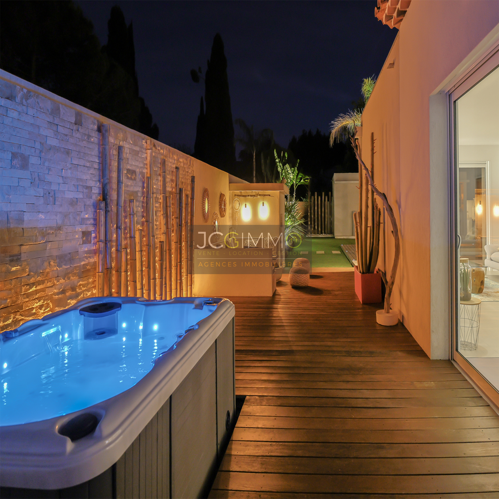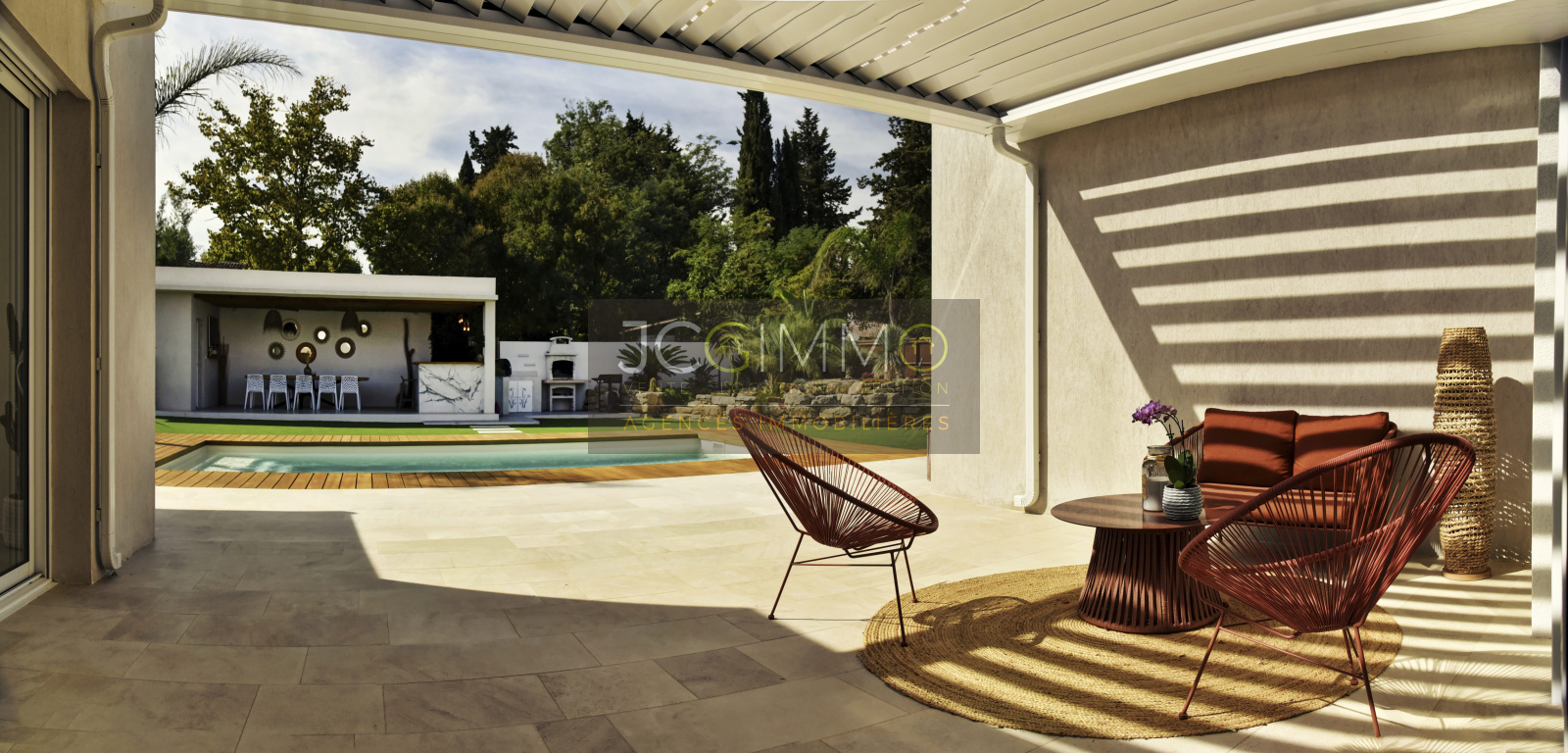 several inviting terraces (bioclimatic pergola, premium tiling, and exotic IP wood), a pétanque court, a spa, and a barbecue area – perfect for unforgettable moments with family and friends.