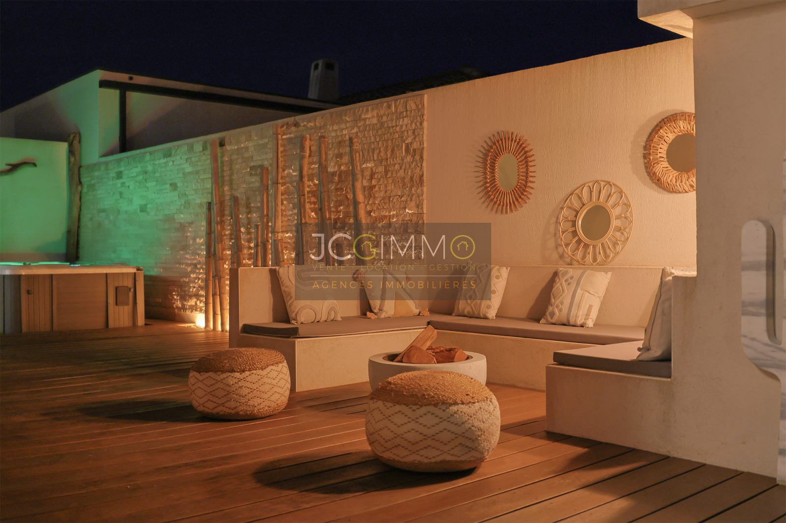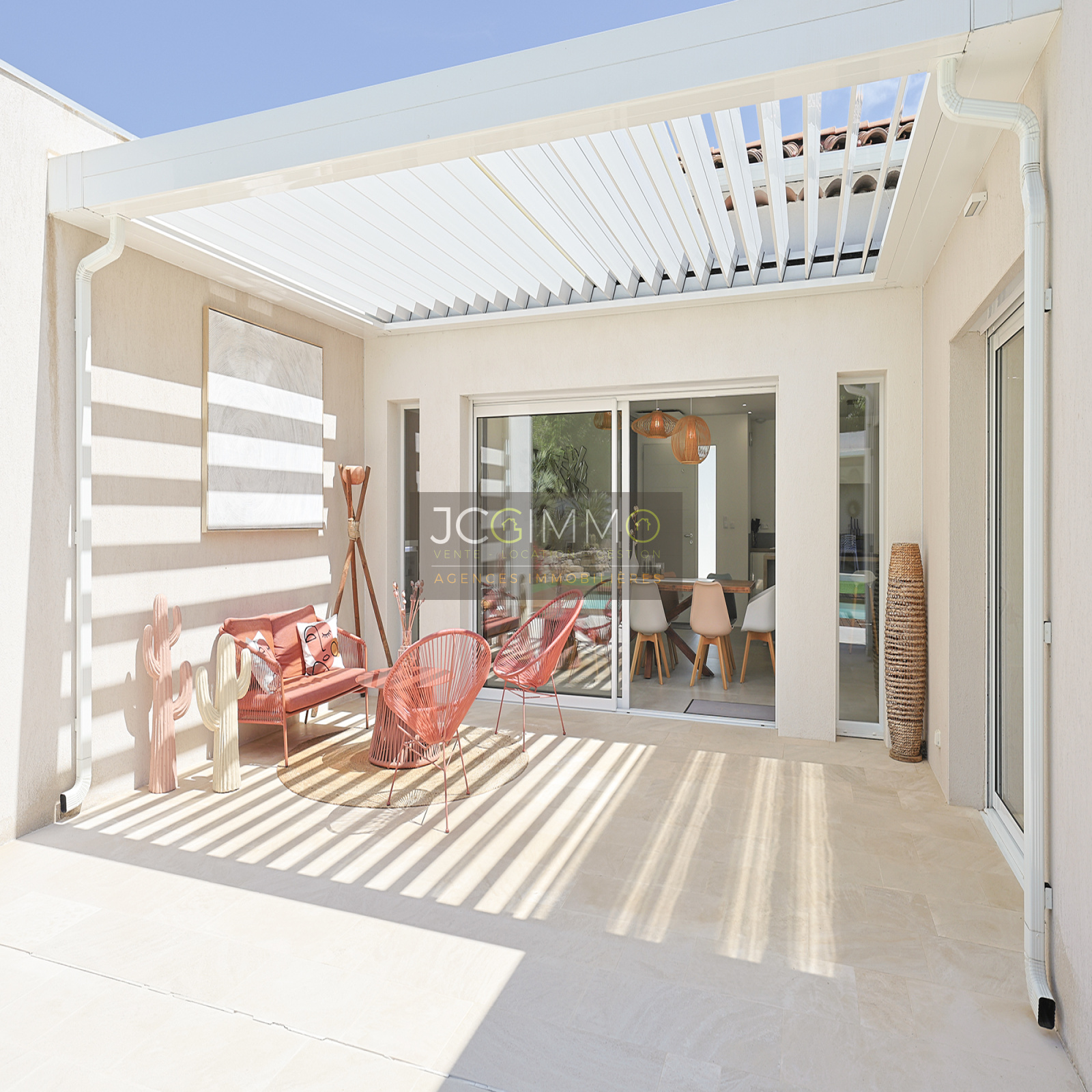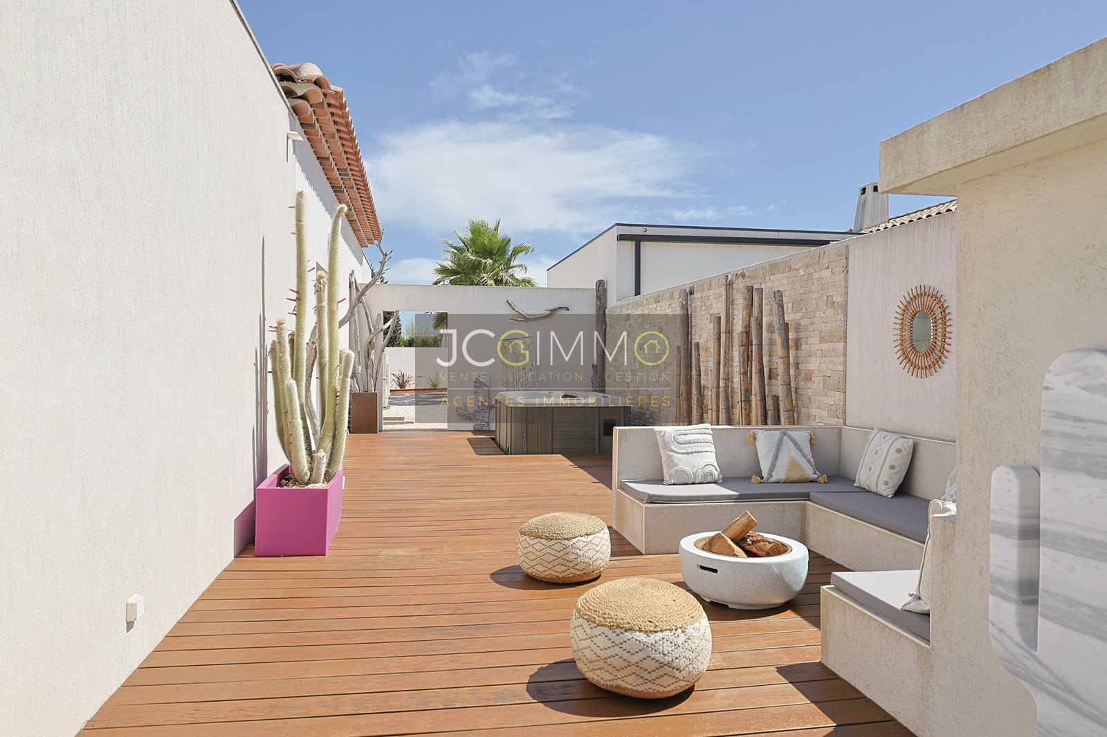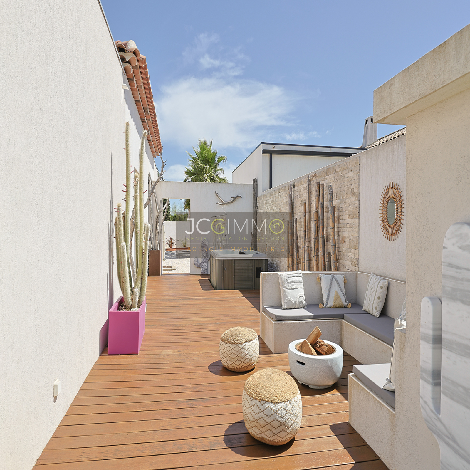 several inviting terraces (bioclimatic pergola, premium tiling, and exotic IP wood), a pétanque court, a spa, and a barbecue area – perfect for unforgettable moments with family and friends.
