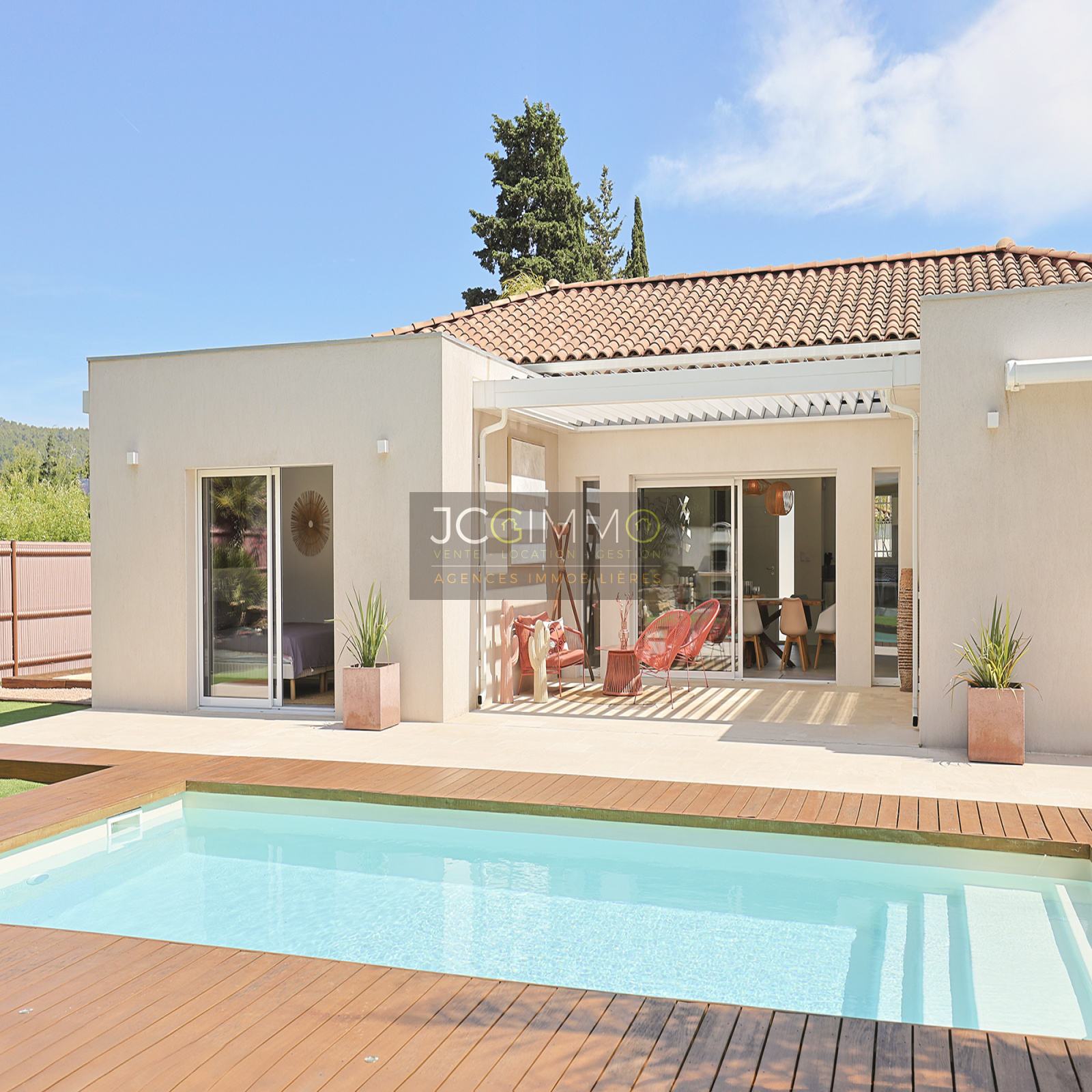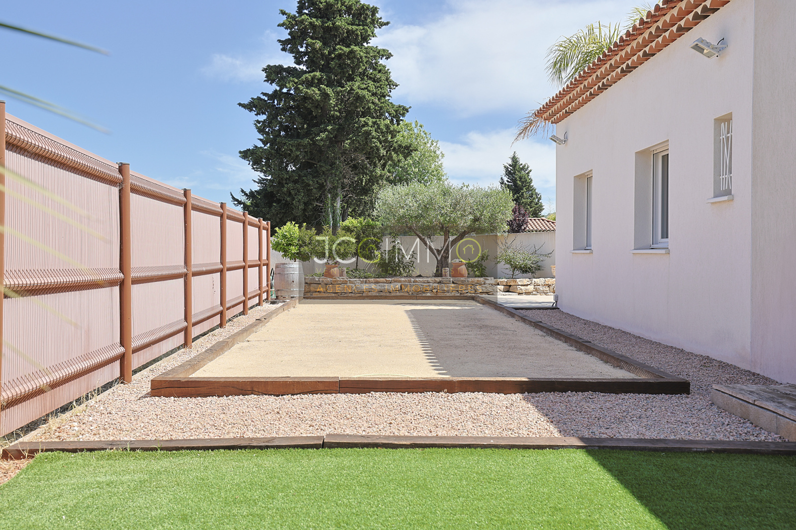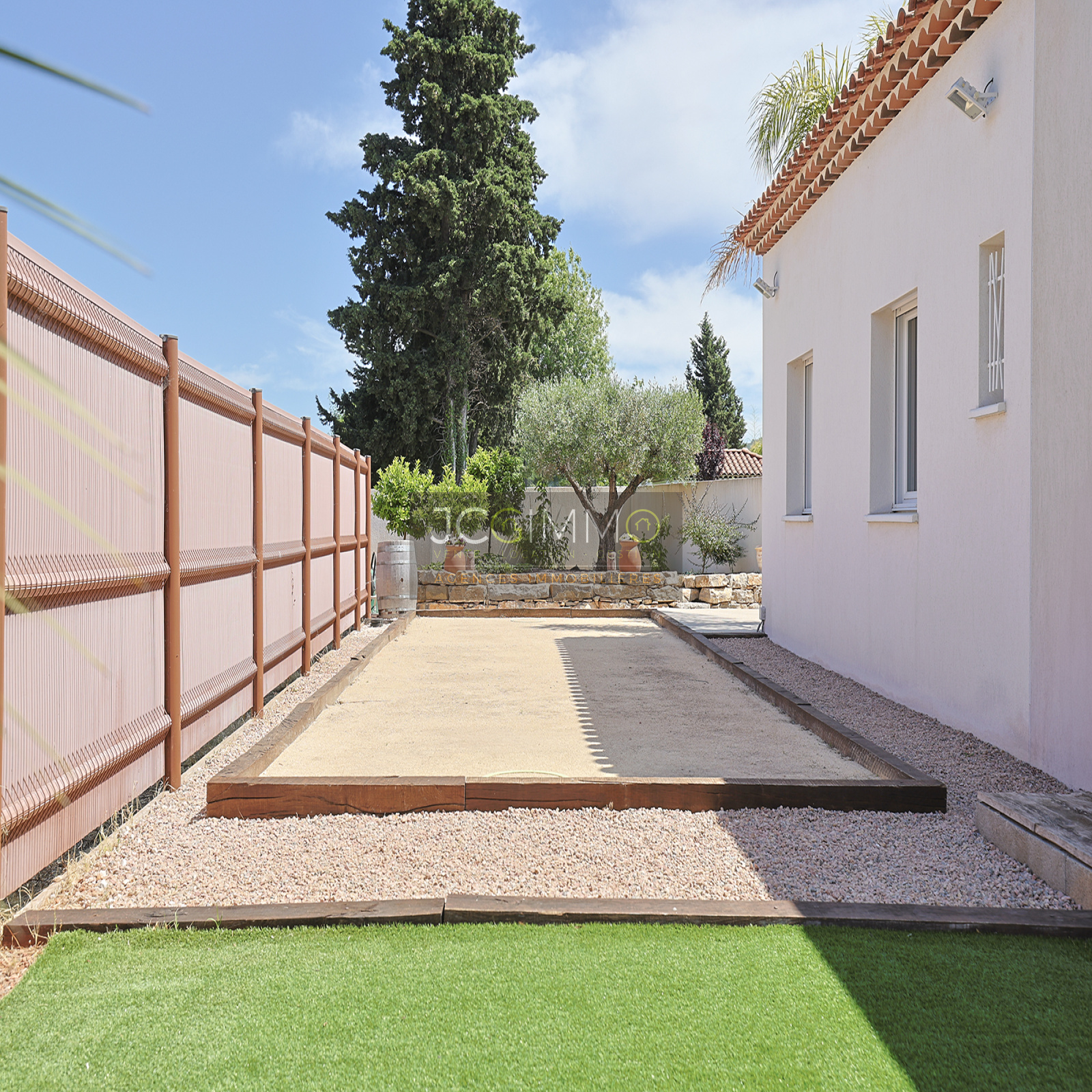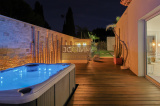 À l’extérieur, le jardin plat et arboré, soigneusement aménagé avec des essences méditerranéennes et exotiques, vous séduira par ses nombreux espaces de détente. Vous y trouverez une piscine 8x4 avec contrôle auto du pH et du chlore, plusieurs terrasses conviviales (pergola bioclimatique, carrelage d'exception et bois IP exotique), un terrain de pétanque, un spa et un coin barbecue pour des moments inoubliables en famille ou entre amis. La villa est équipée du Canal de Provence, ce qui permet un entretien optimal à moindre coût.