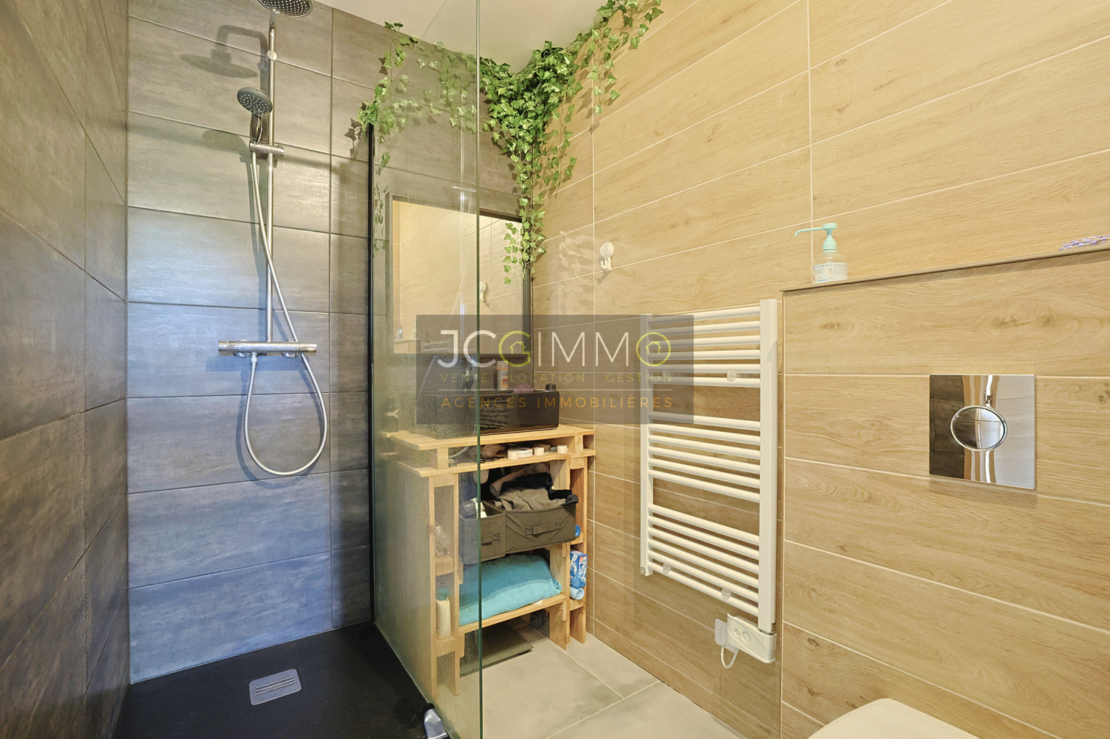 Au RDC, vous bénéficierez d’un beau salon/séjour avec cuisine ouverte totalisant 45m², une salle d’eau avec WC, ainsi que de nombreux rangements.
