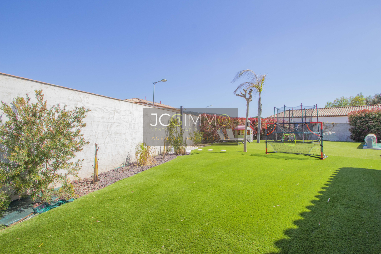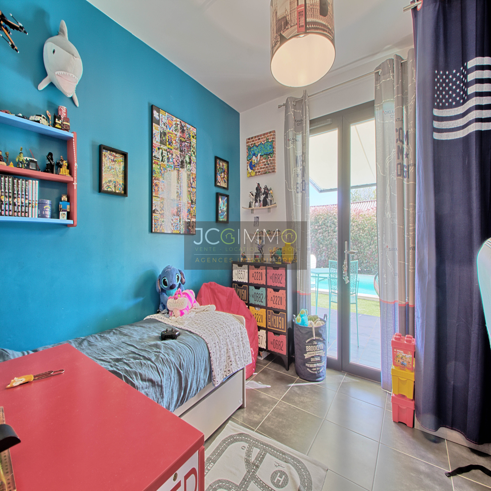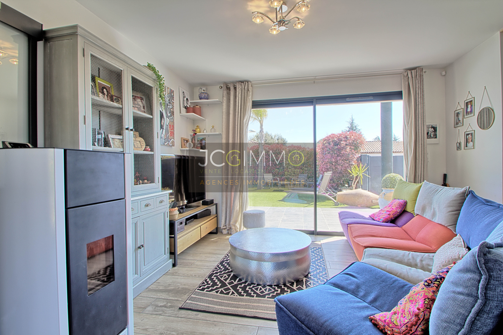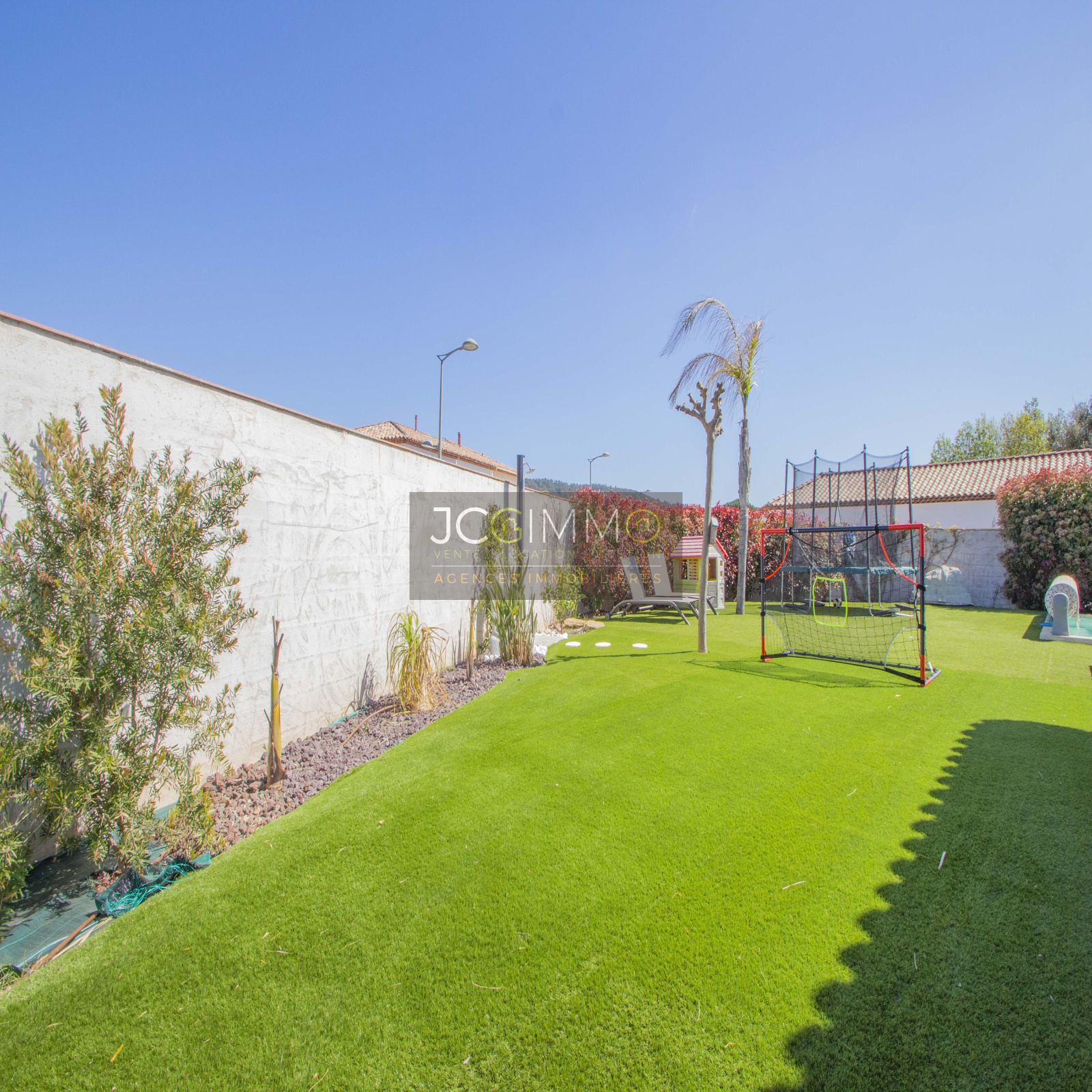Lumineuse de part son exposition plein SUD, cette superbe maison de 100m² (dont un garage aménagé de 16m²) dispose d’un agréable terrain plat et clôturé de 675m² et d’une piscine.