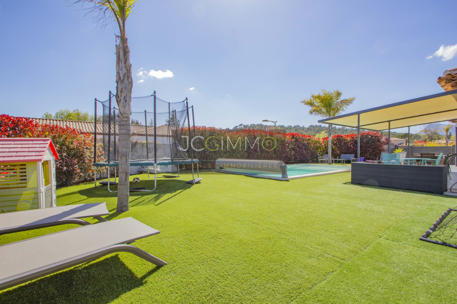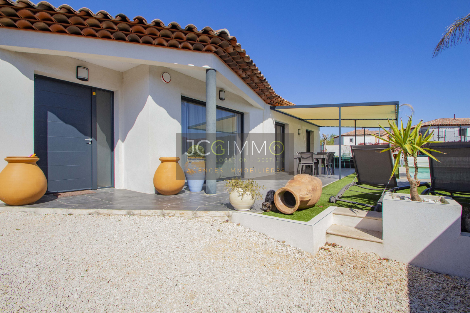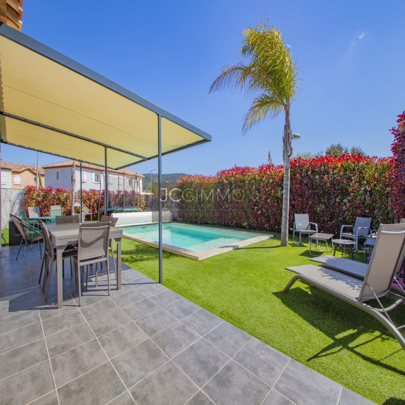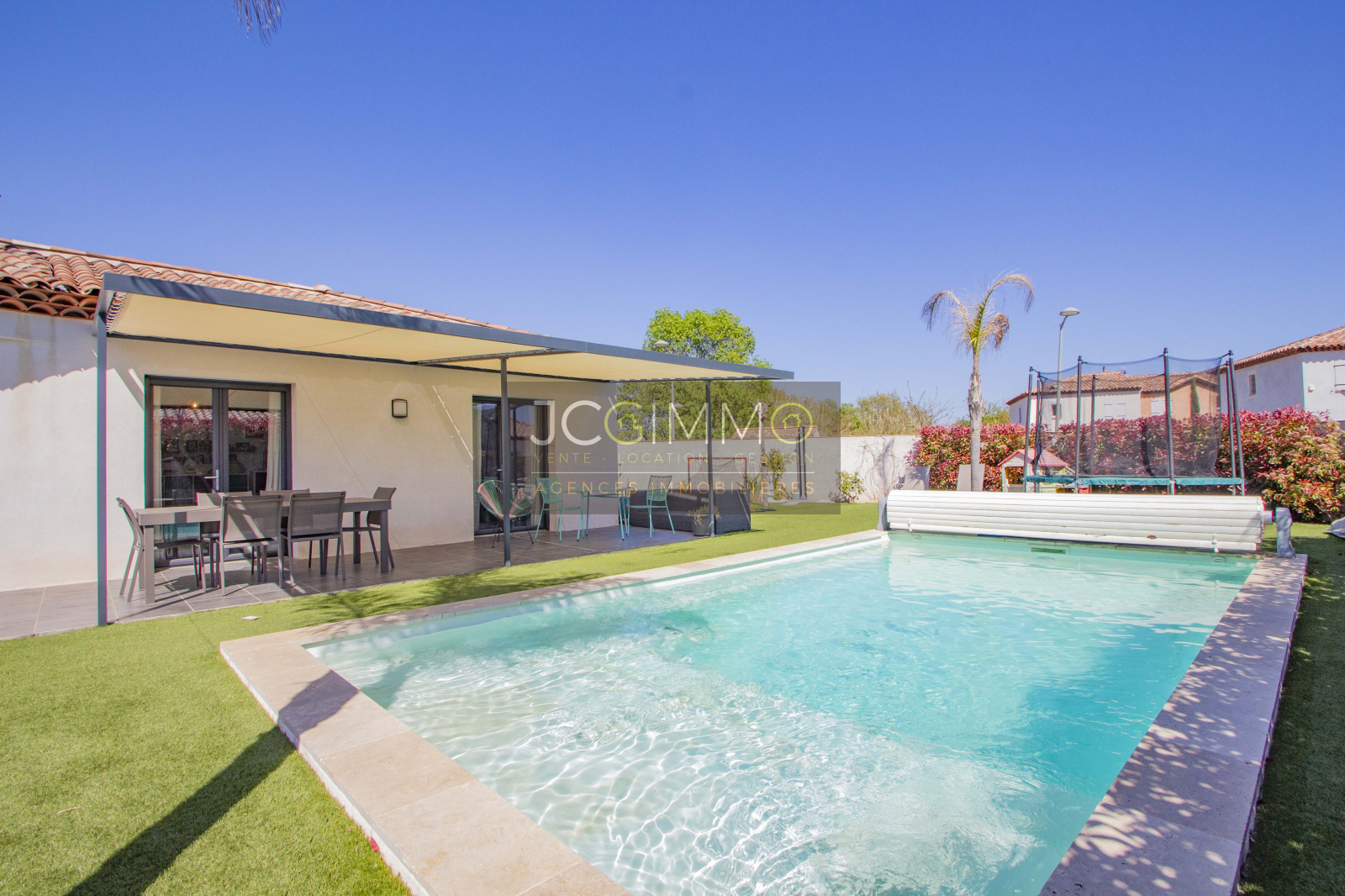 Lumineuse de part son exposition plein SUD, cette superbe maison de 100m² (dont un garage aménagé de 16m²) dispose d’un agréable terrain plat et clôturé de 675m² et d’une piscine.