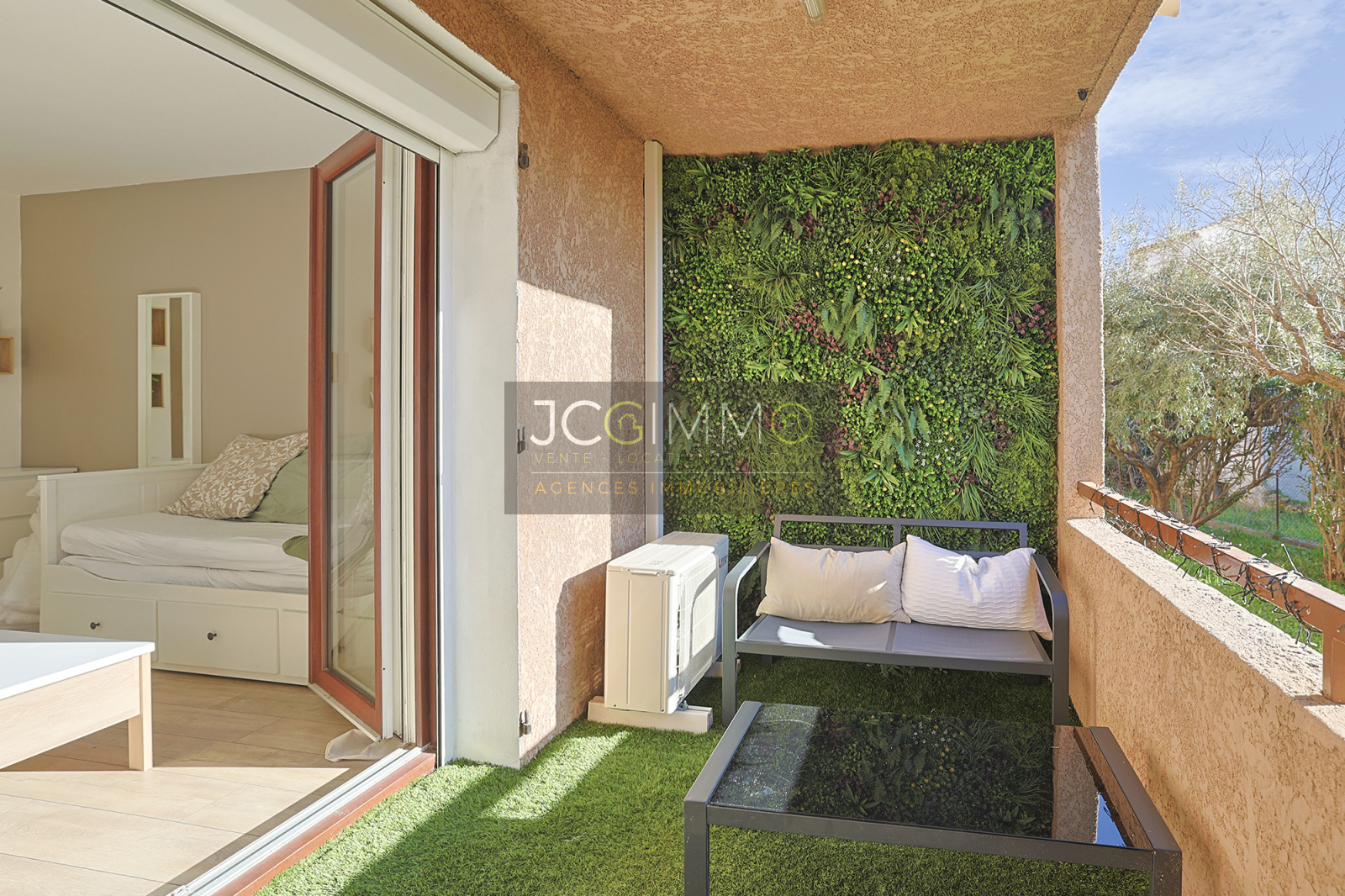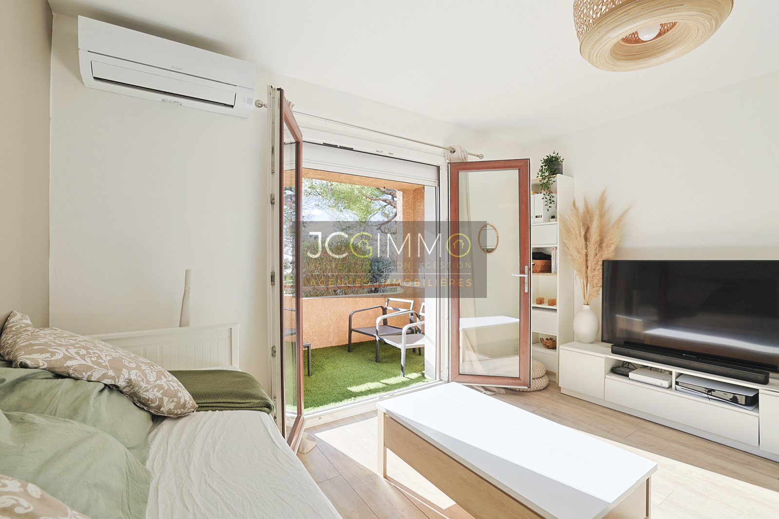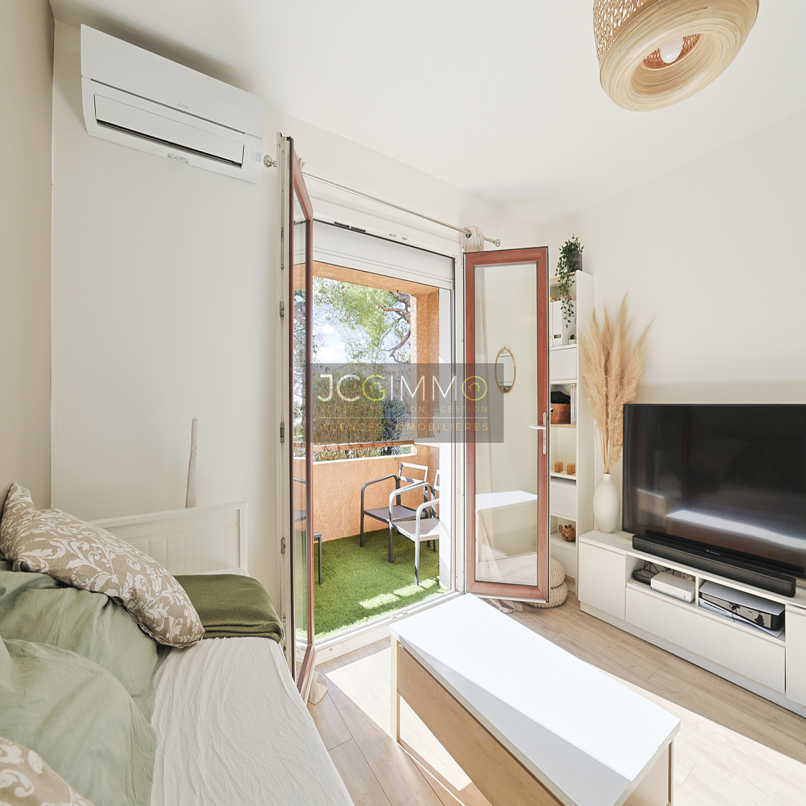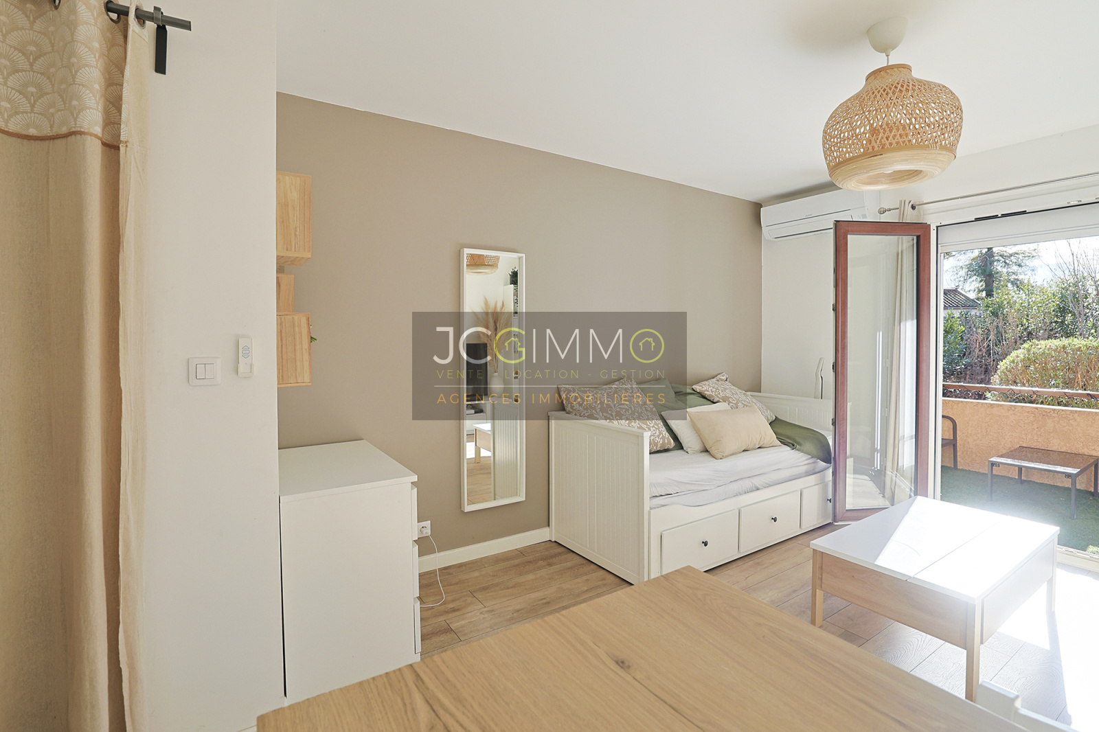 Très lumineux, il se compose d'un agréable salon/séjour climatisé qui sert également de chambre avec un canapé clic clac, sans aucun vis-à-vis, une cuisine américaine ouverte, une salle d’eau avec douche italienne, WC séparé, une terrasse plein Sud sans vis-à-vis.