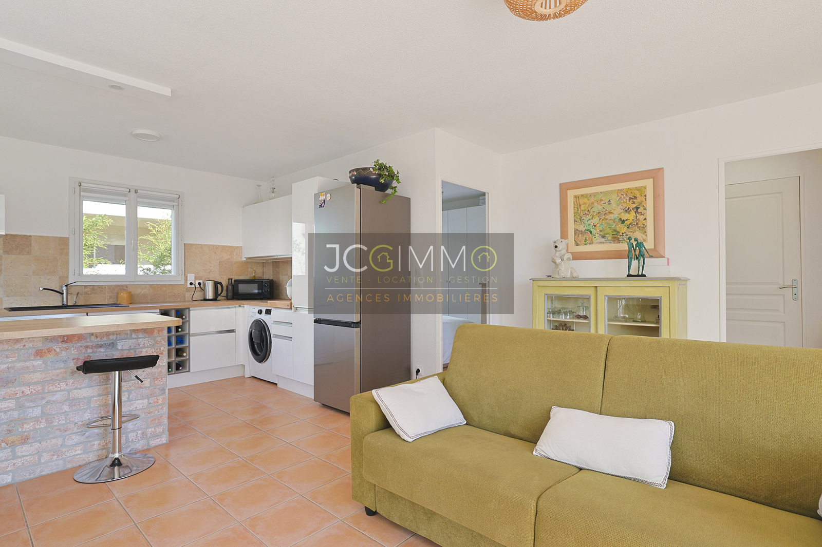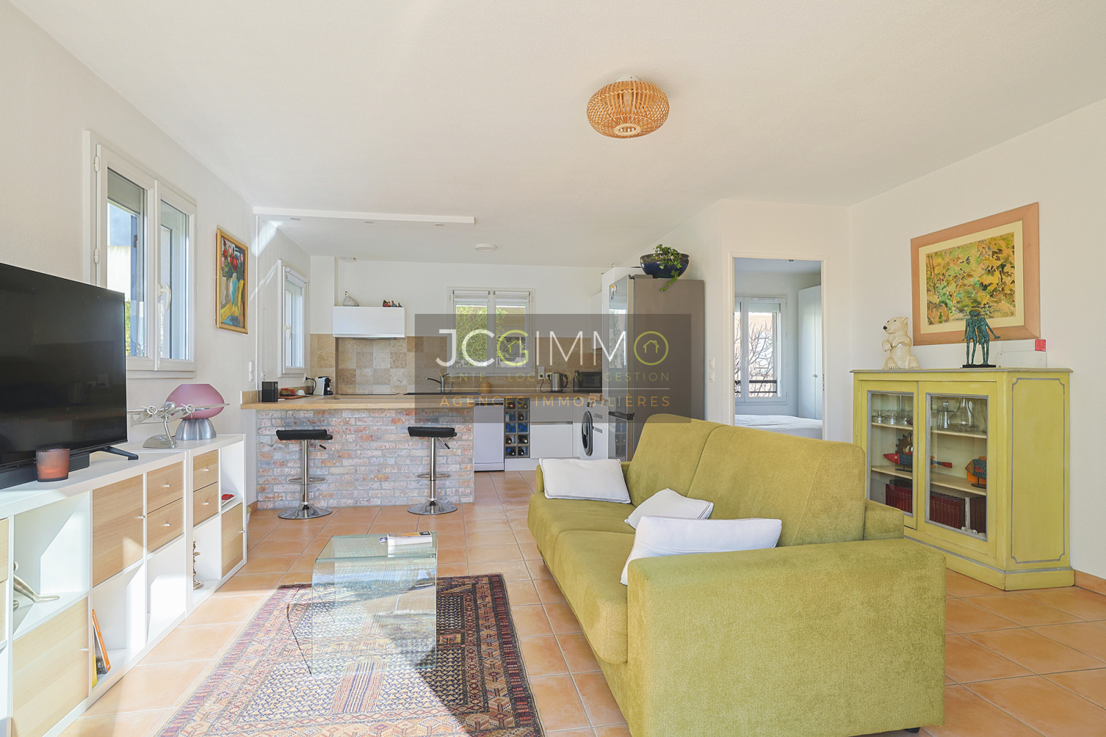 L’appartement s’ouvre sur un séjour convivial climatisé avec cuisine ouverte entièrement équipée, offrant un espace de vie fonctionnel et agréable. La partie nuit se compose d’une chambre confortable, d’une salle d’eau moderne avec douche ainsi que d’un WC indépendant.