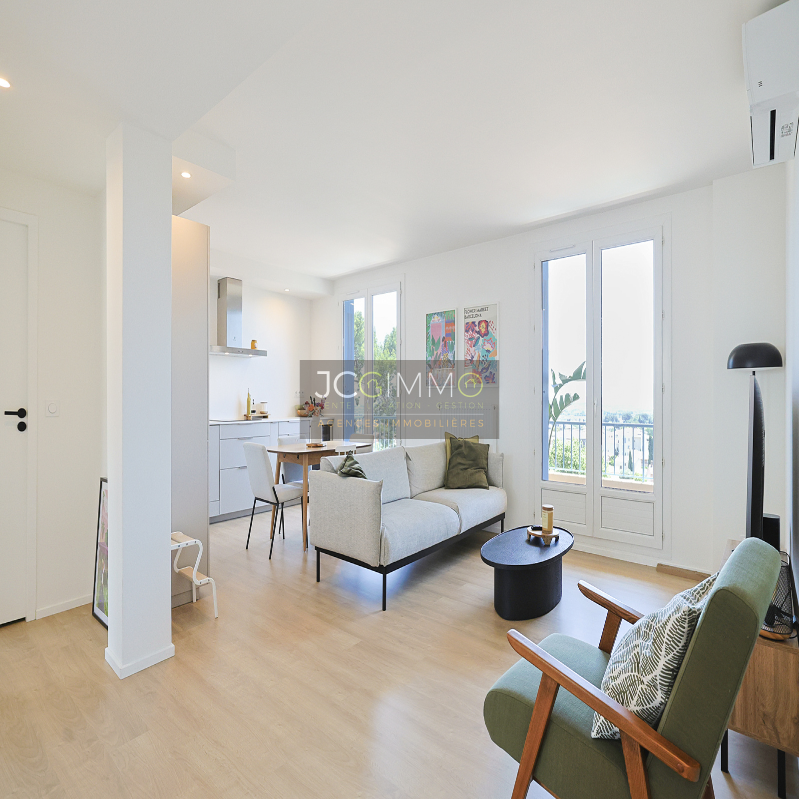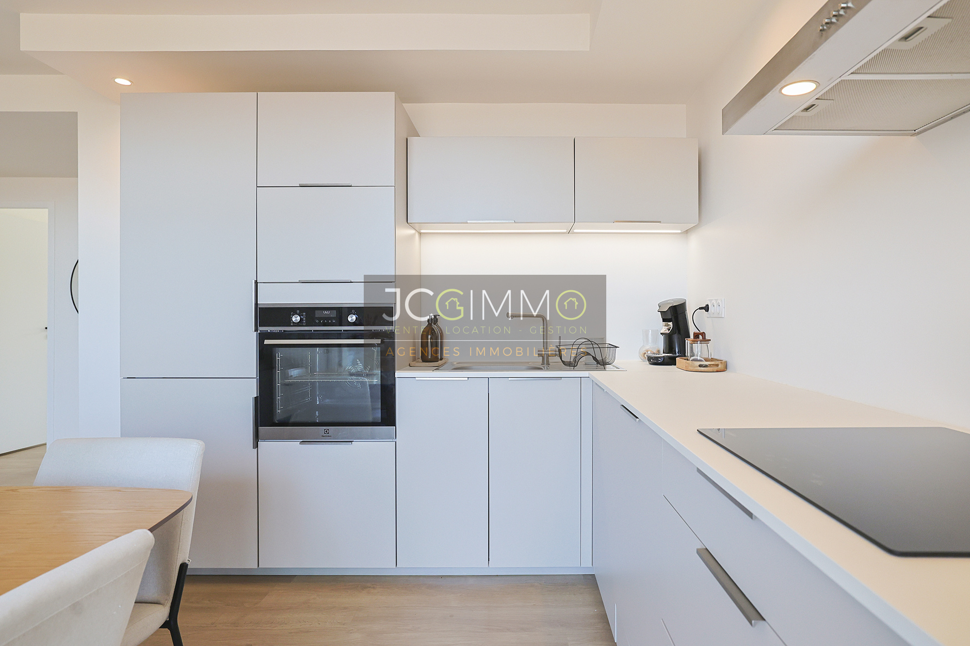 Il se situe au 4ème et dernier étage d'un immeuble en copropriété bien entretenue. Il se compose d'une entrée, d'un séjour avec cuisine américaine équipée de 35m² ouvrant sur une terrasse de 10m² PLEIN SUD avec VUE PANORAMIQUE.