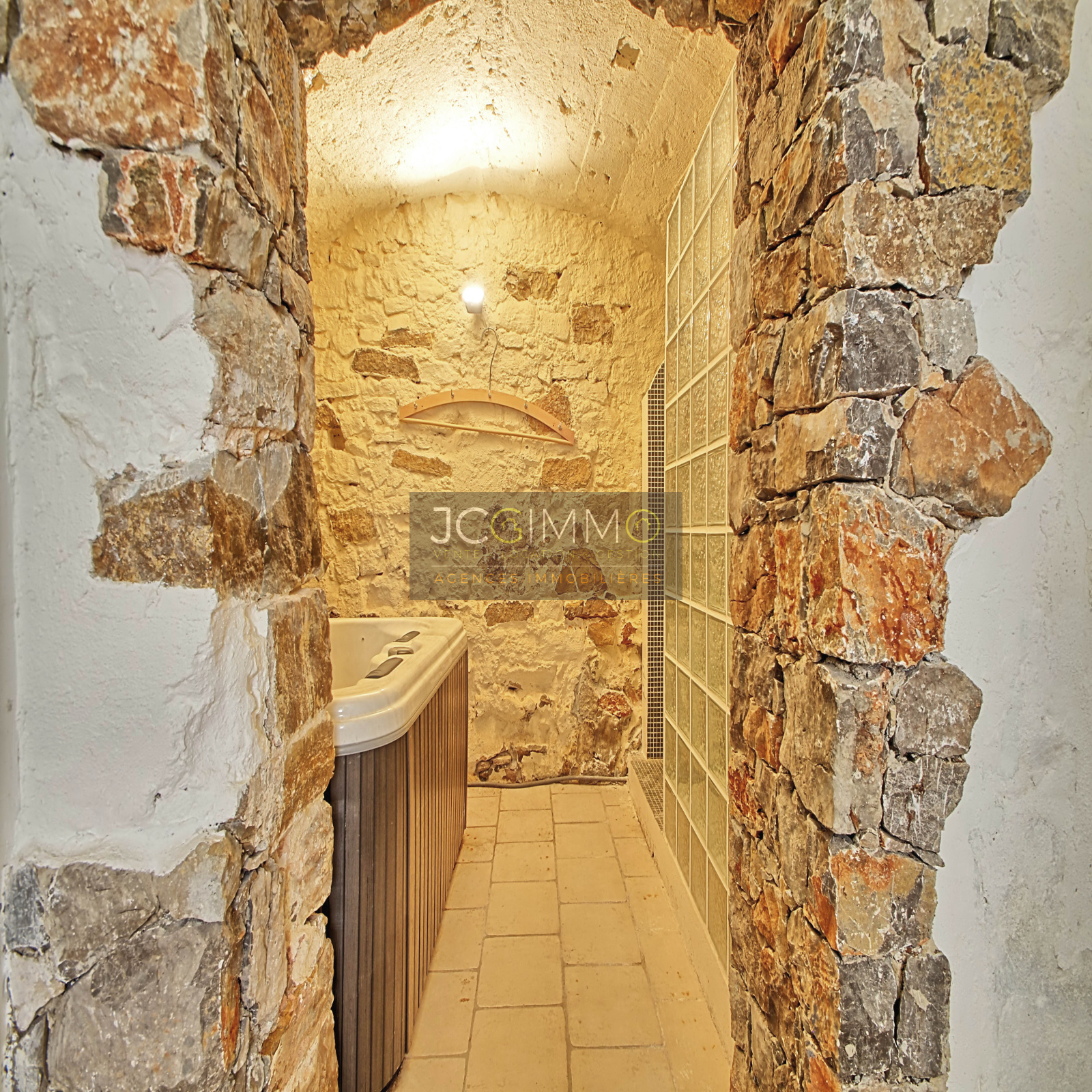 Au rdc: une entrée, un espace vouté en pierre pouvant accueillir un jacuzzi, une salle d'eau, buanderie et WC
