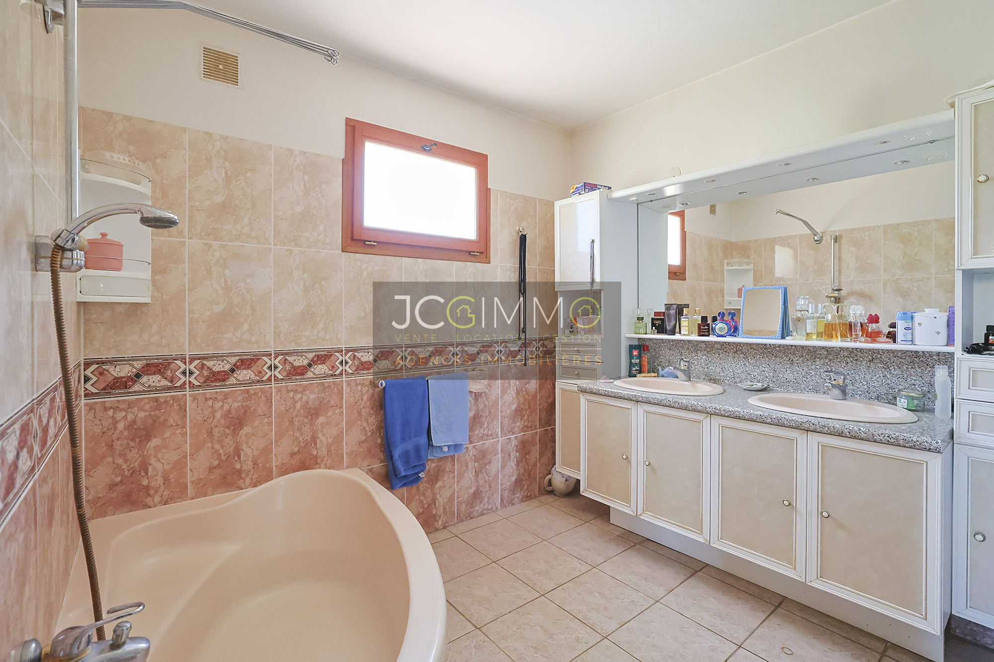 Au REZ DE CHAUSSEE, un salon avec cheminée et climatisation réversible, une salle à manger, une cuisine séparée et équipée donnant sur une terrasse, deux chambres dont une grande suite parentale climatisée avec sa salle de bains privative, WC.