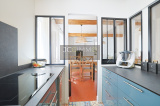 Au premier étage: un grand salon/séjour lumineux, avec cuisine ouverte entièrement équipée.