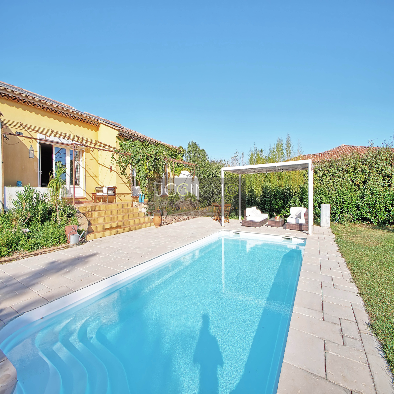Maison individuelle de PLAIN PIED de 165m² habitables, exposé plein Sud, sur un terrain arboré avec piscine chauffée de 2500m² !