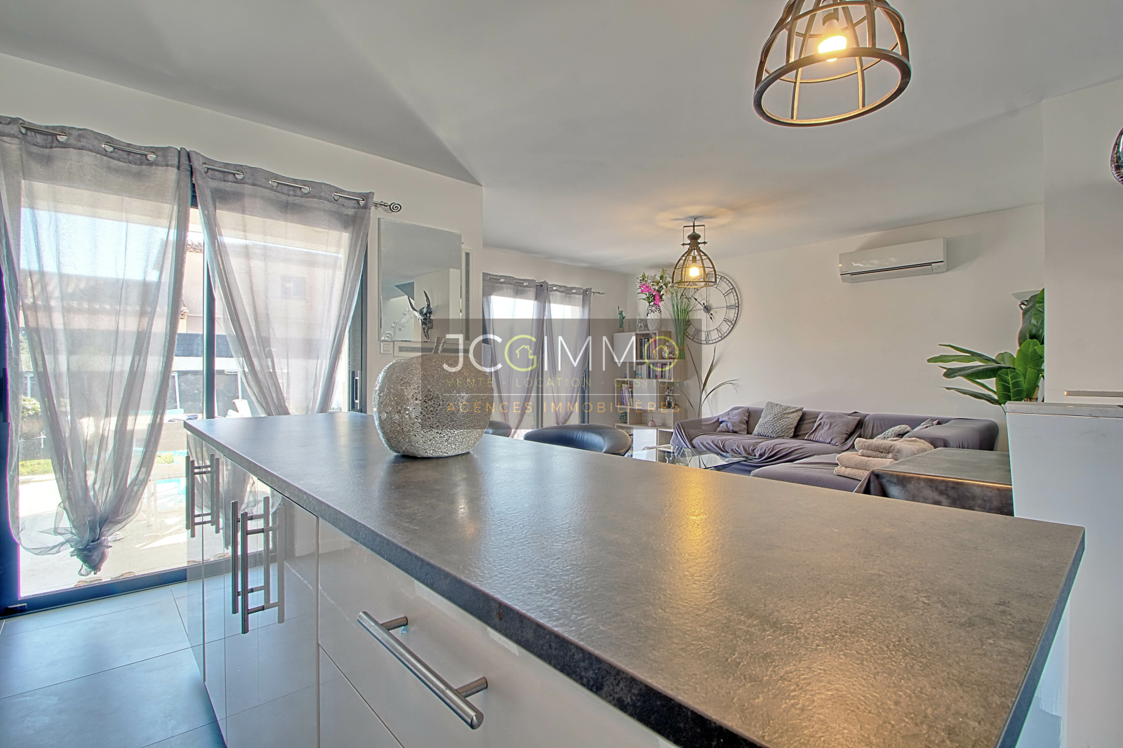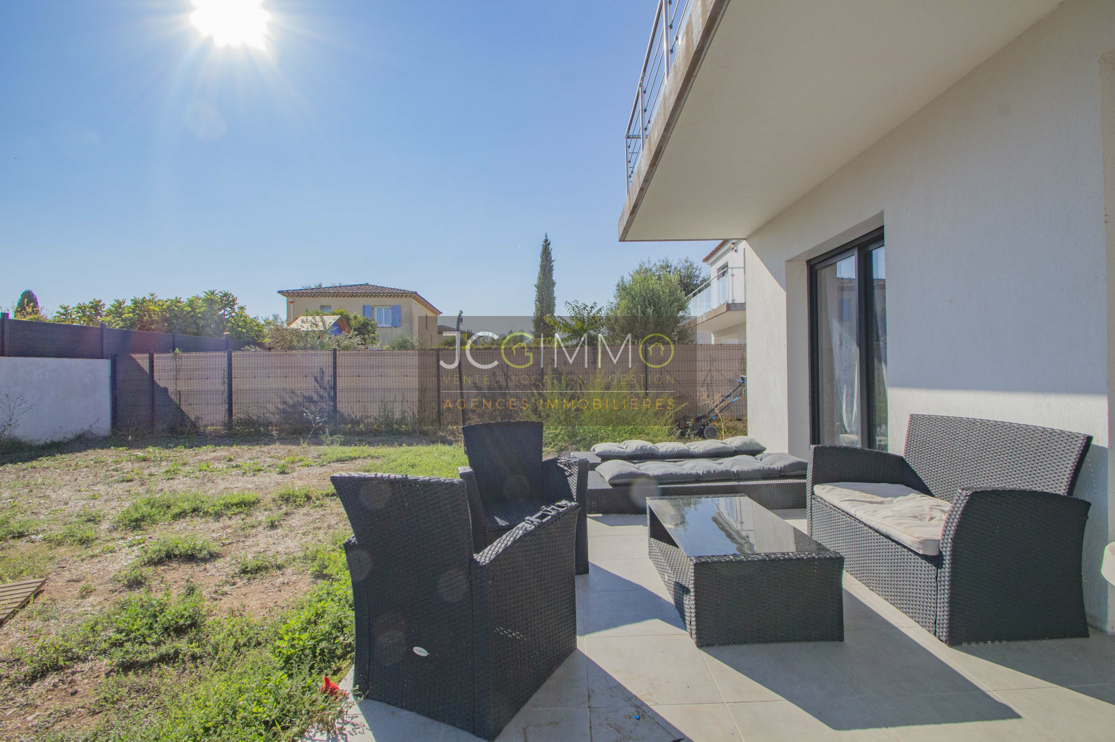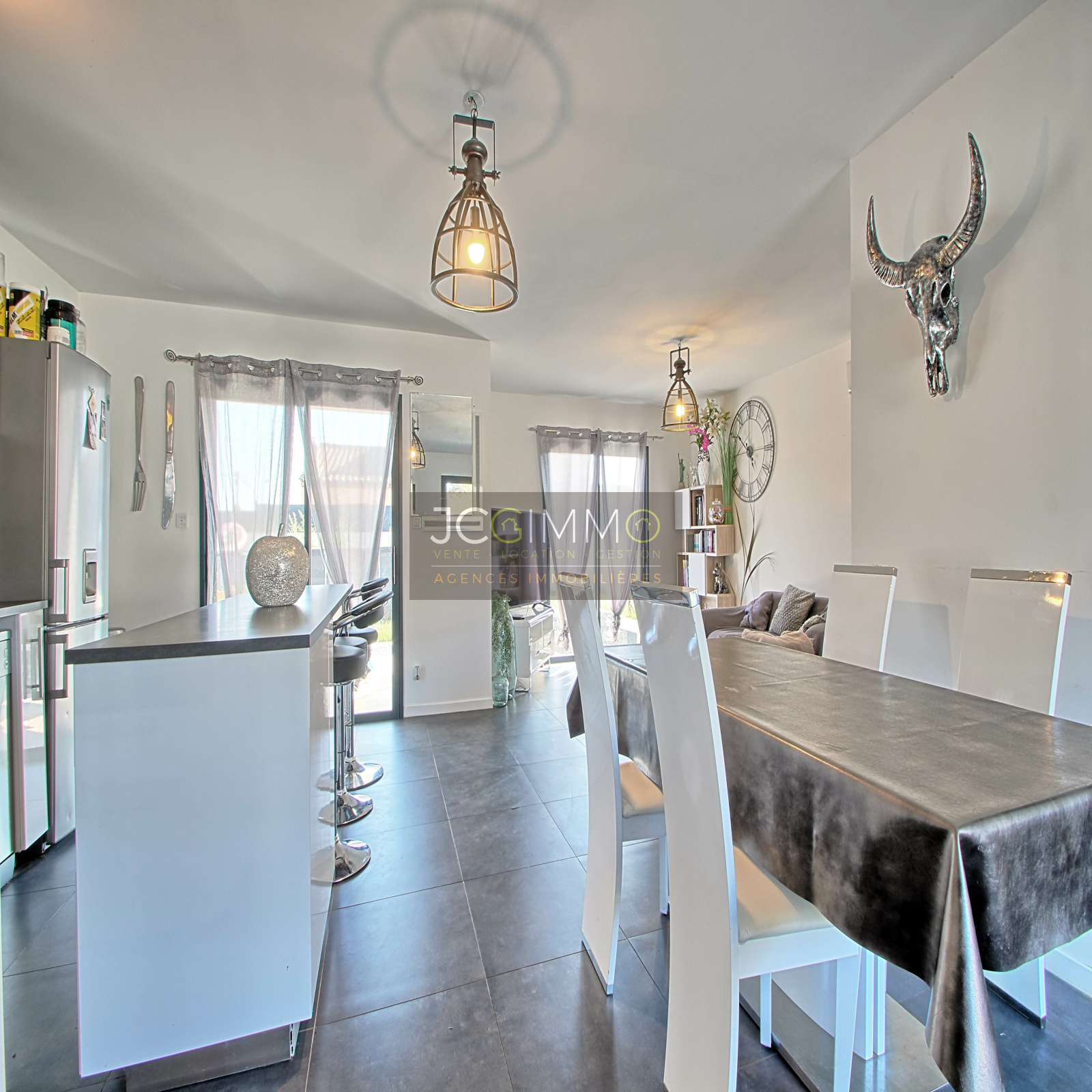 Nous vous présentons cette belle maison individuelle plein SUD de 120m² dont un garage aménageable de 16m², avec de beaux équipements dont la climatisation gainable, carrelage grand format, le tout sur un terrain plat de 500m² piscinable.